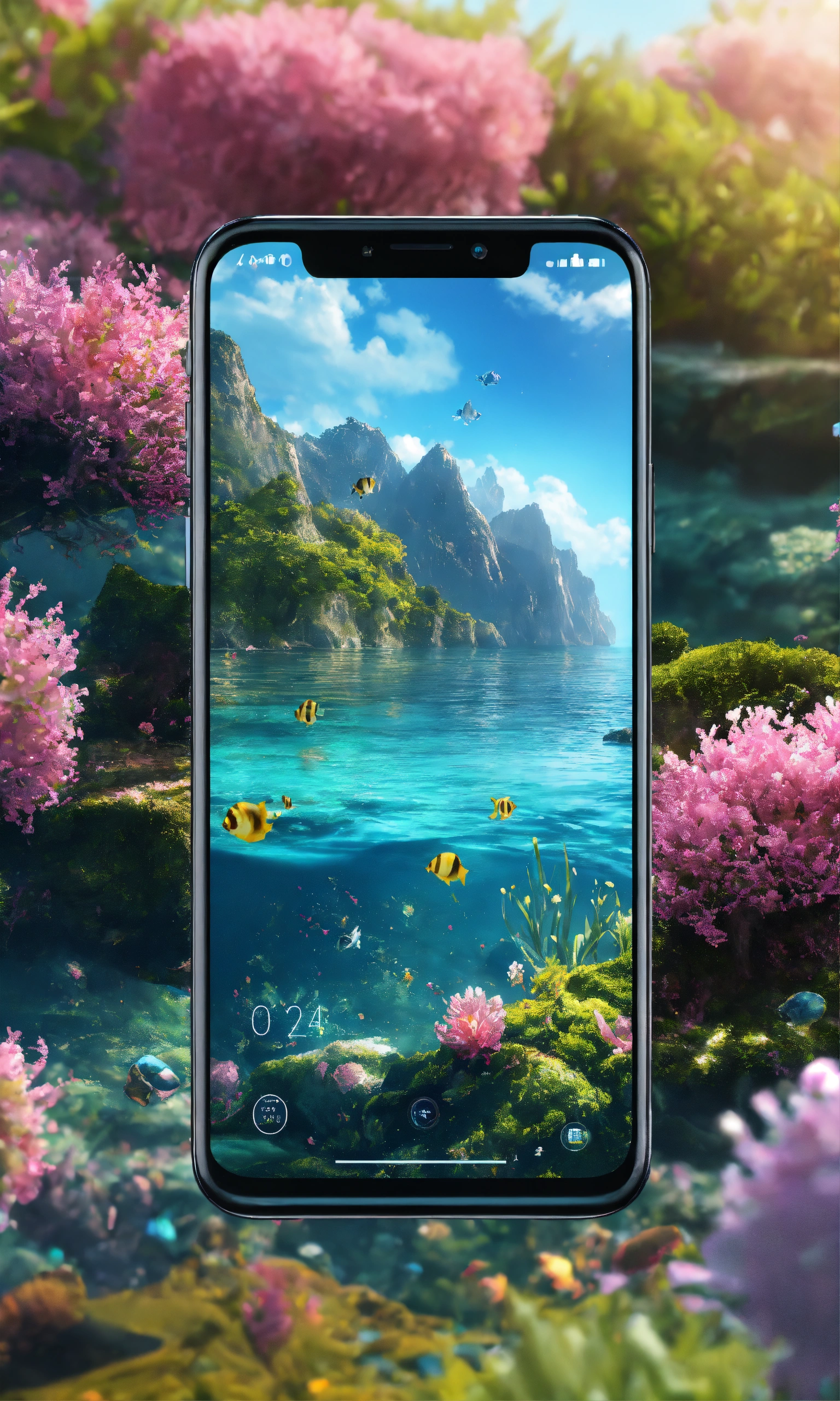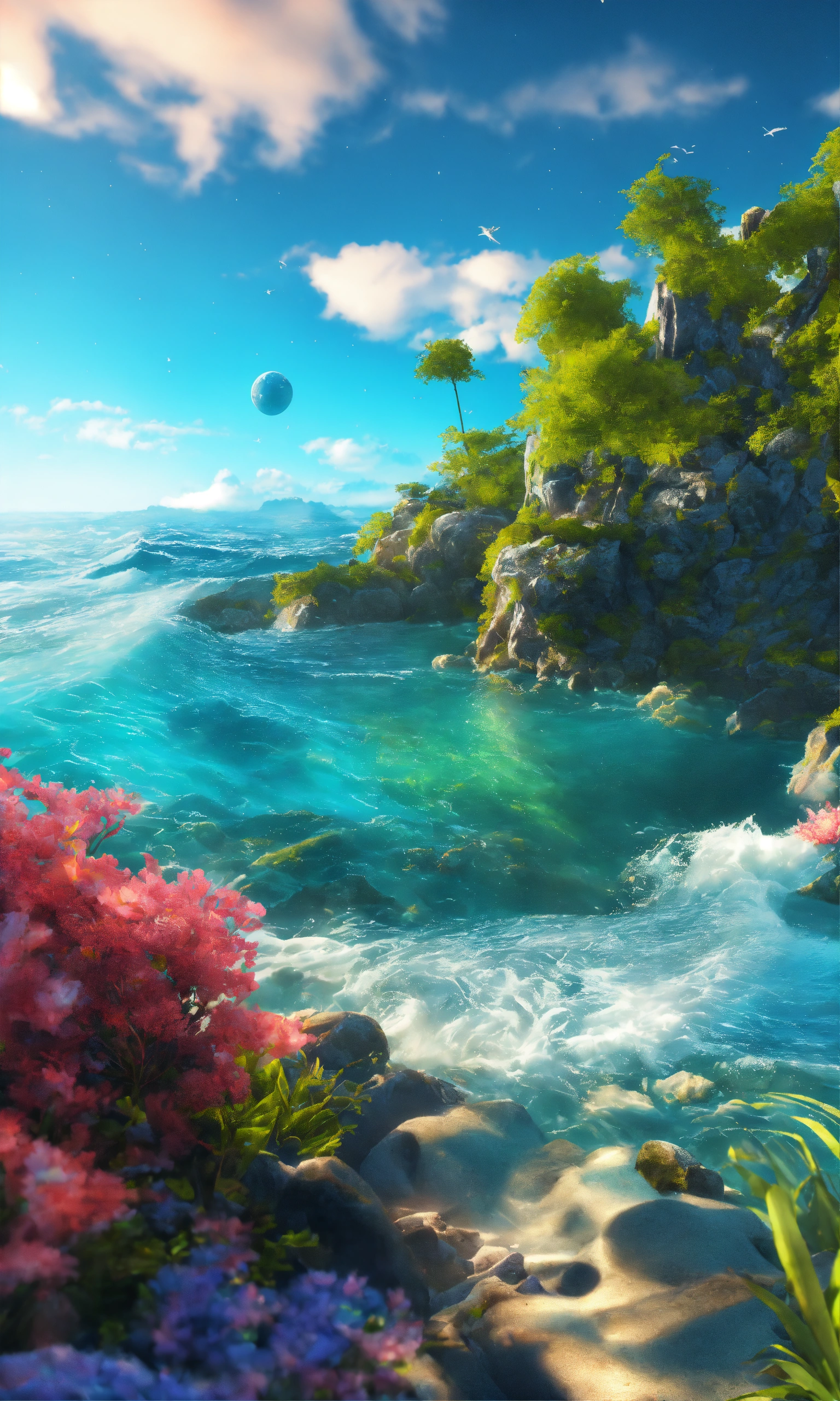 Live wallpaper, highly detailed, 8k, 3d, wallpaper for phones, upscale 5x, nature ocean, imaginery world, how beautifull it is.