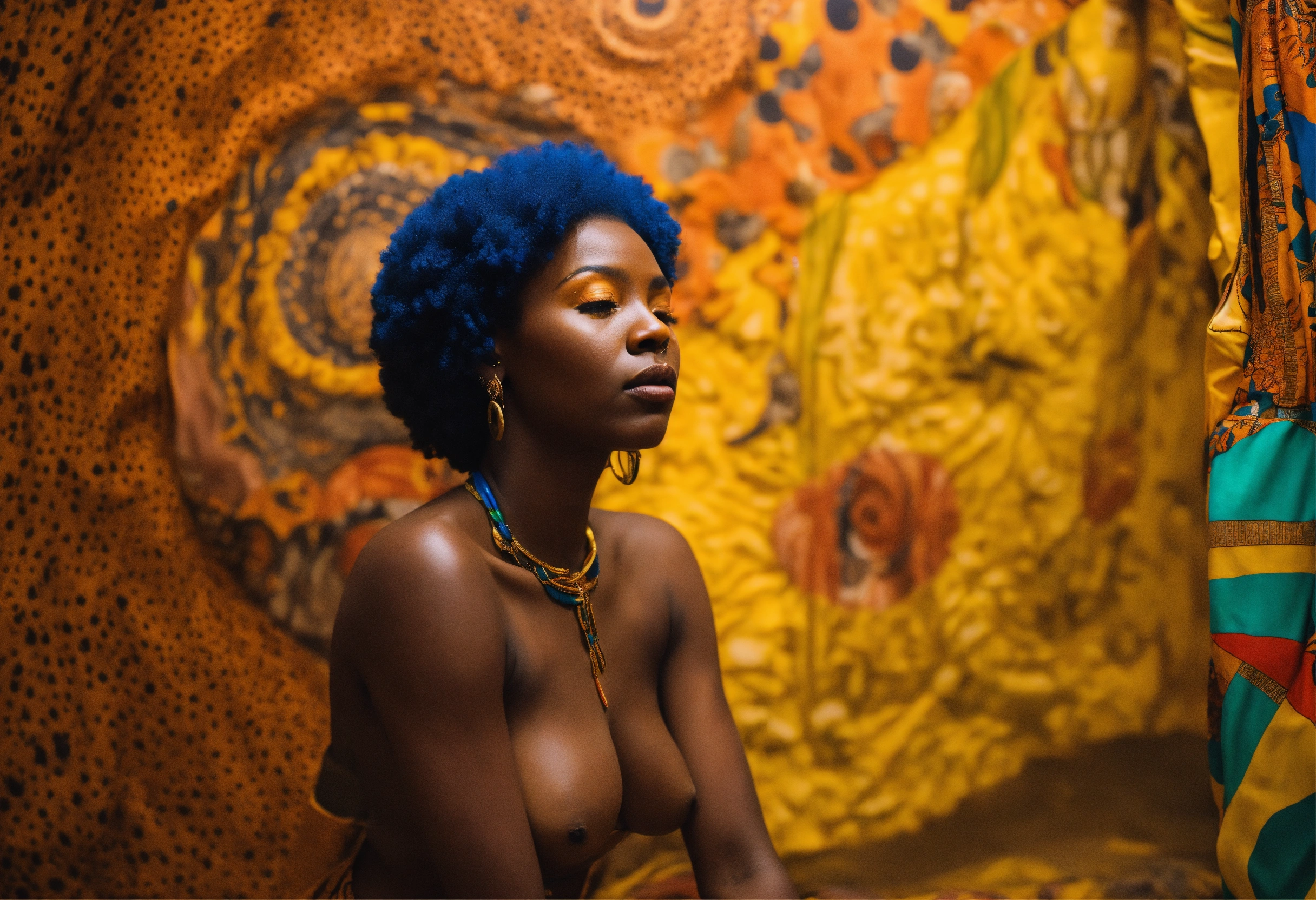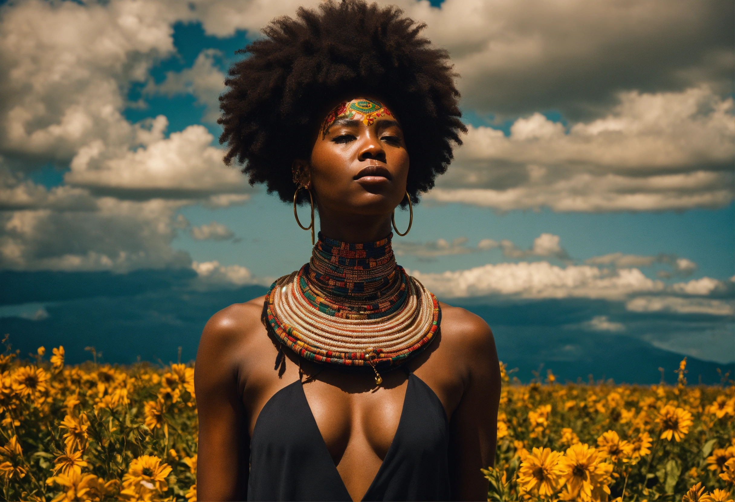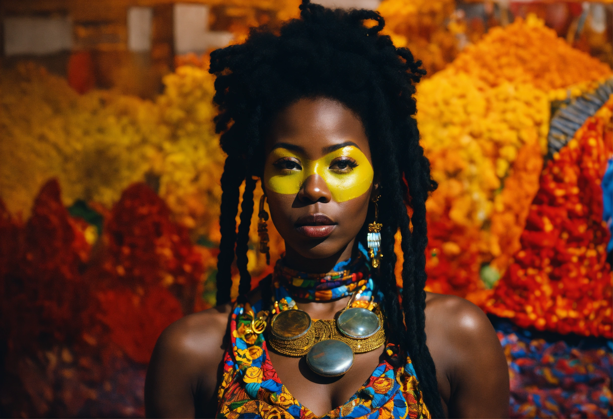 Performance art of an afrocentric woman entitled she sees the world without being seen