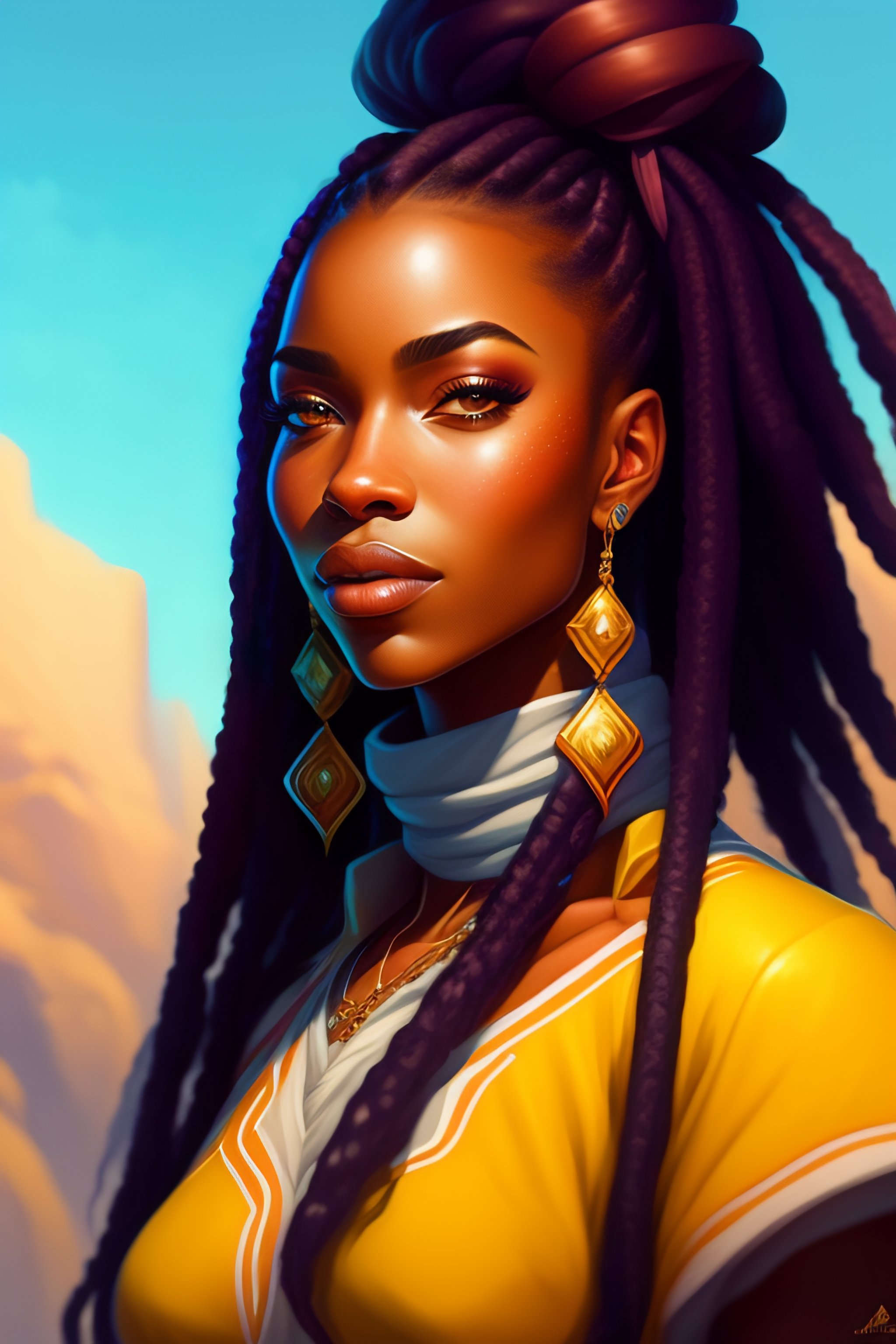 Portrait african american woman, with dreadlocks, miss fantasy art heartstone video game icon, 2d game art gta cover, official fanart behance hd artstation by jesper ejsing, by rhads, makoto shinkai and lois van baarle, ilya kuvshinov, rossdraws