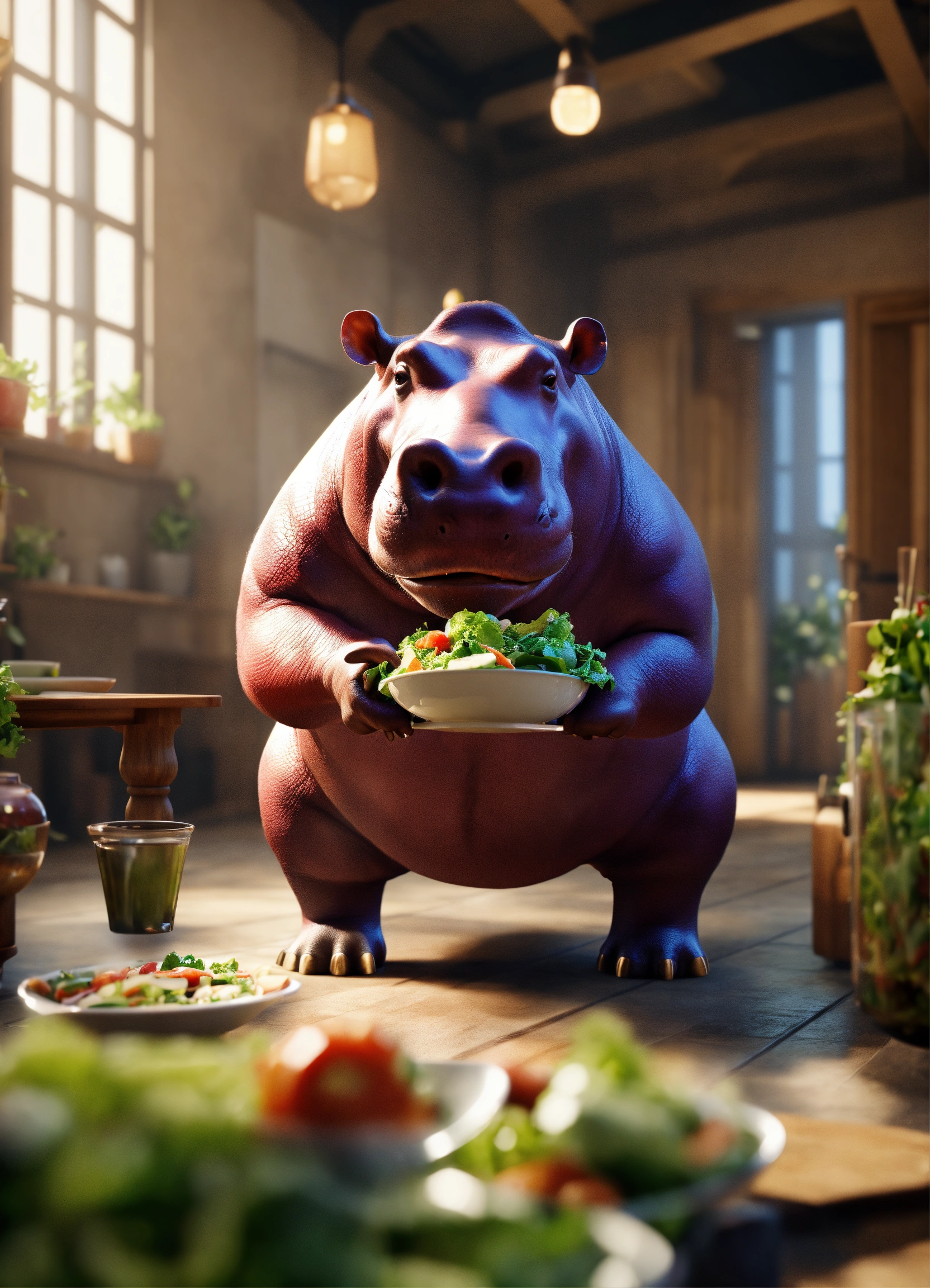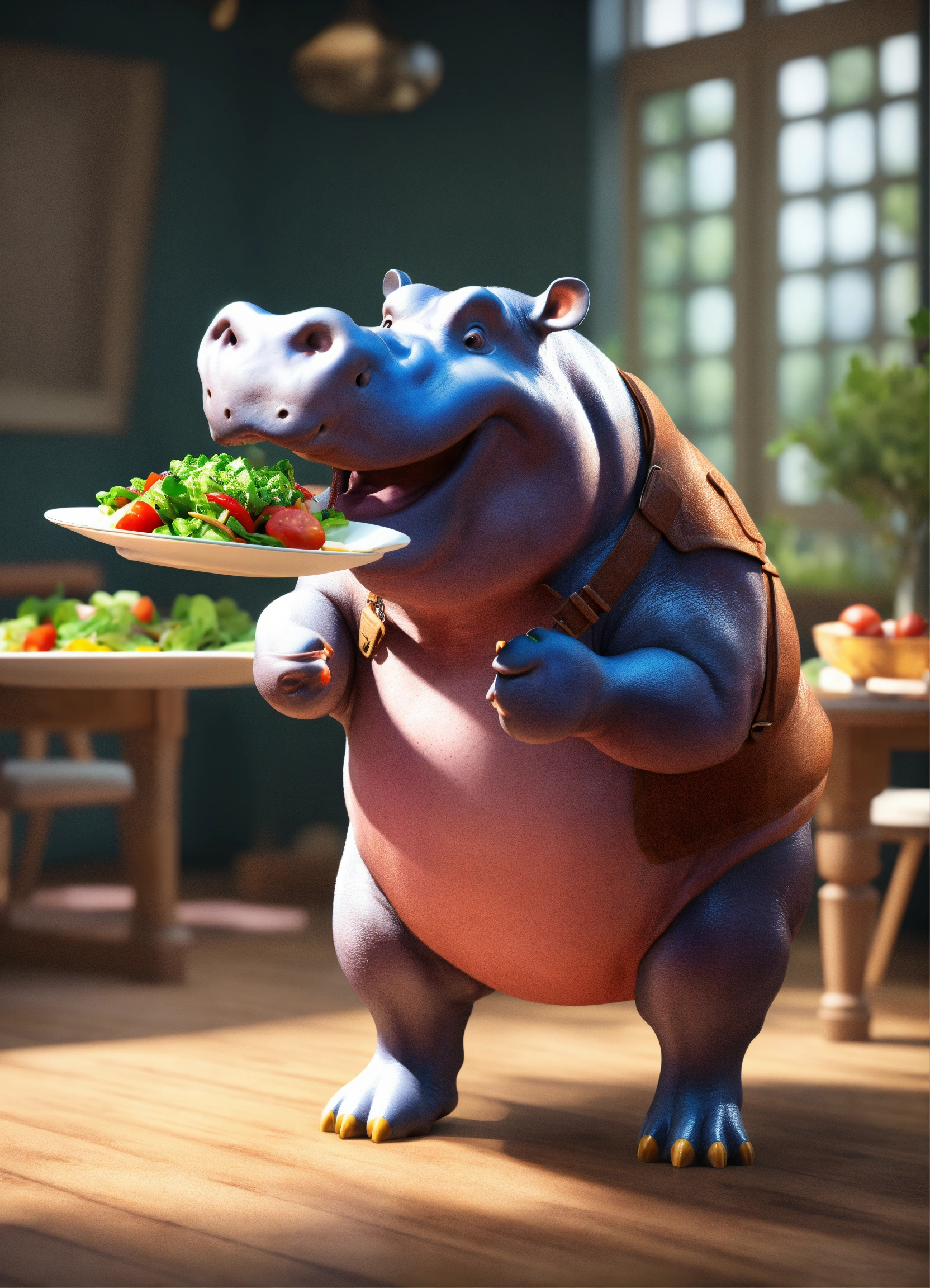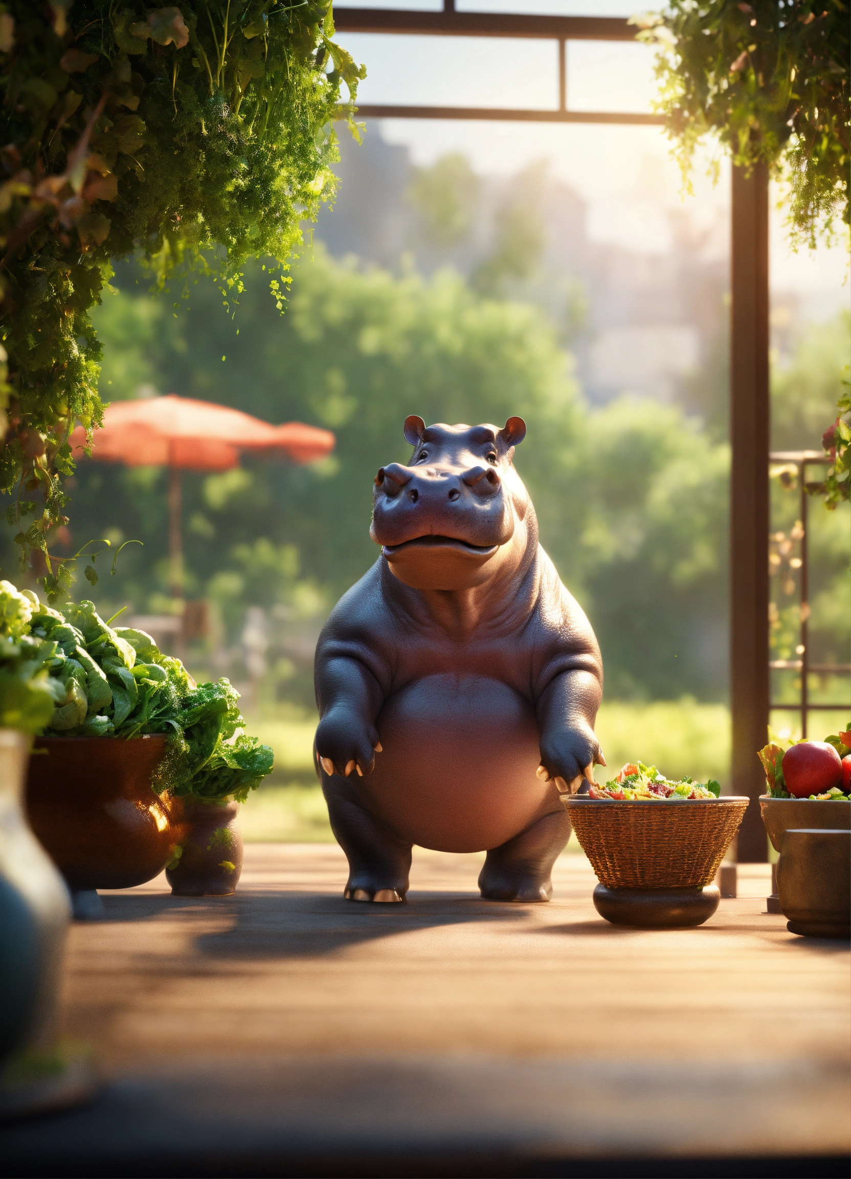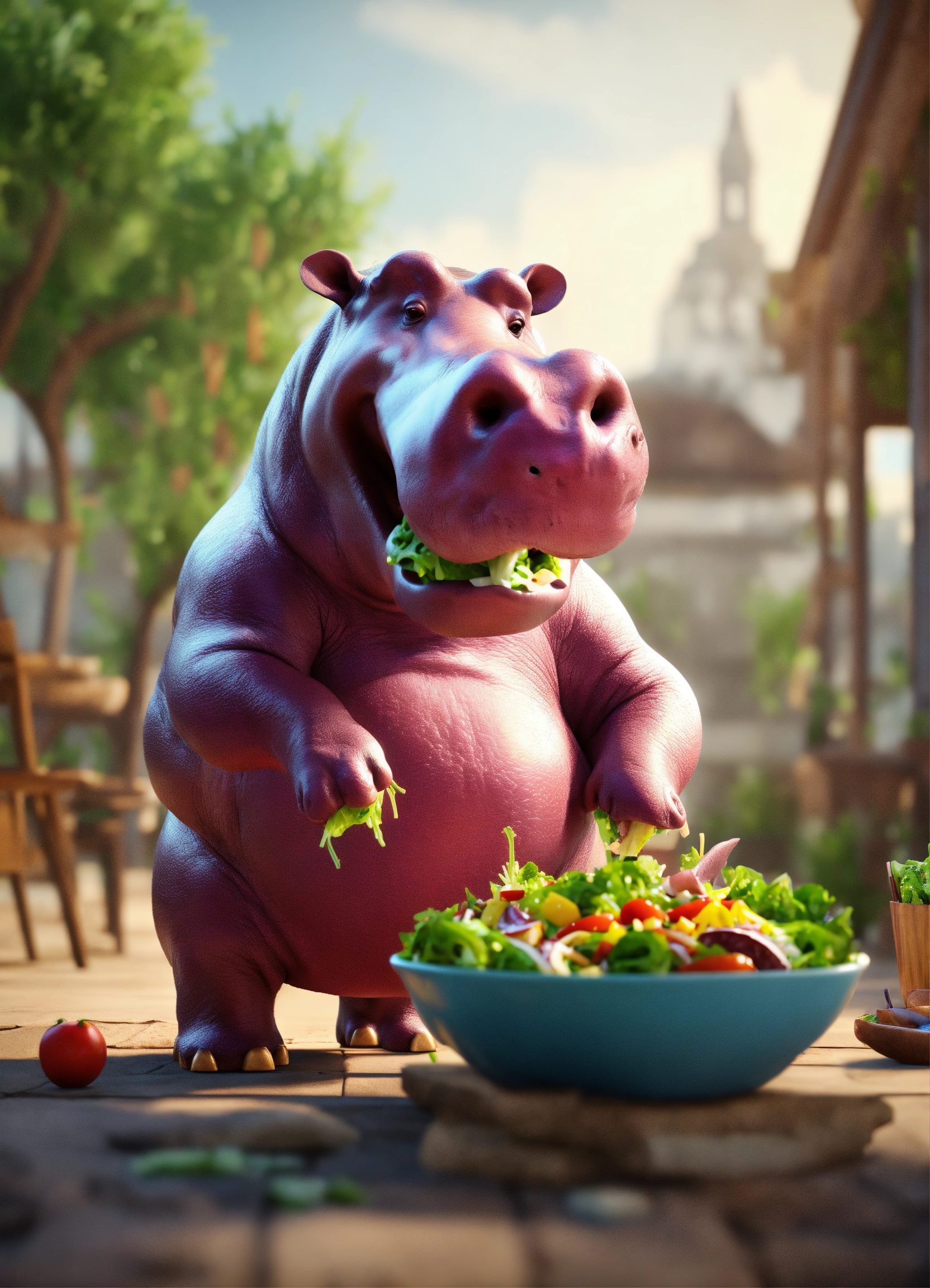 A hippopotamus standing on 2 legs