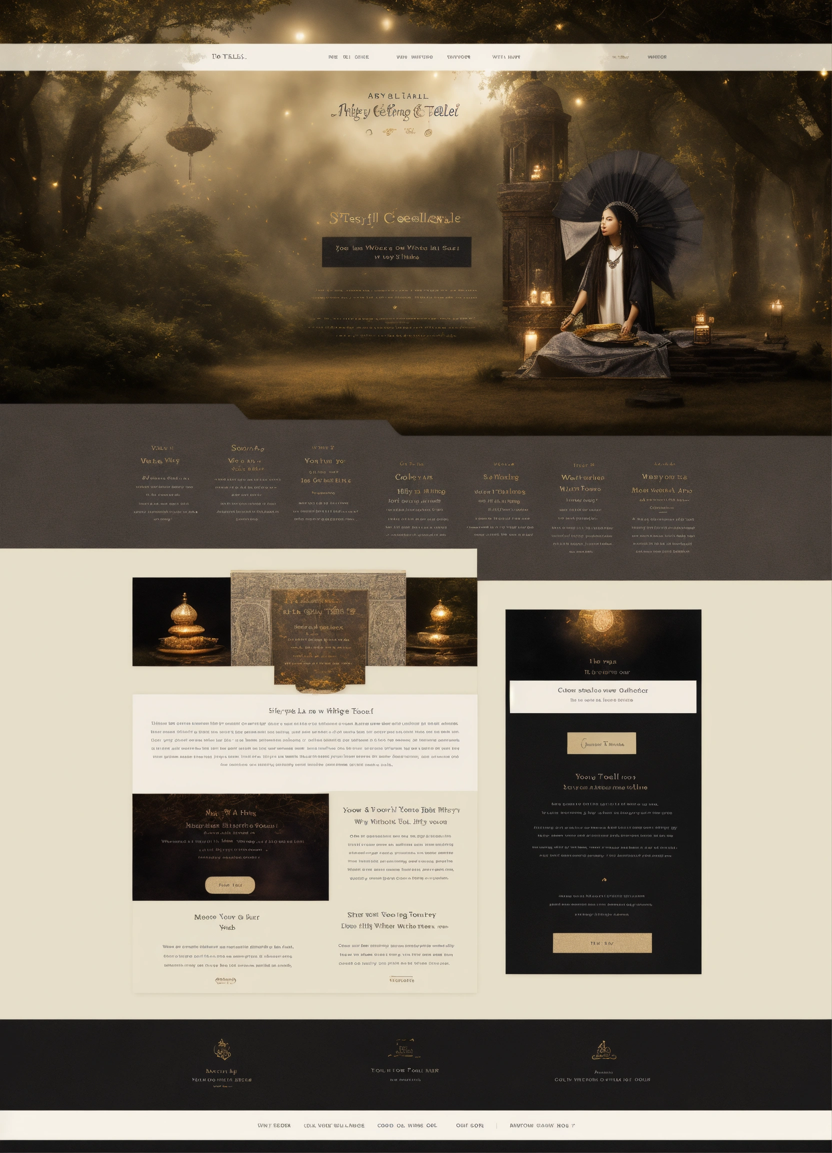 Beautiful landing page for a fortune tellers website, mystical theme, black and white color scheme, highly detailed site.