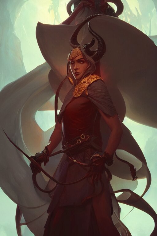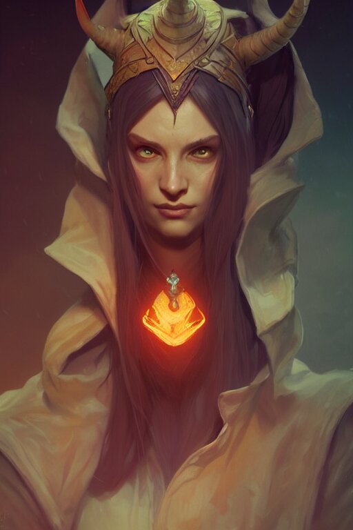 A tiefling wizard, highly detailed, digital painting, artstation, concept art, smooth, sharp focus, illustration, unreal engine 5, 8k, art by ross tran and greg rutkowski and alphonse mucha