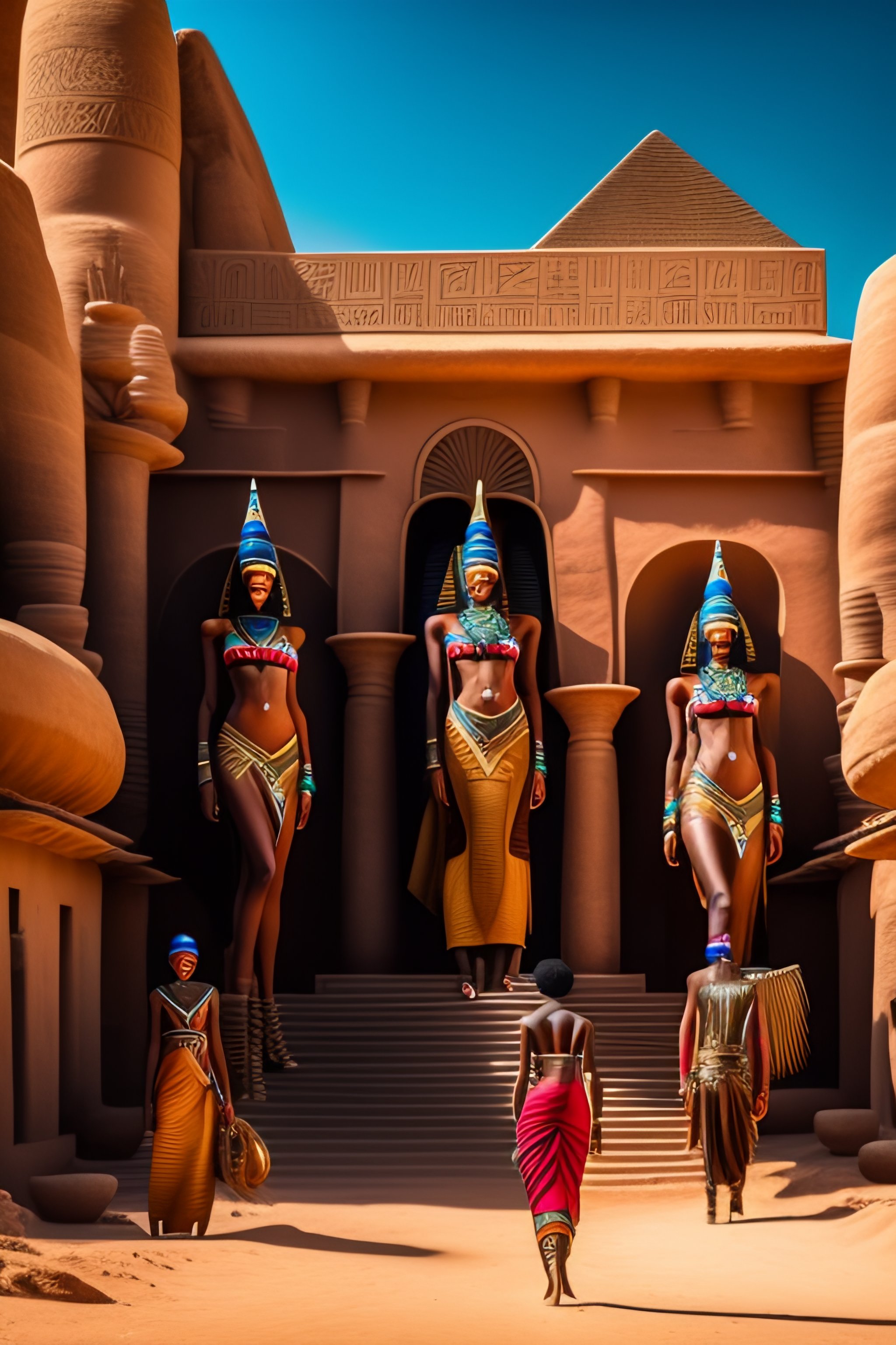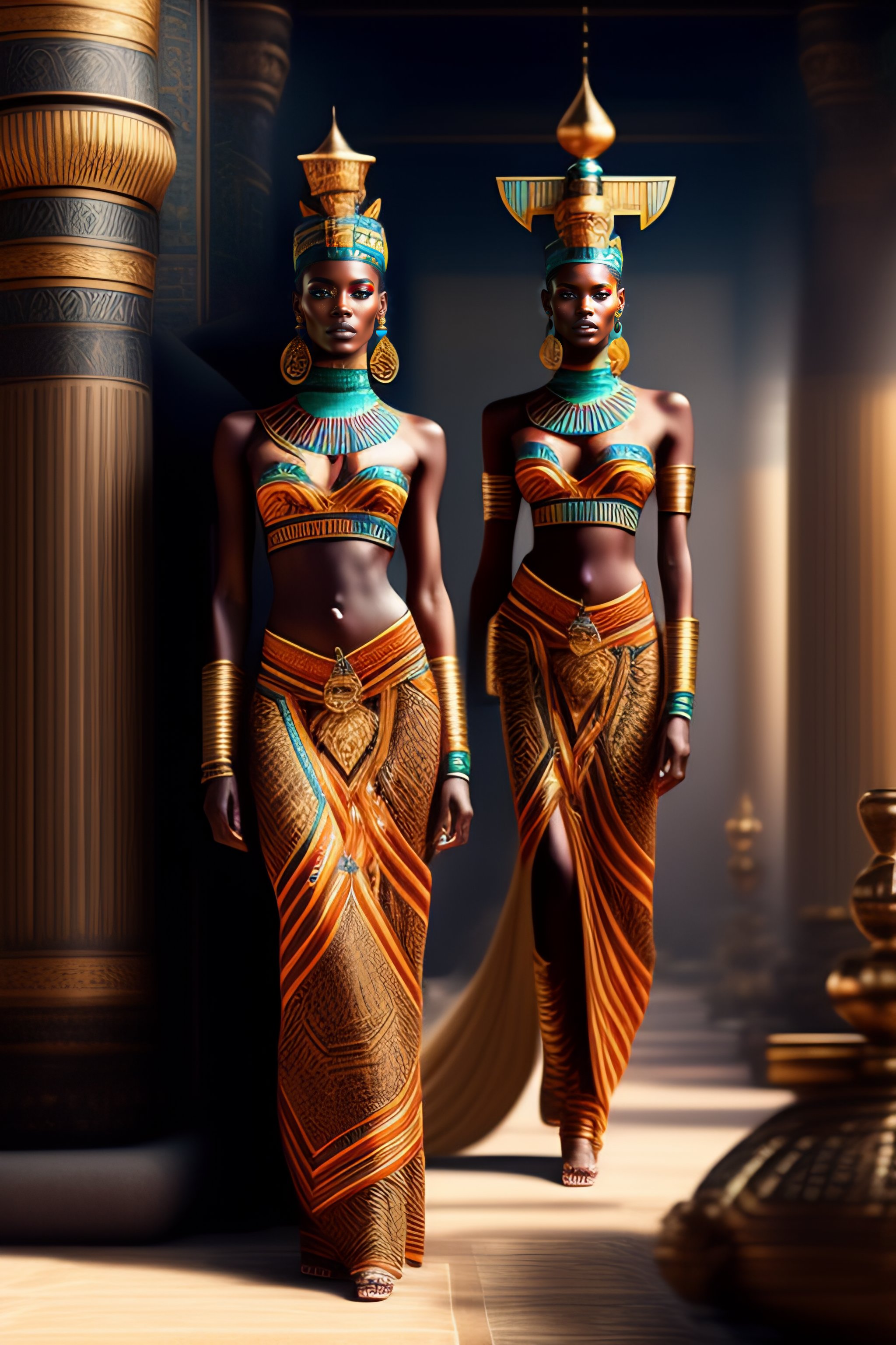 Realistic high definition fashion business in the metarverse photo, amazing composition, astonishing detail, ancient egypt decor, african models