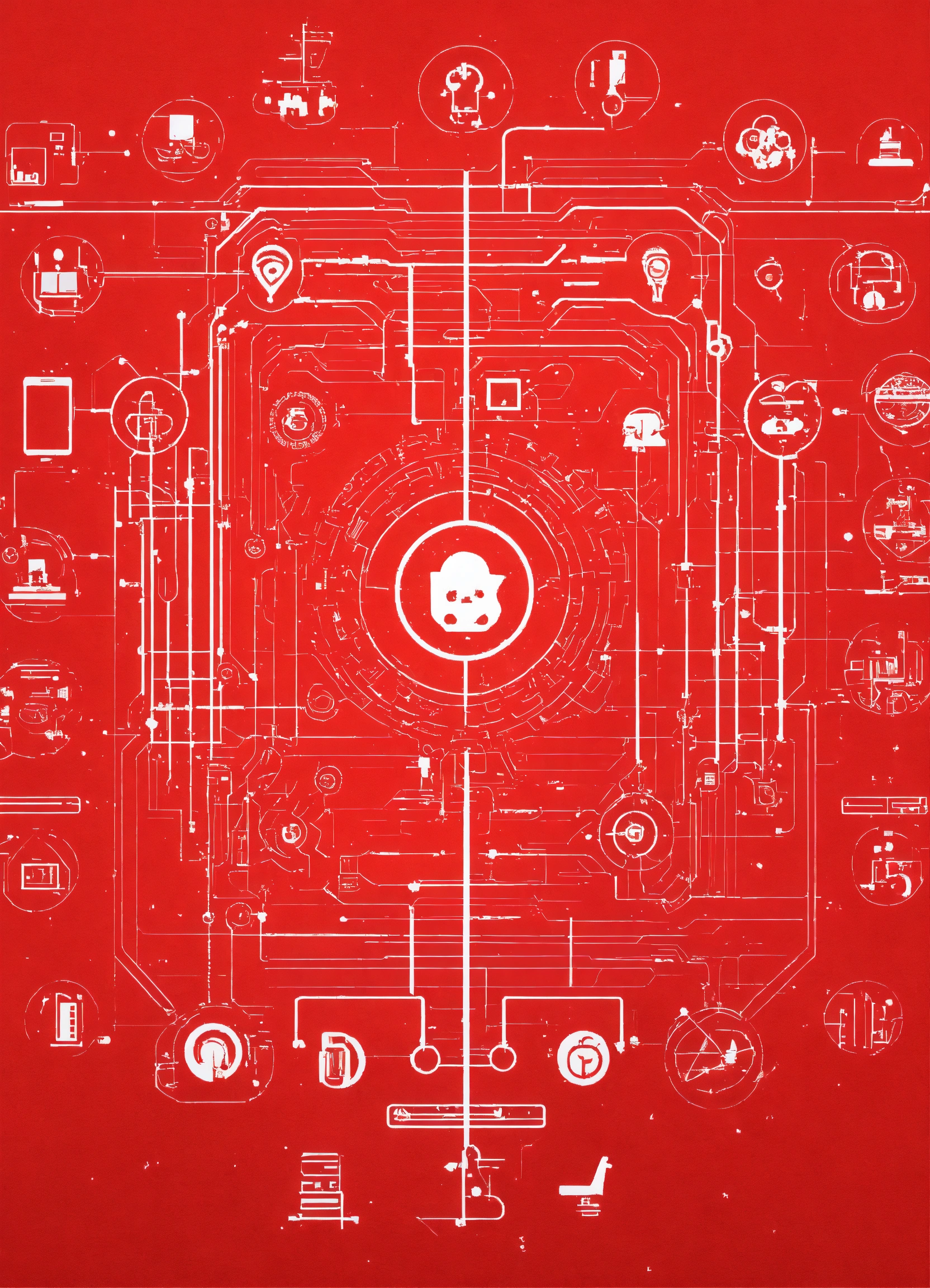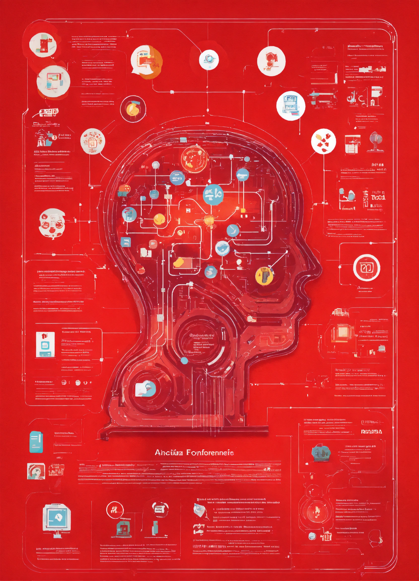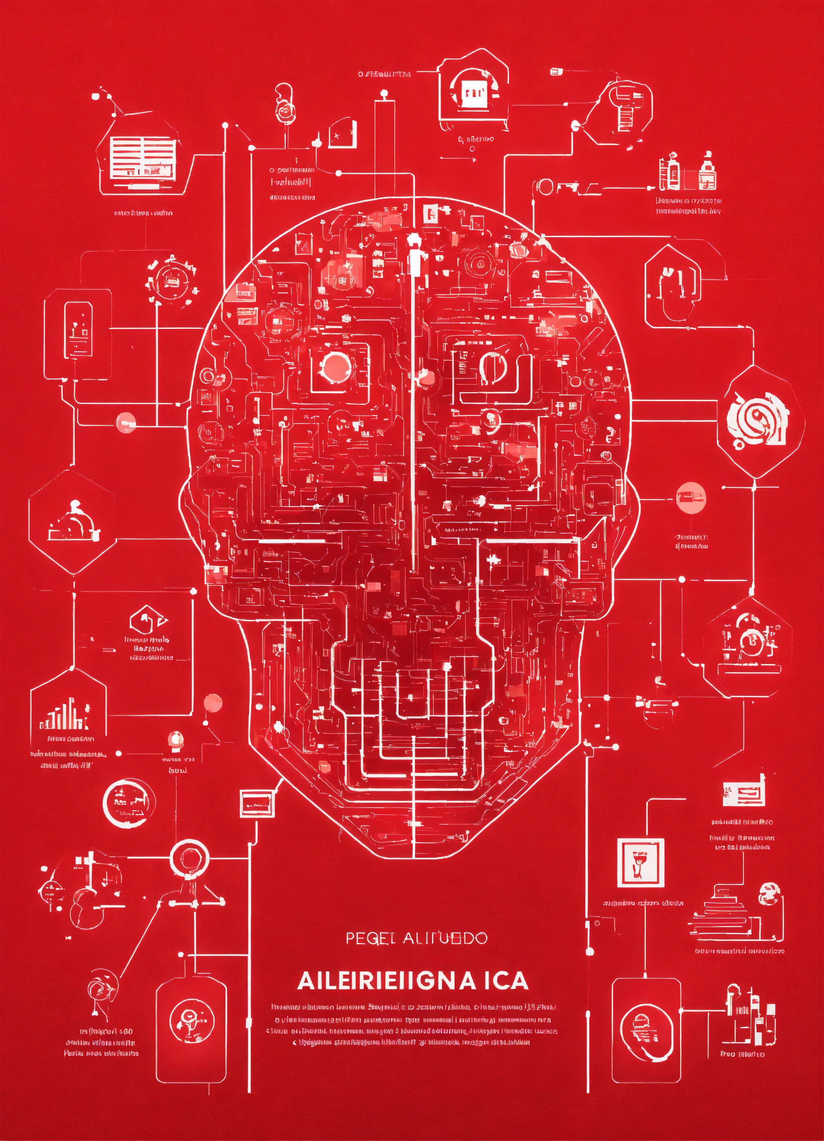 Portada con fondo rojo sobre inteligencia artificial con iconos pequeños