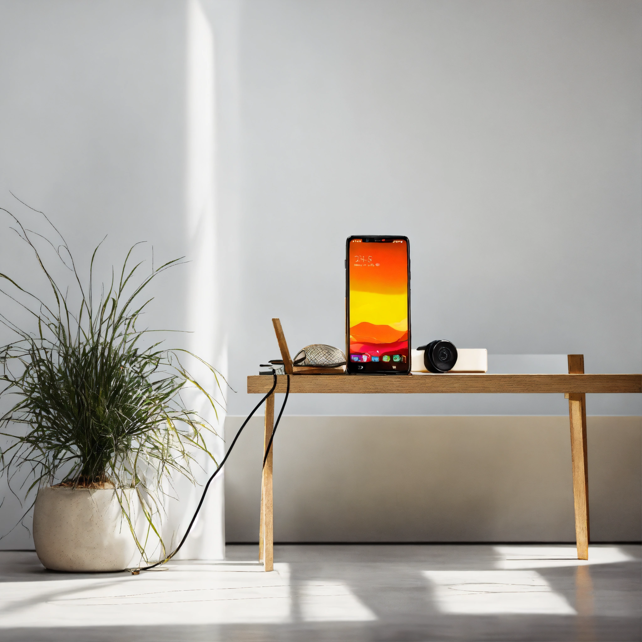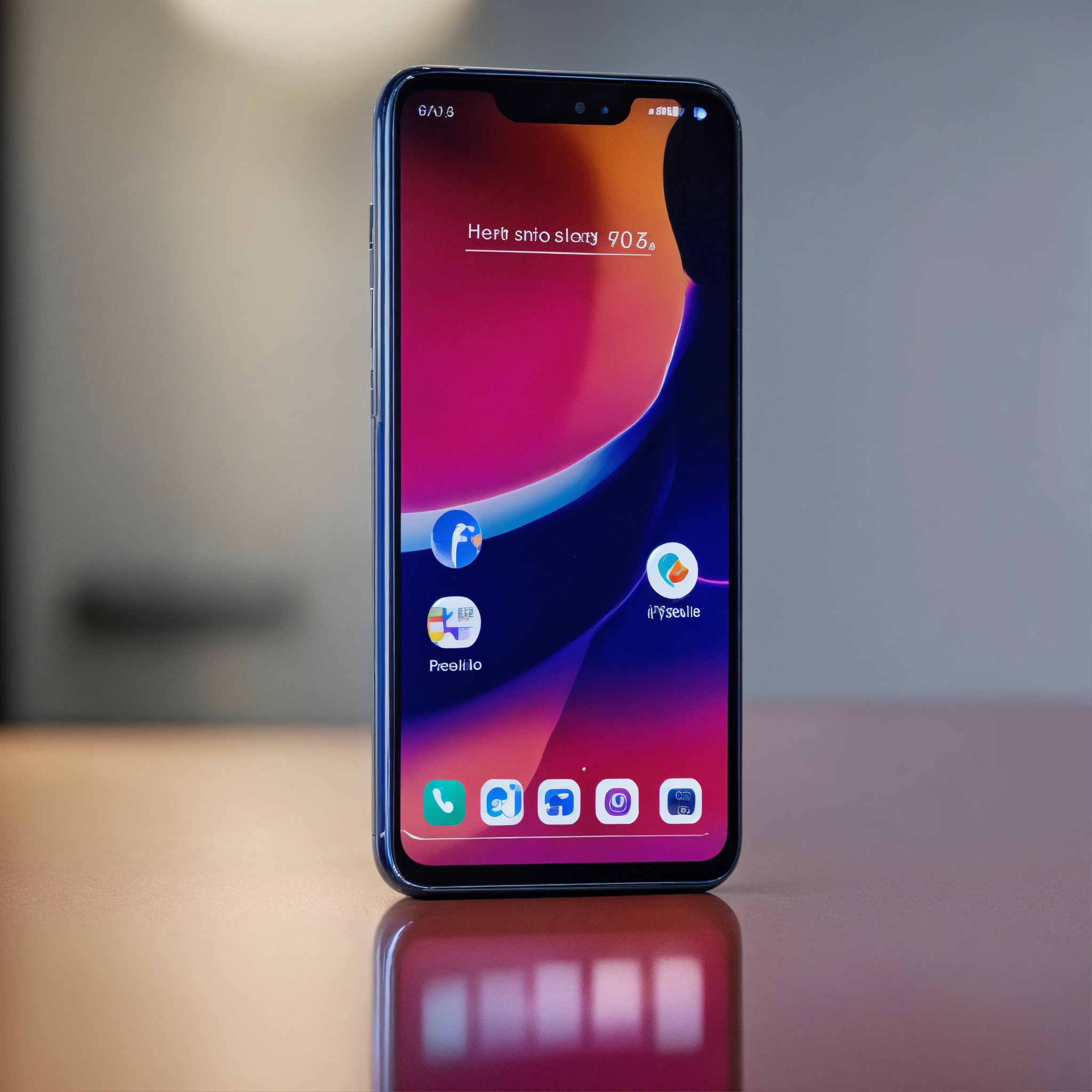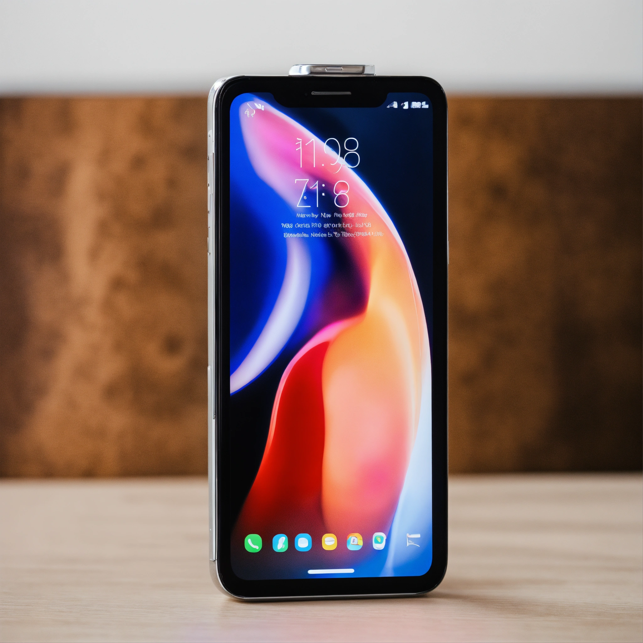 A photo of a mobile phone. the phone is new, sleek, and modern. the background is a plain white wall.