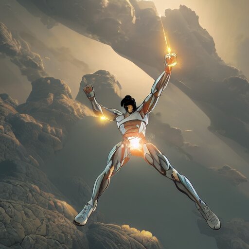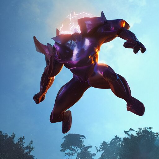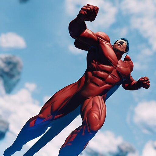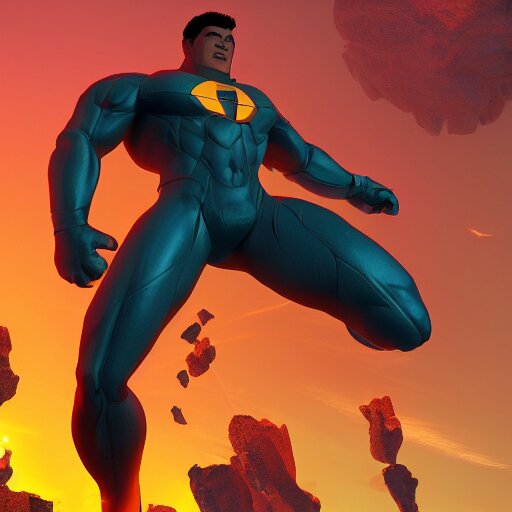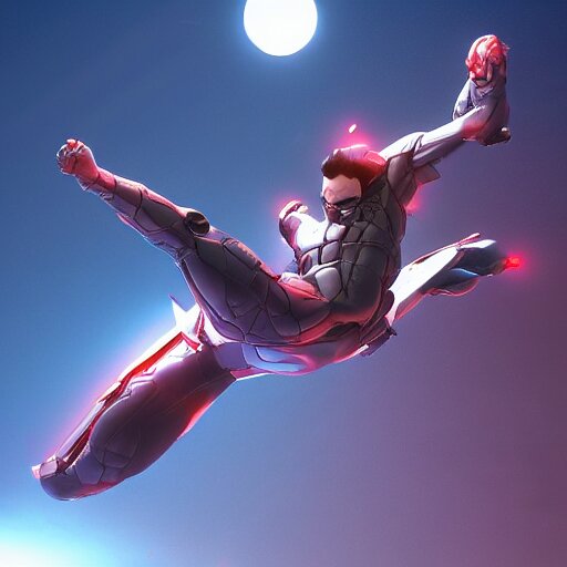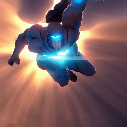 Invincible (image comics) flying in an heroic pose, trending on artstation, volumetric lighting, micro details, ray tracing, 8k