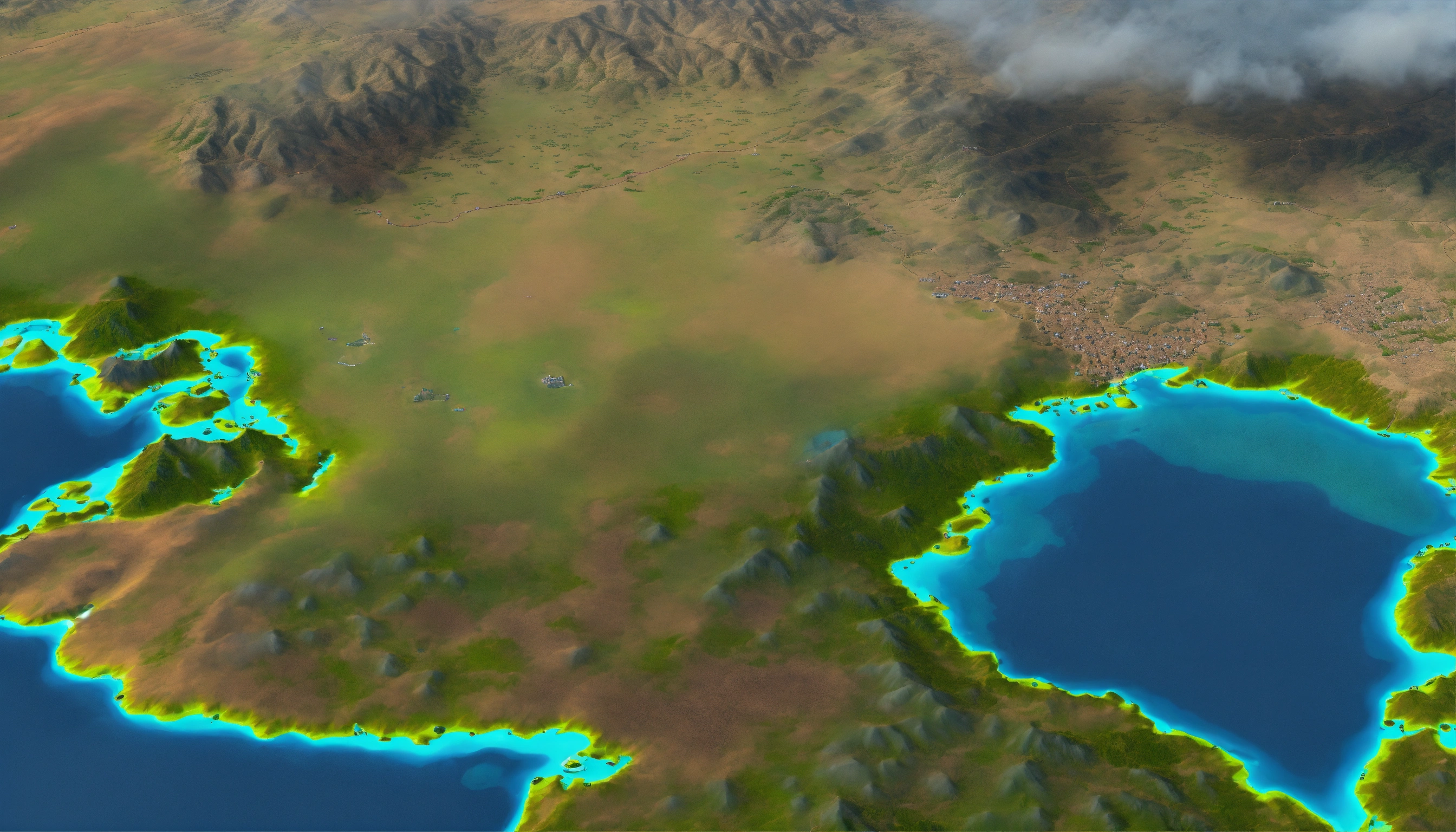 Arial view of 200 miles north to south with tel giddo in the bottom 1/5th of the map. 6k image qualty, animation