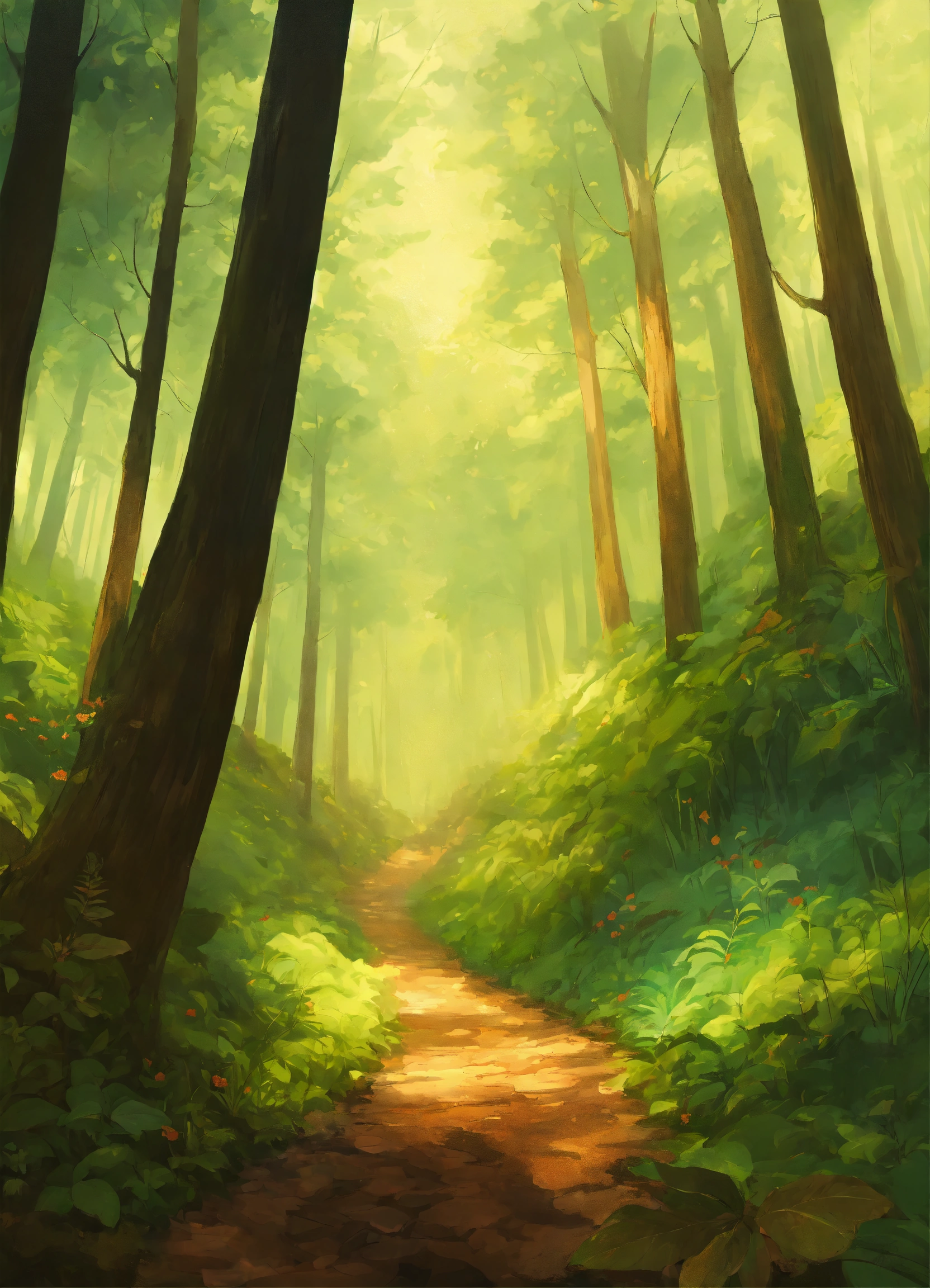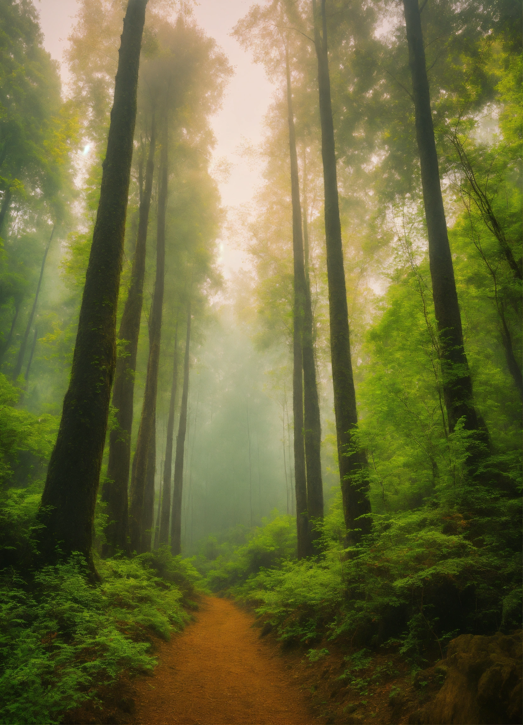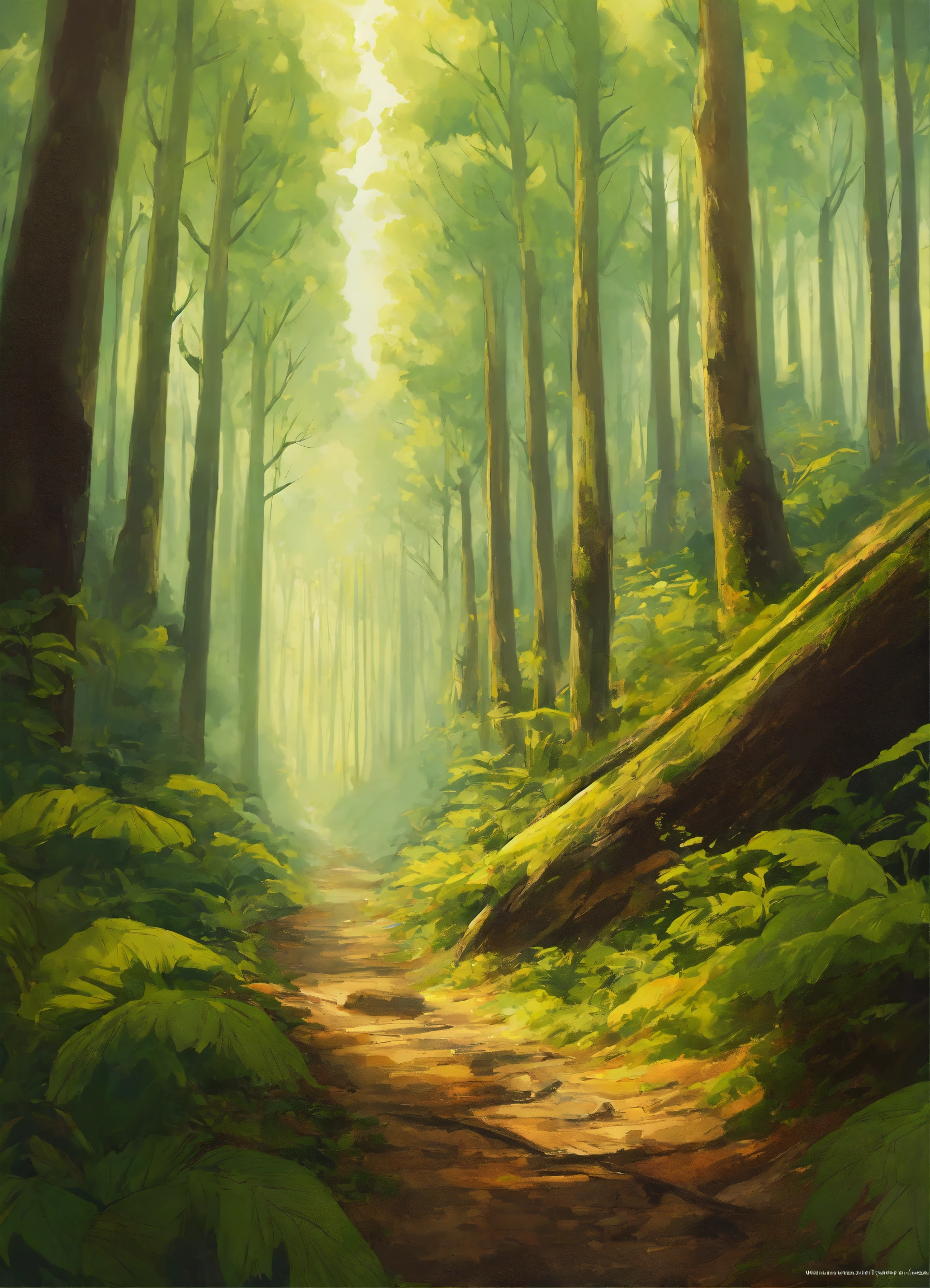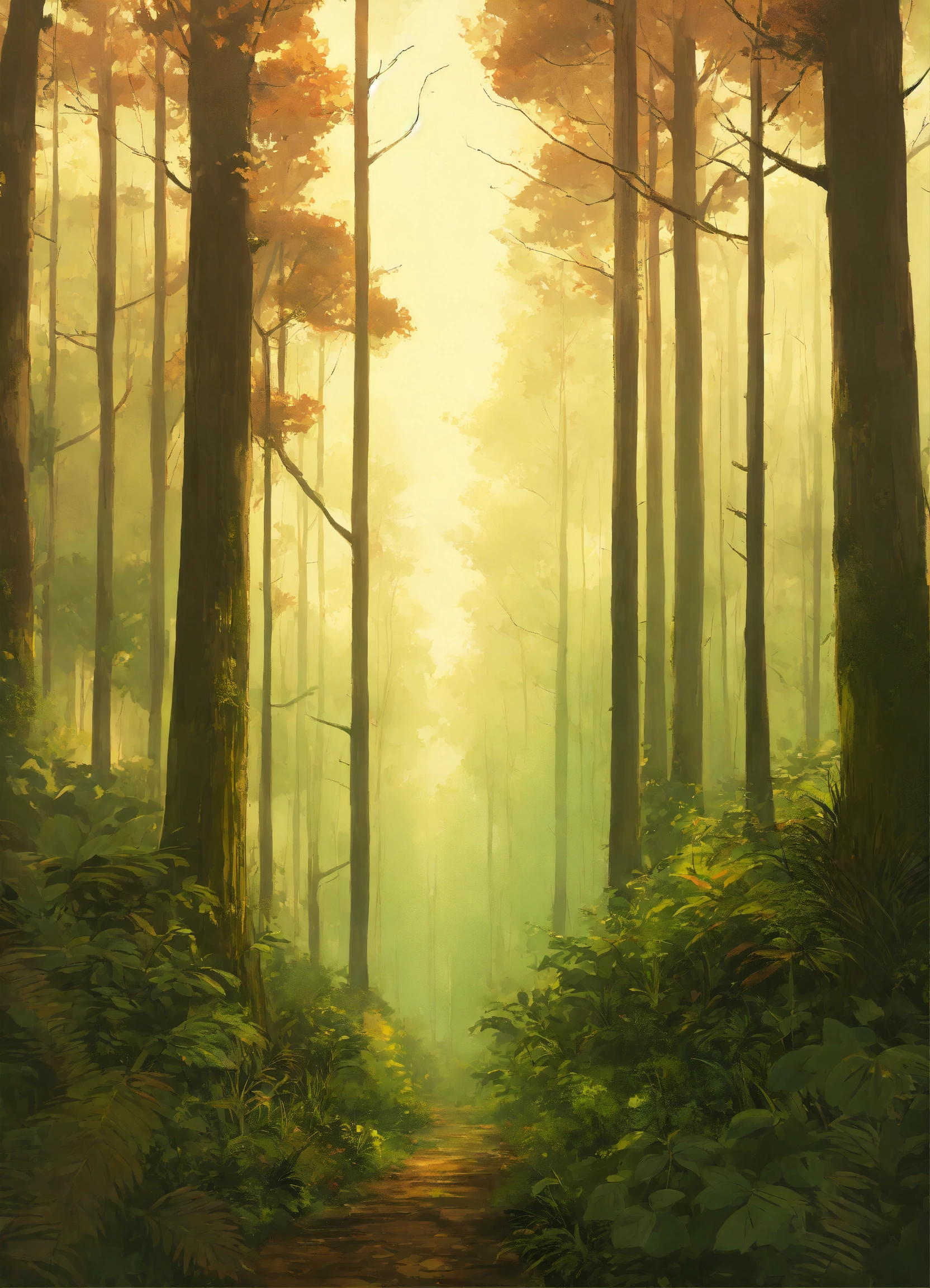 Forest seen from the bottom perspective, you can appreciate the haze, which is made in traditional art