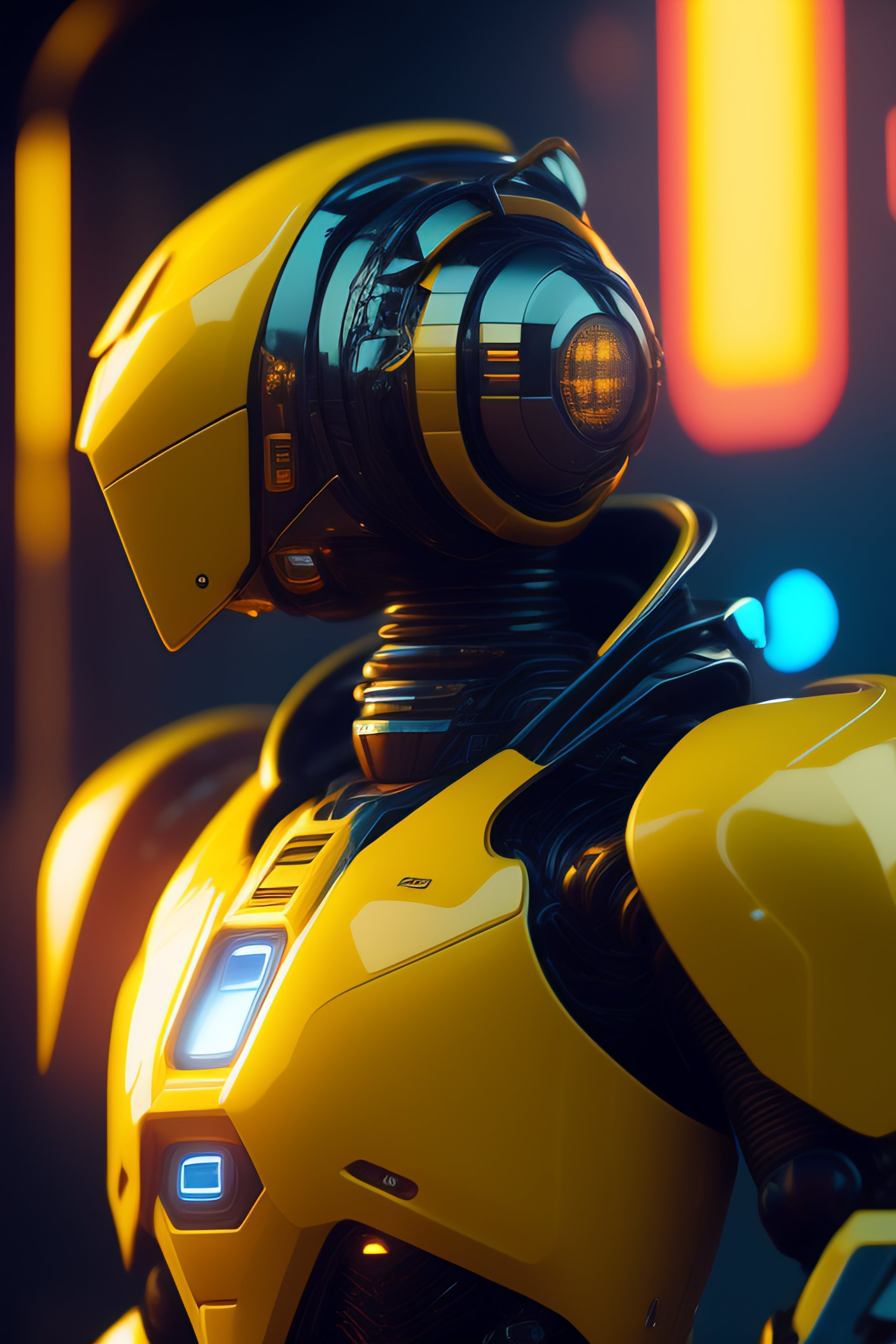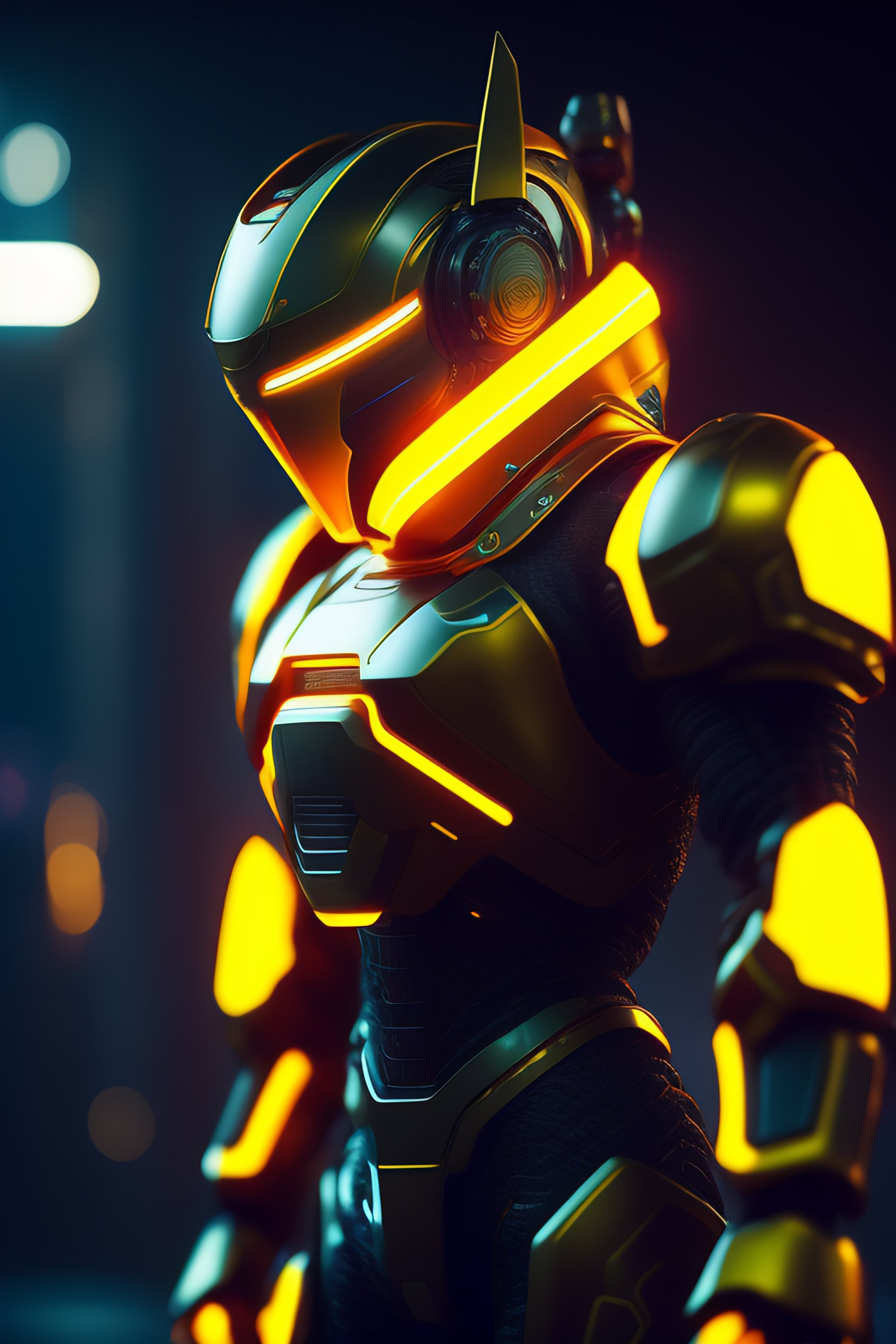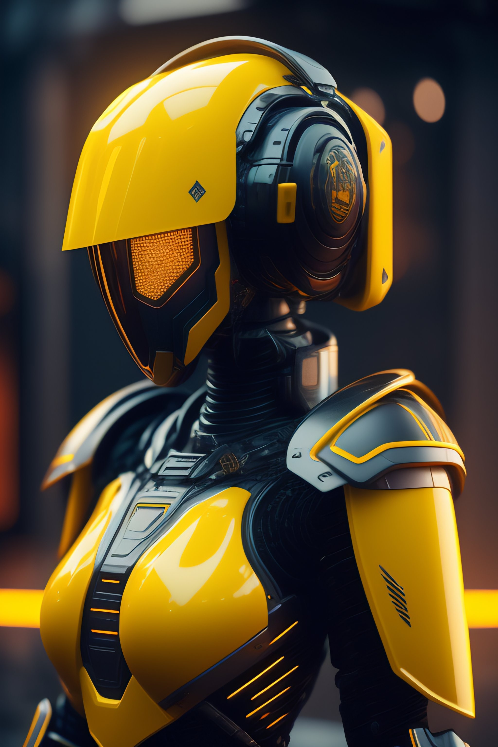 Robot destroyed to pieces with glowing yelow visor as a realistic scifi cyberpunk knight, medium shot, intricate, unreal engine, cozy indoor lighting, artstation, detailed, digital painting, cinematic, character design by mark ryden and pixar and hayao miyazaki, unreal 5, daz, hyperrealistic, octane render