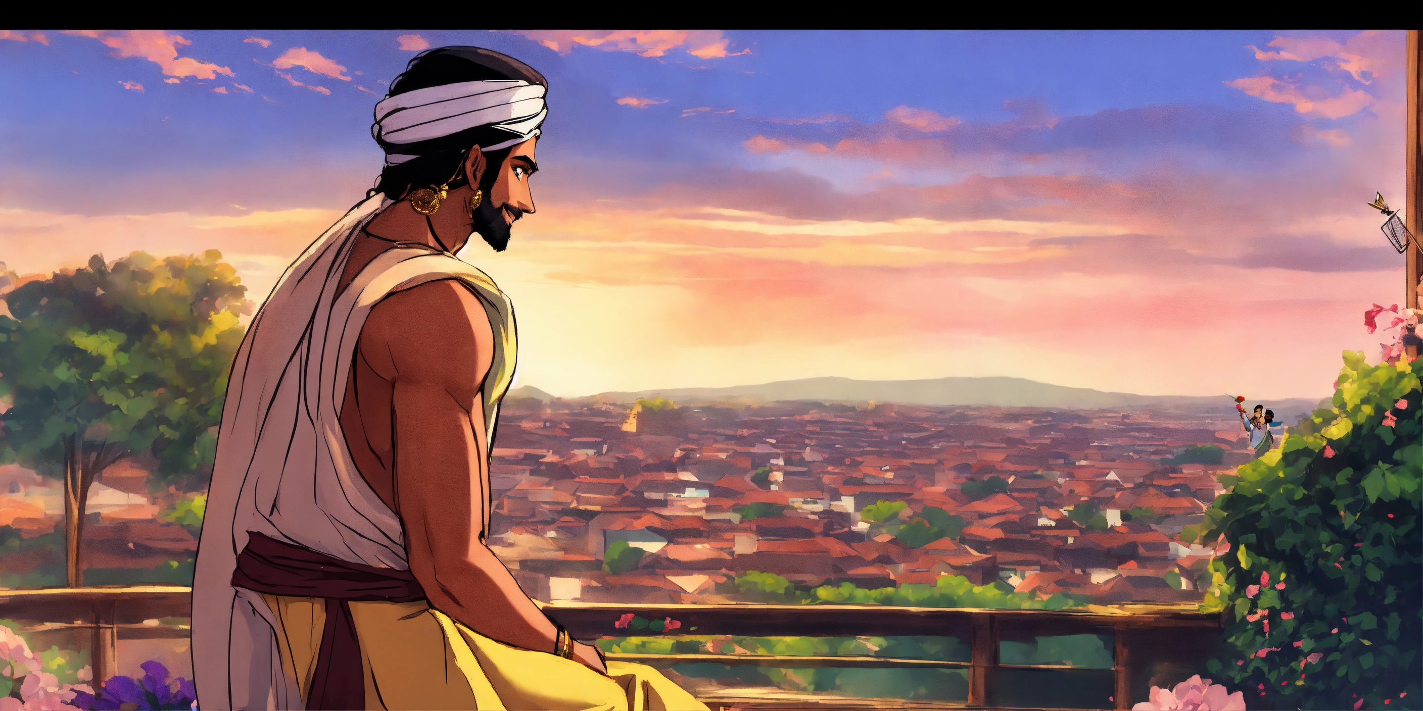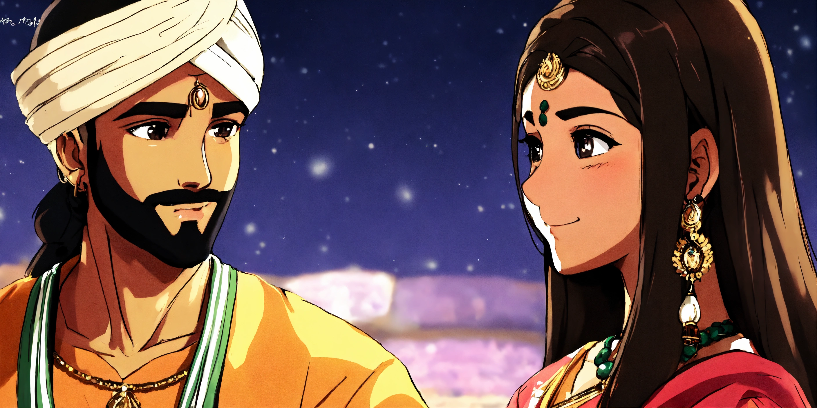 Indian turban guy looking at indian girl from far with smile on his face anime