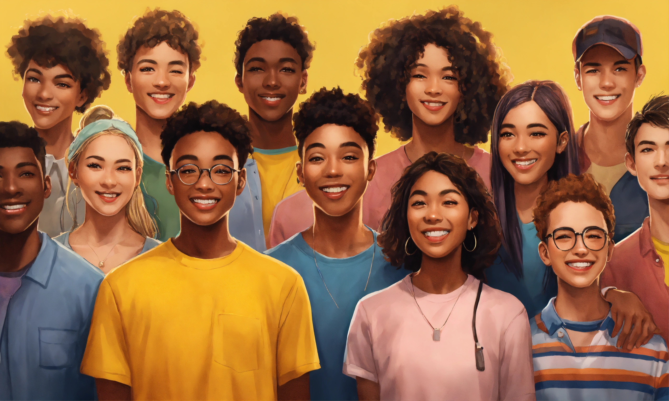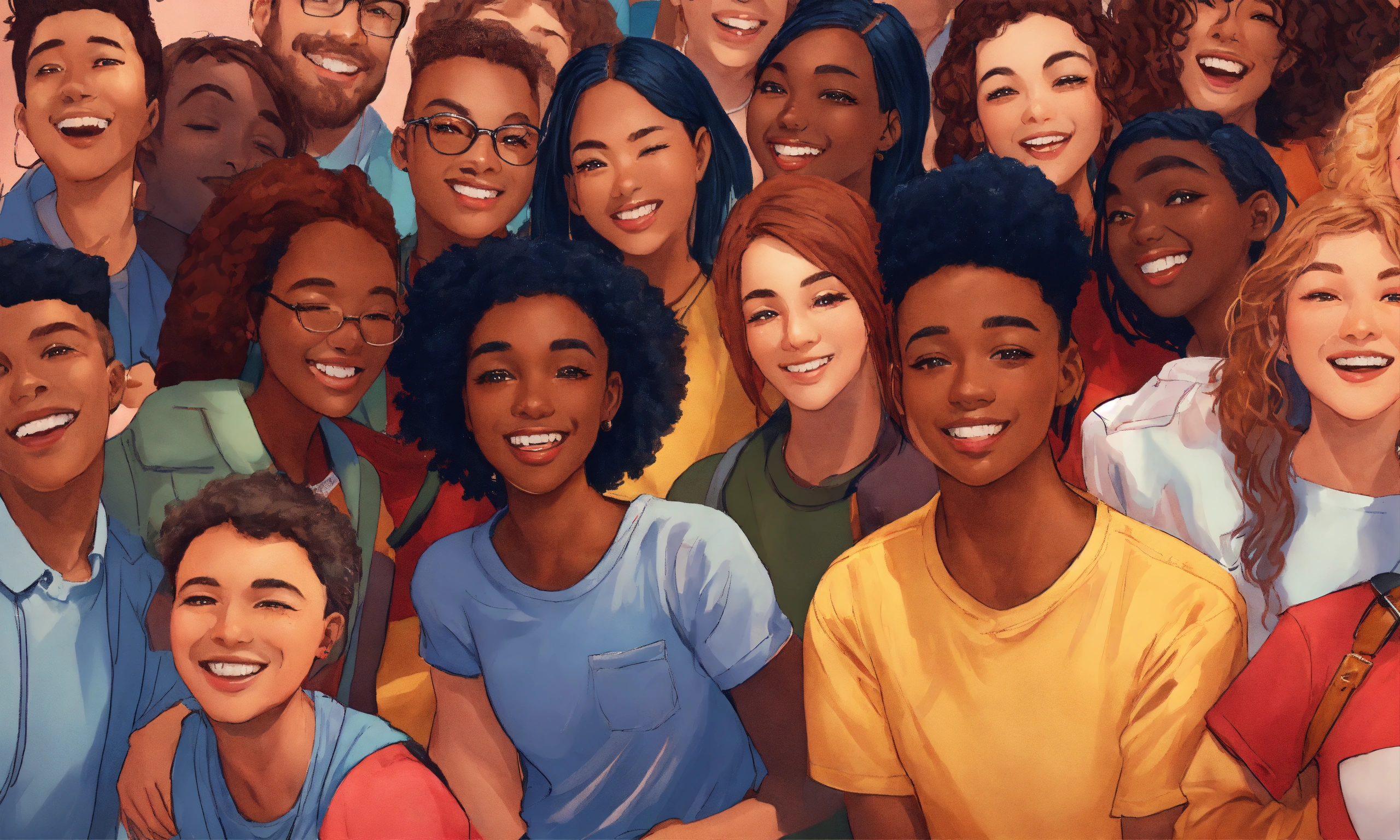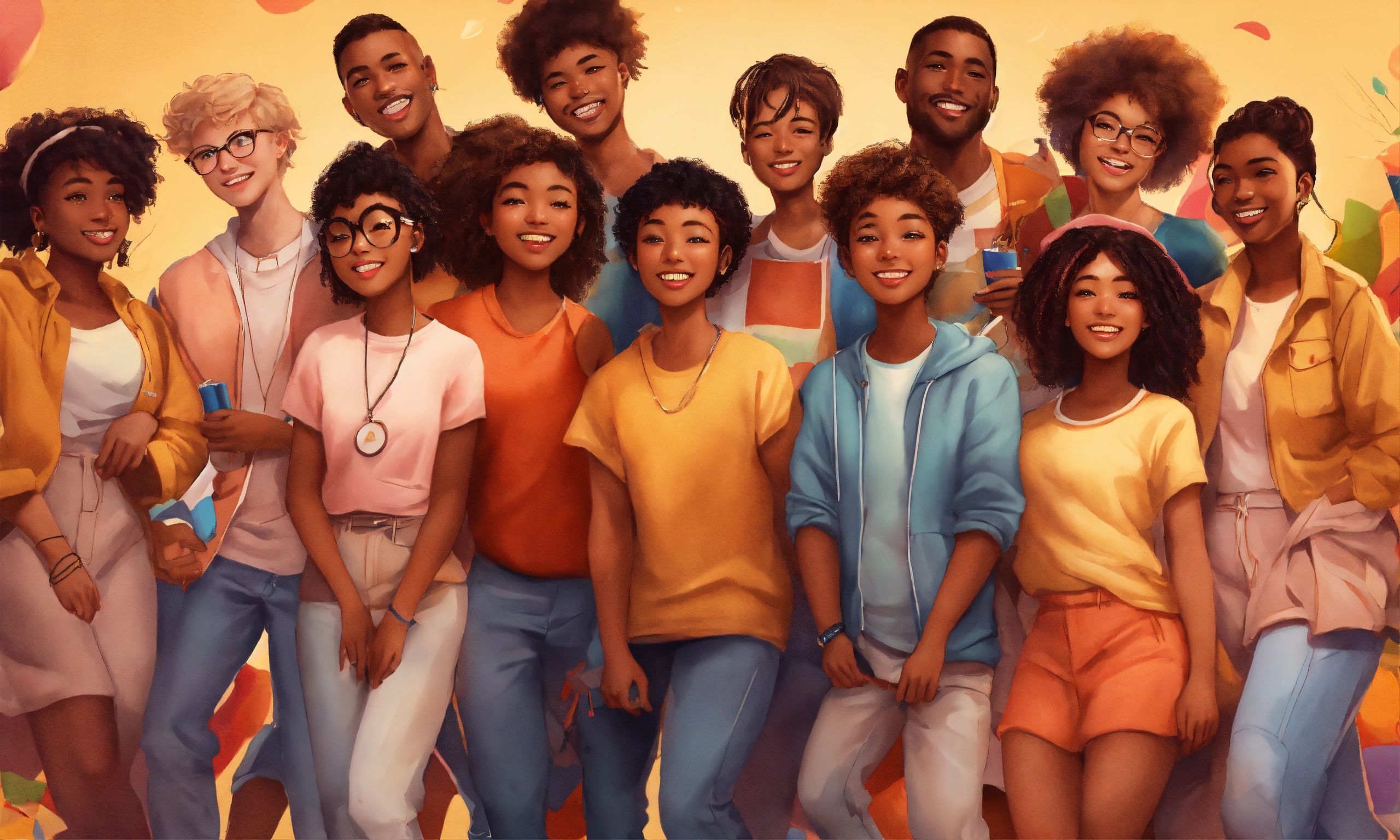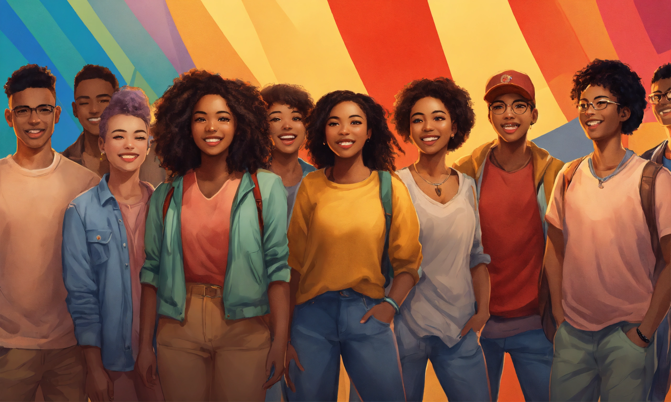 Very high detailed, ultra realistic, 2d illustration, a multiethnic group of young people joyfully commemorating inclusivity and diversity