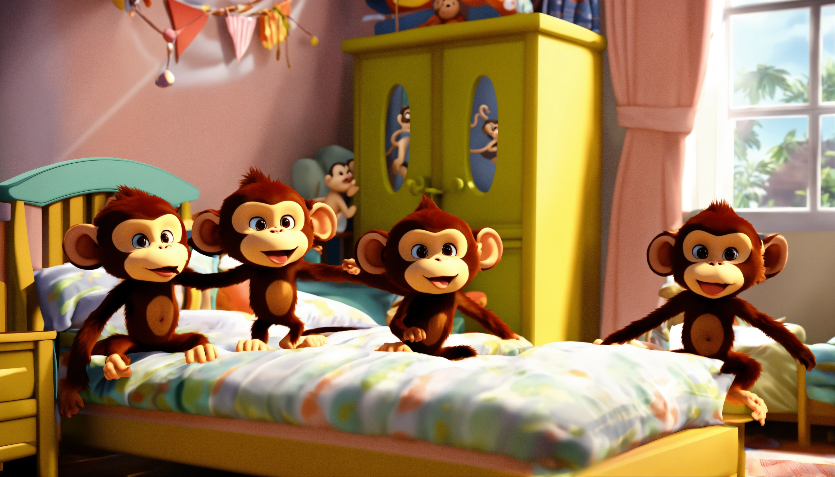 Five little monkeys jumping in the bed