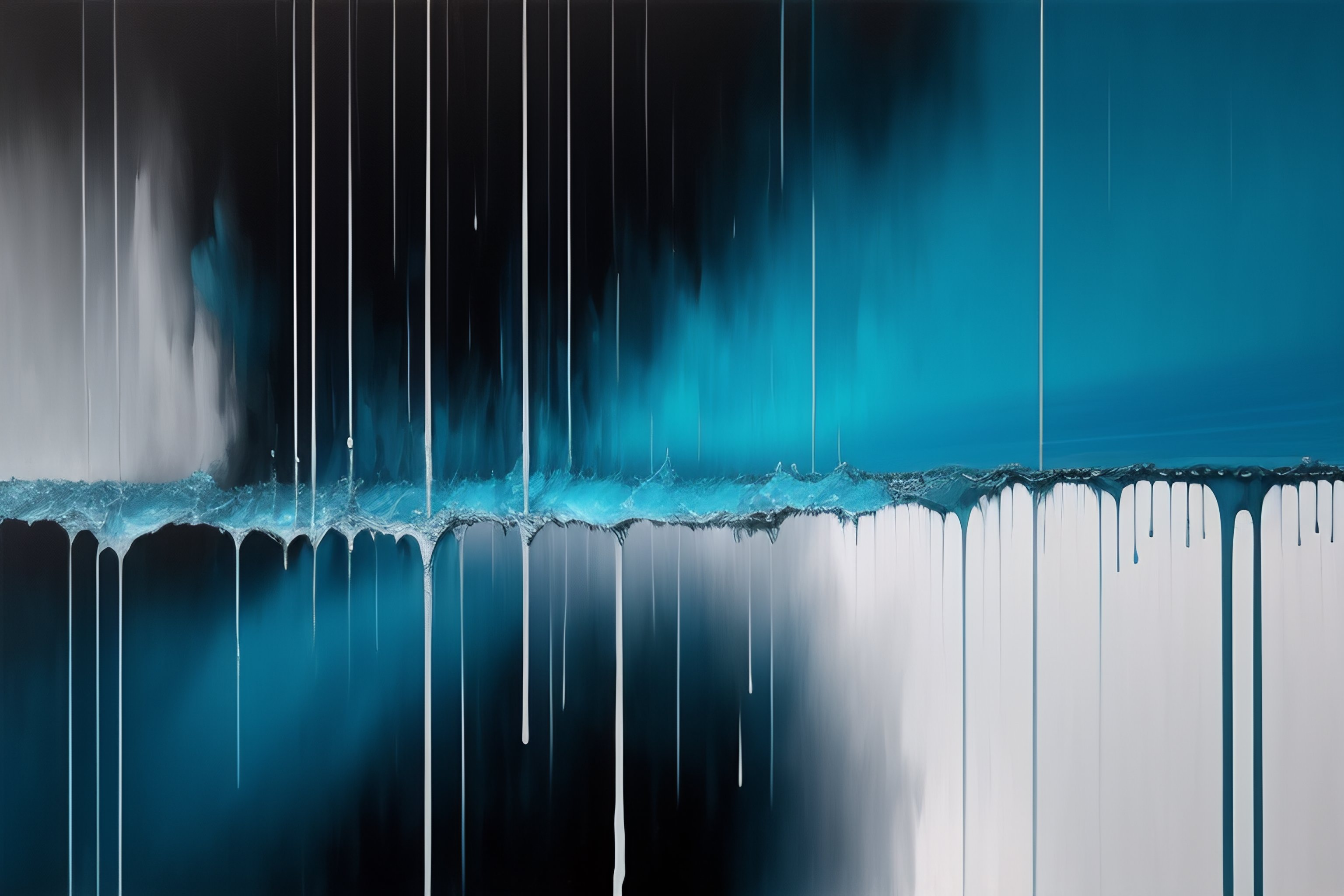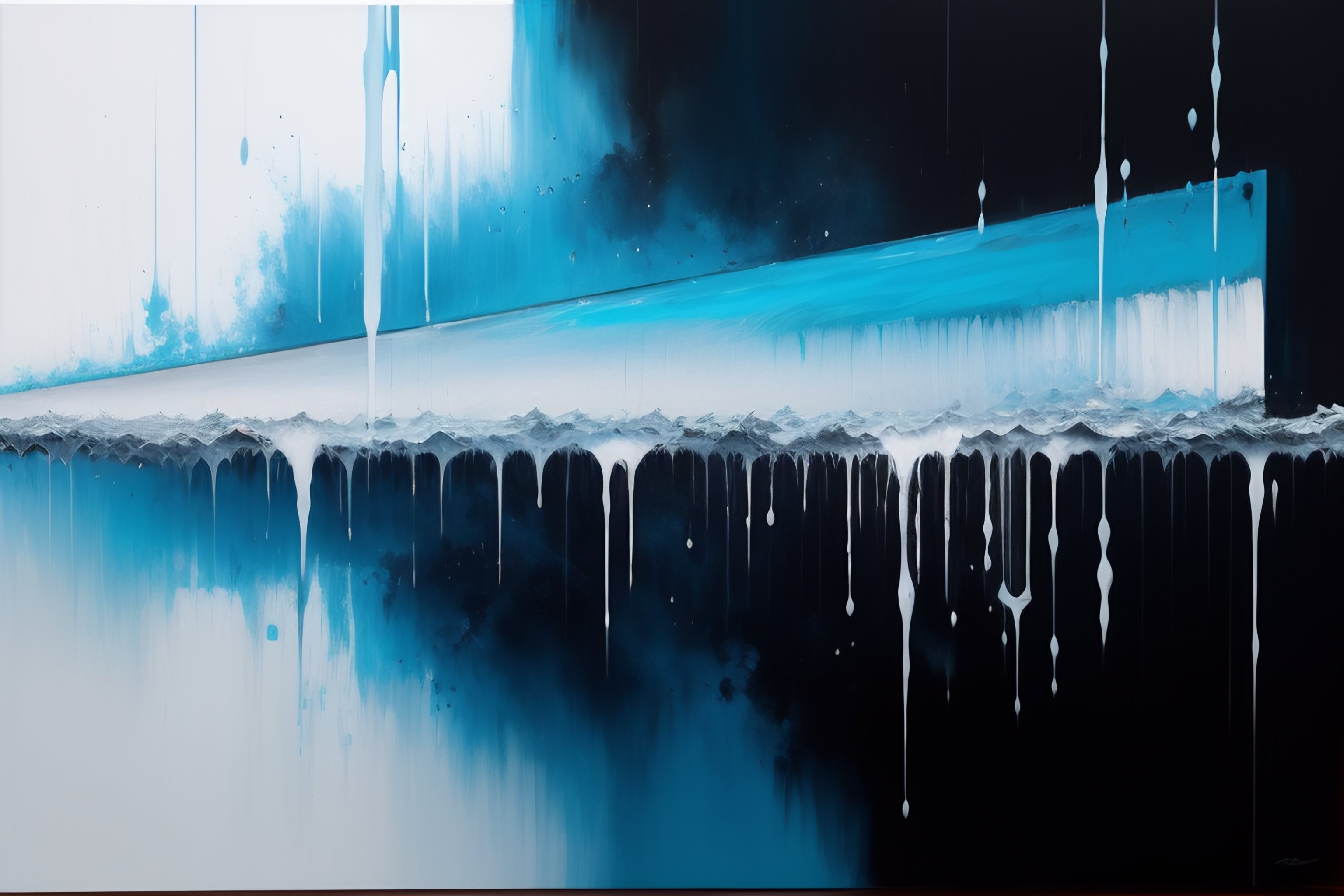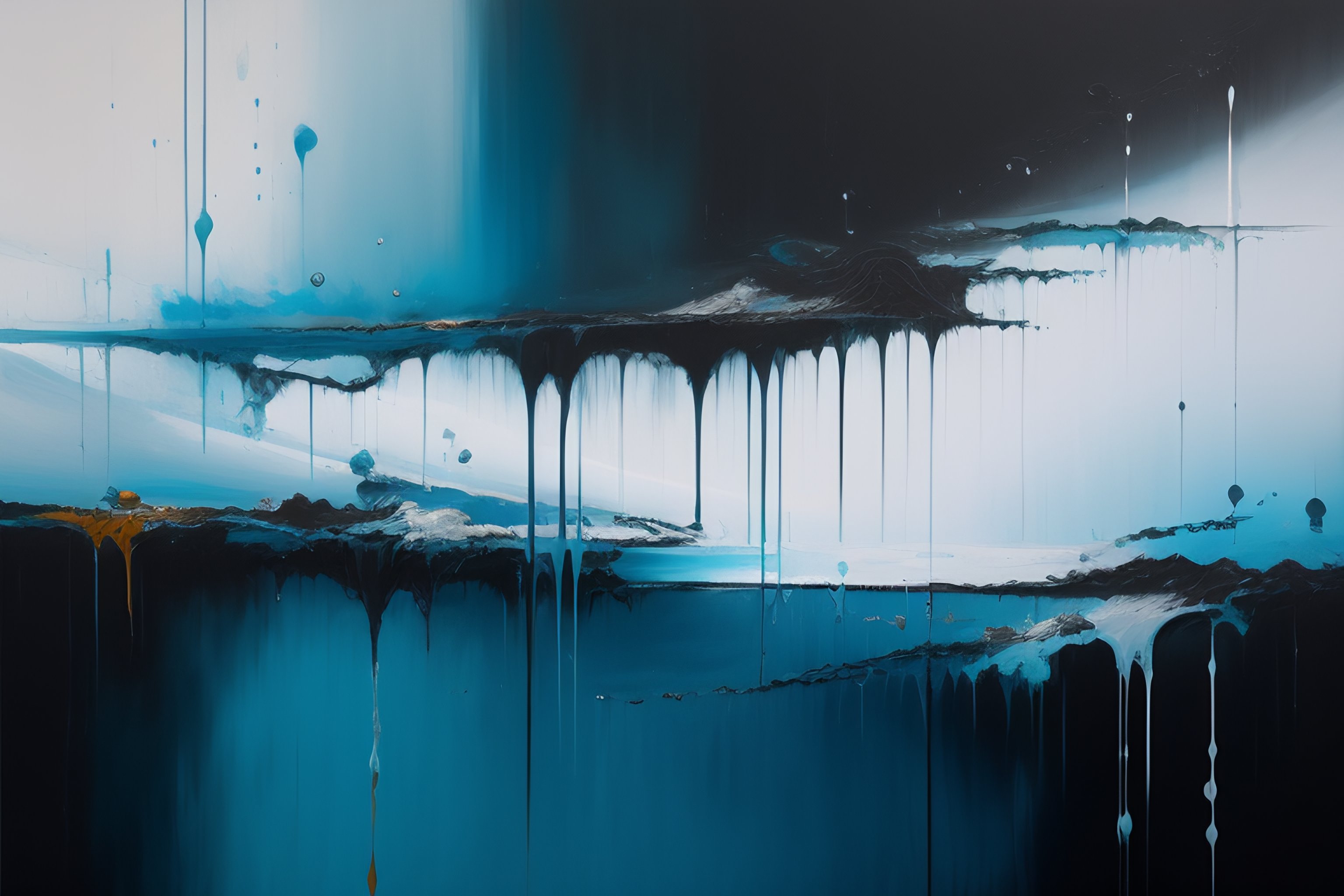 Abstract rectangles with ragged edges perspective oil paint drips infinite inception diffused splatter twisted lines grey blue grey white highlights tones