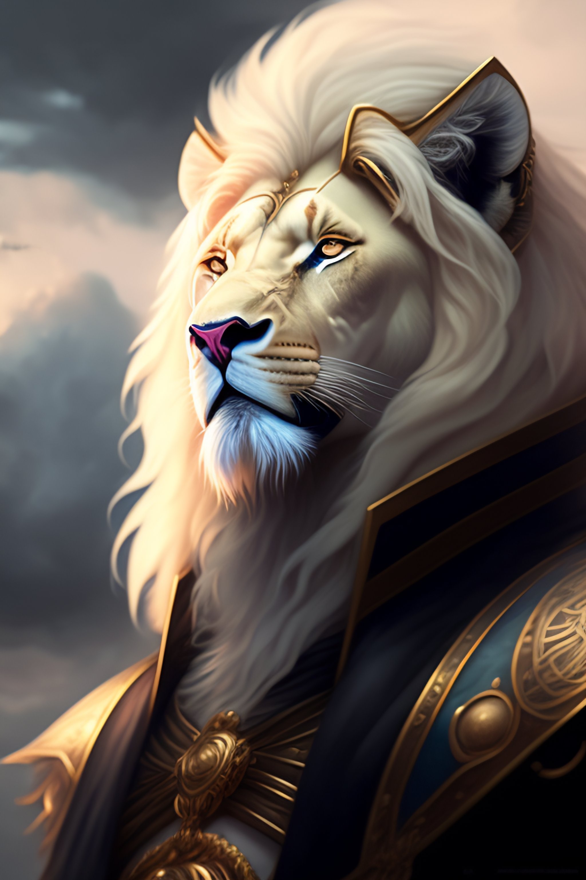 Aesthetic portrait commission of a albino muscular and attractive anthro lion as a greek steampunk god overlord with mane fur turning into industrial revolution smoke in the british clouds, fantasy art, hyperdetailed. character design by charlie bowater, ross tran, artgerm, and makoto shinkai, detailed, inked, western comic book art, 2021 award winning painting