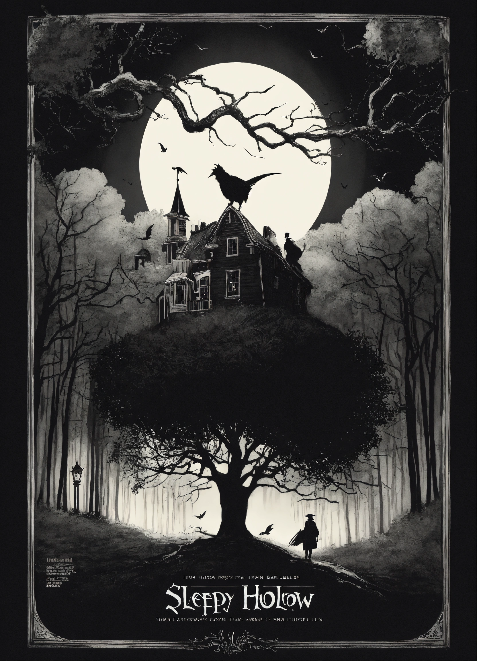 Comic poster design for containing tim burton blanco y negro sleepy hollow