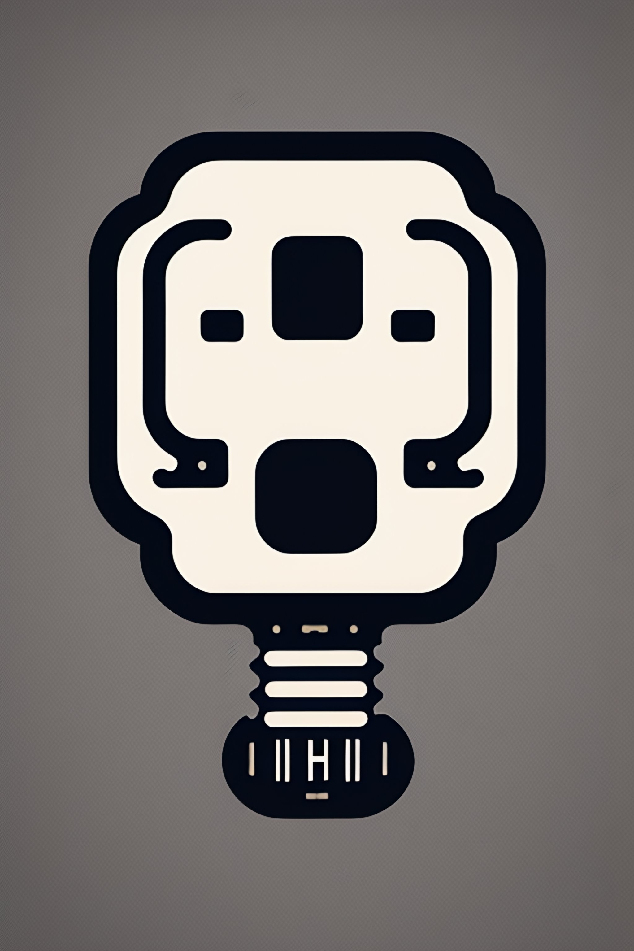 white and black logo icon of not realistic a cute ai "robot head" made of pcb and chip