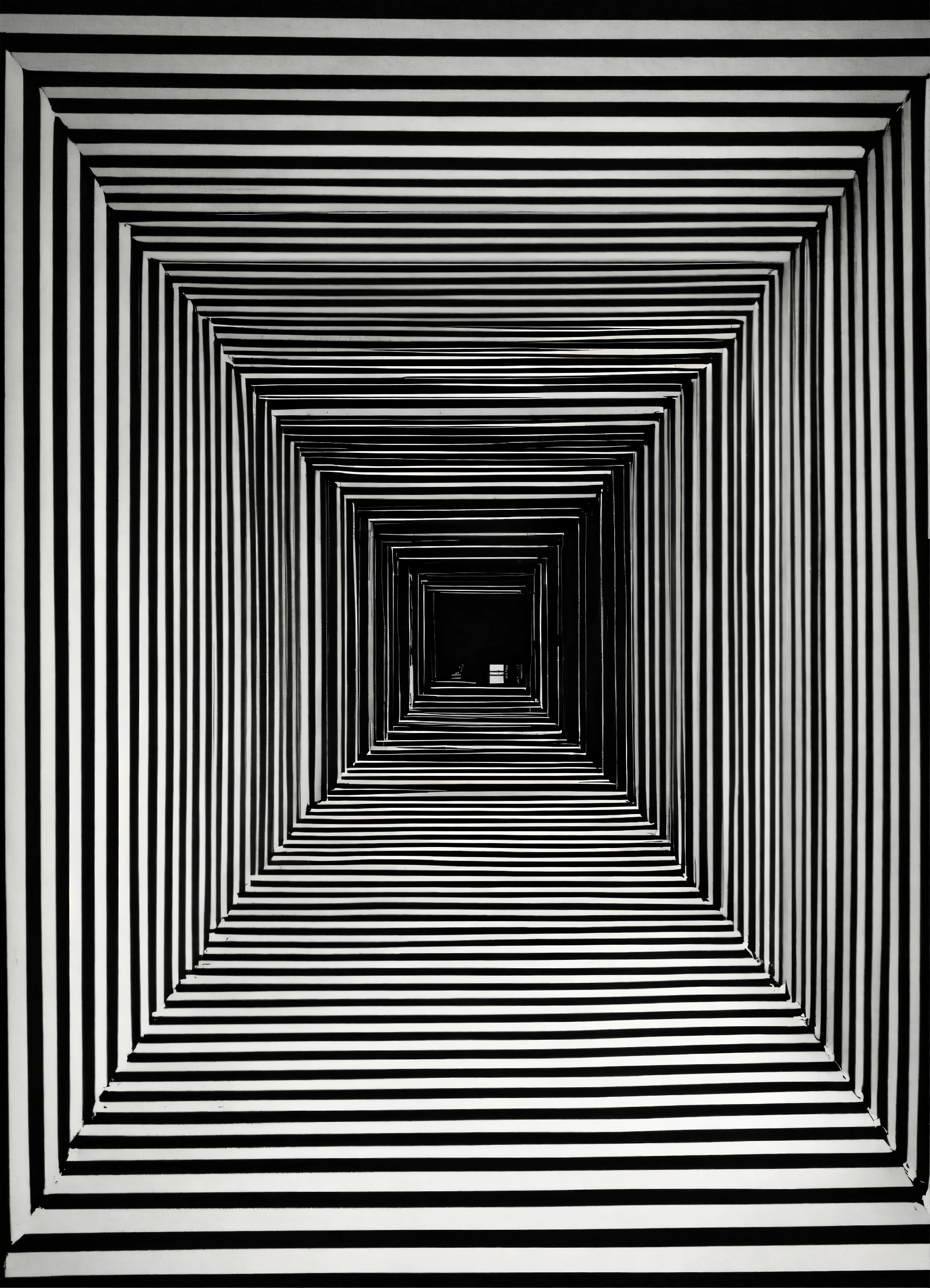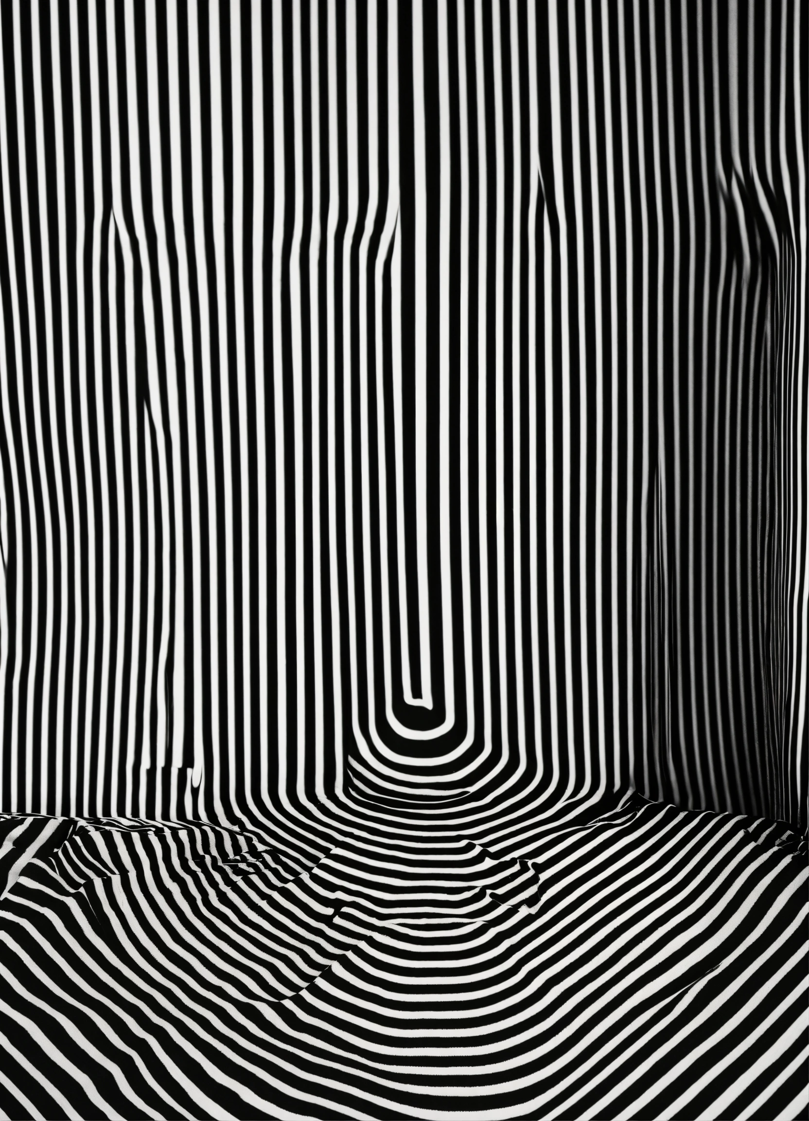 Exactly 15 black, straight and thin lines of 3 px width, that run from the top right corner of the image to the bottom center of the image. white background.