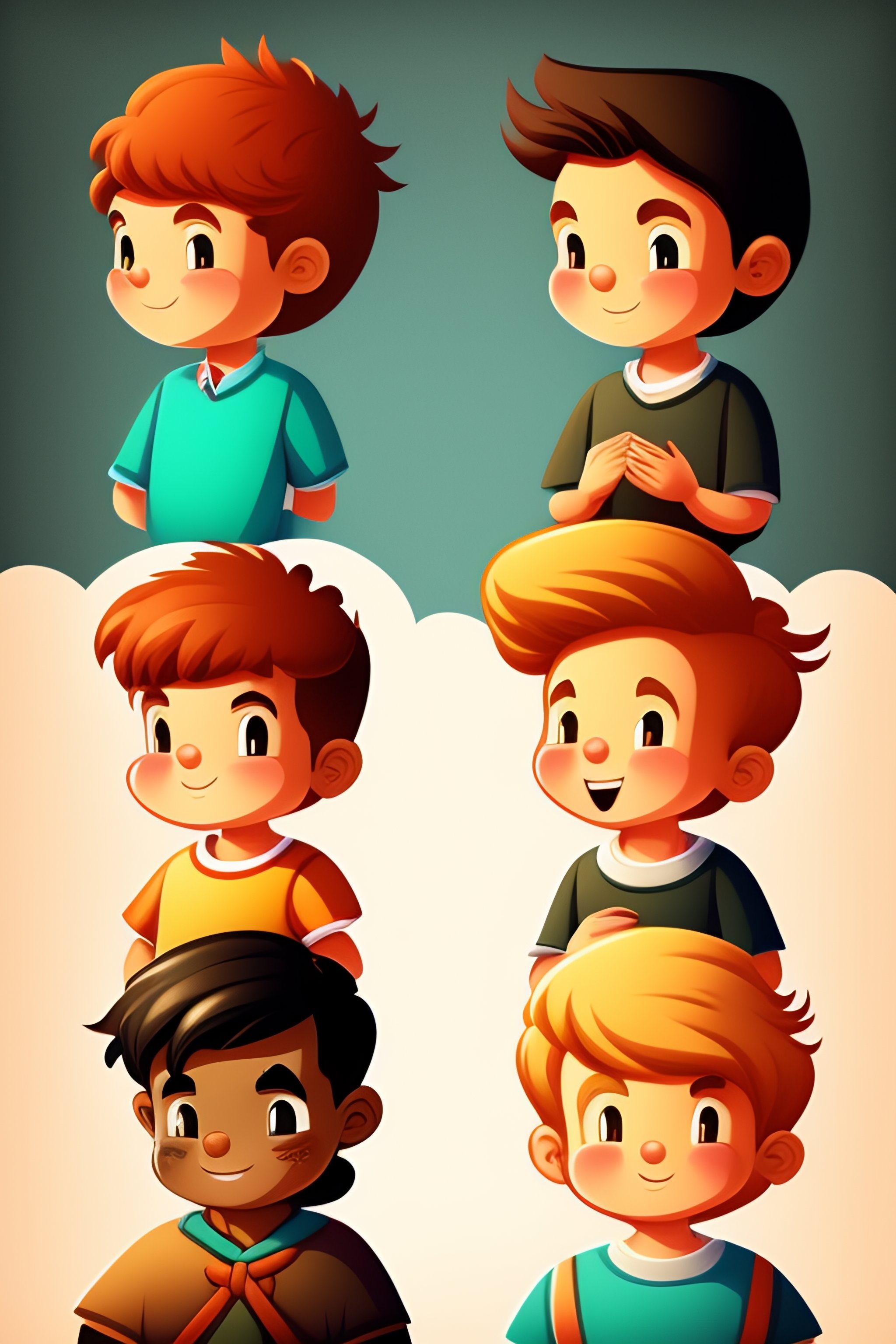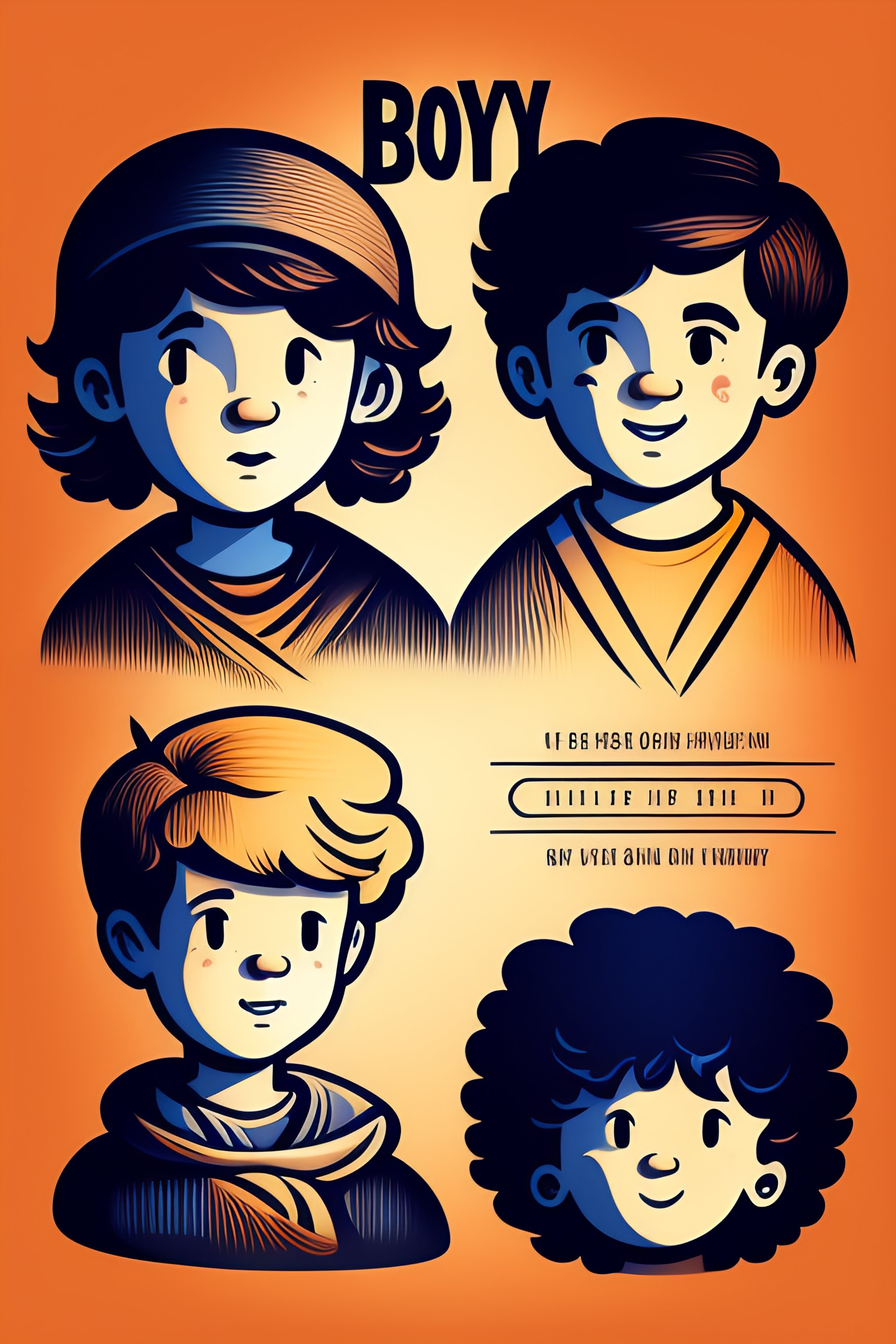 Boy character set freehand drawing illustration in different poses and expressions holding the bible