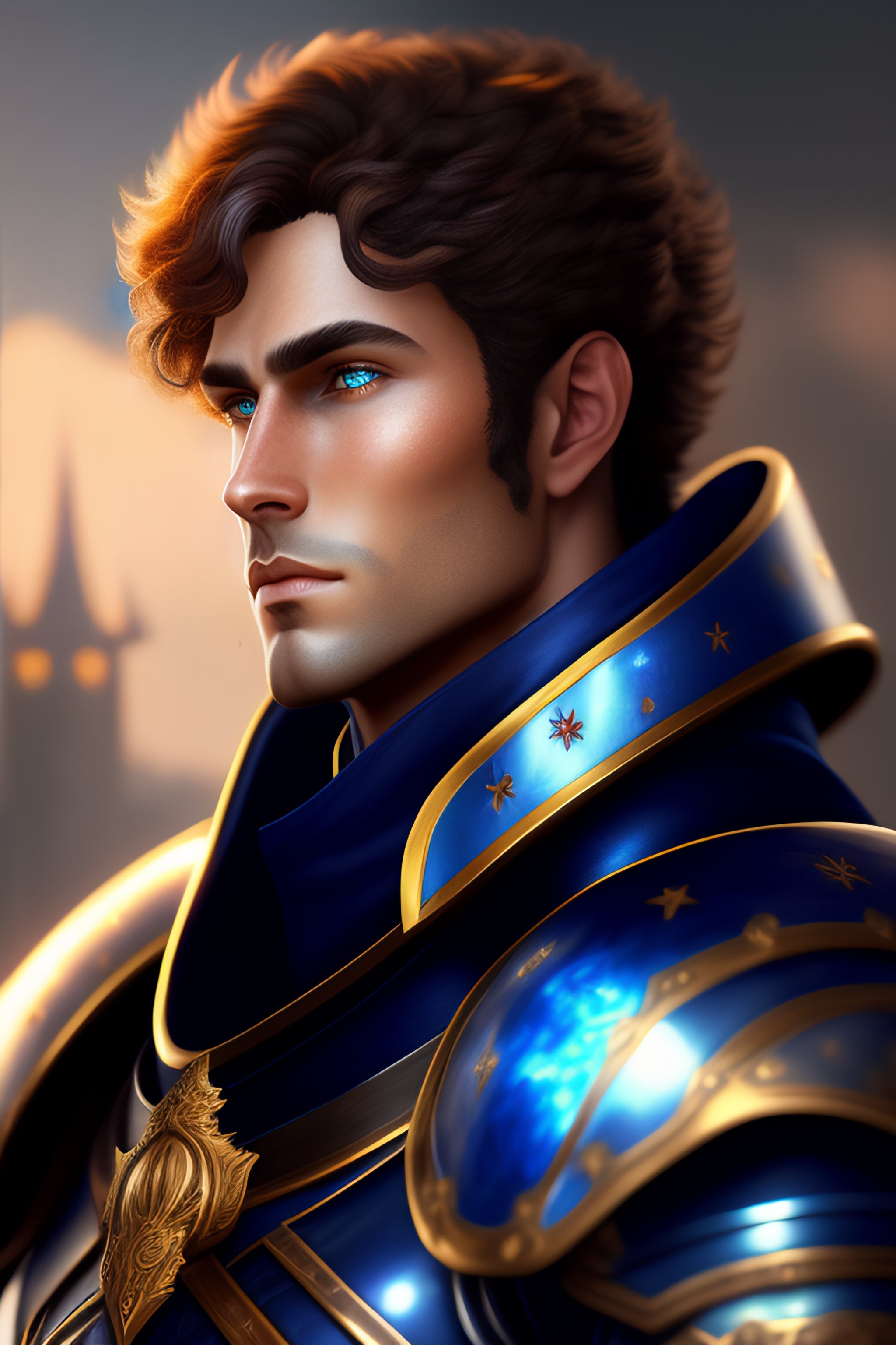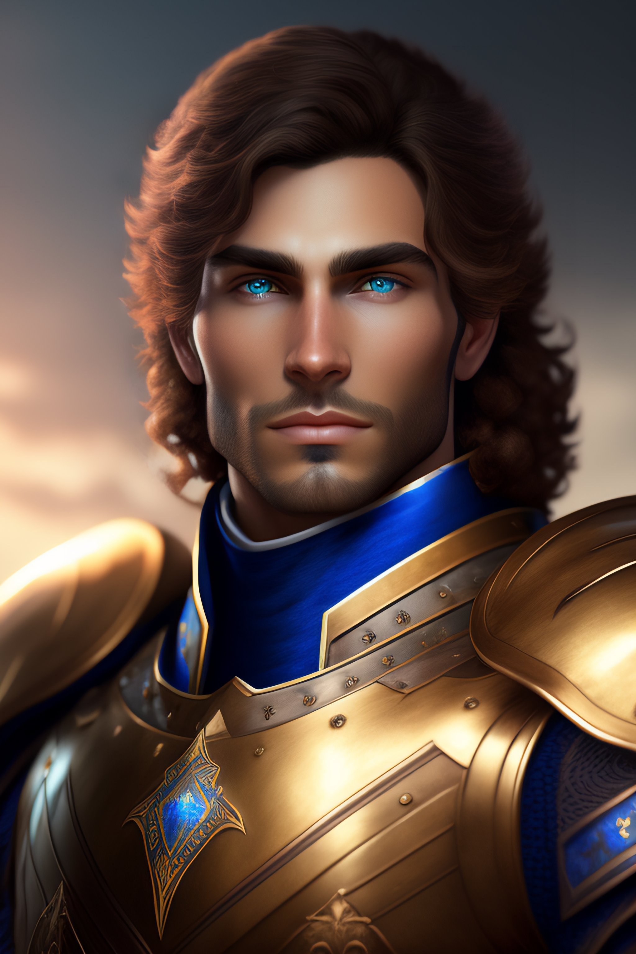 A portrait of a young human male paladin with scruffy brown hair and blue eyes with soft looking face wearing armor with a holy symbol of a moon, masterpiece, best quality, ultra detailed, highly detailed, artstation, illustration, sylvari portrait, 8 k quality, art by partick woodroof