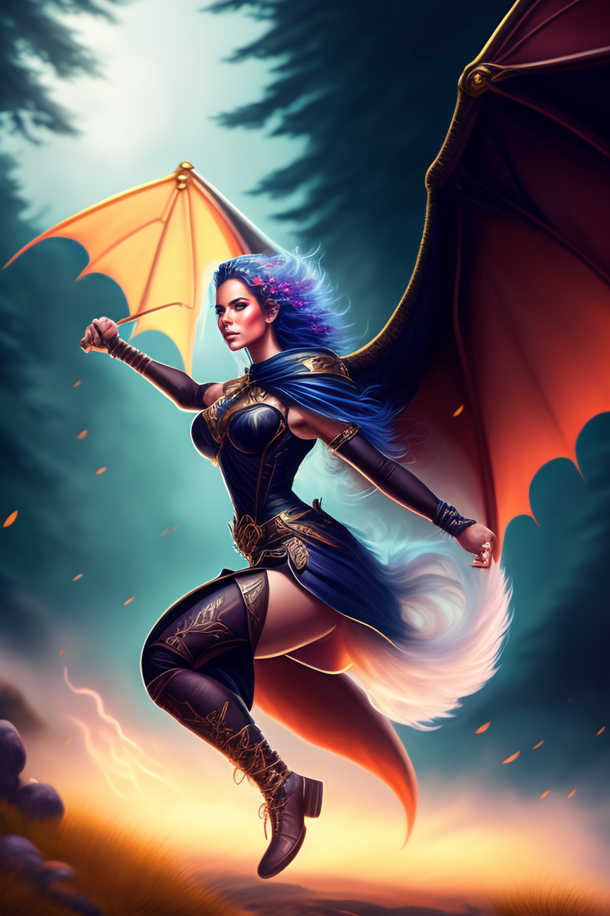 Fantasy portrait, freedom, running, nature, breaking free, escape, custom character art, animals, dragons, dnd illustration, dnd art, digital drawing, character drawing