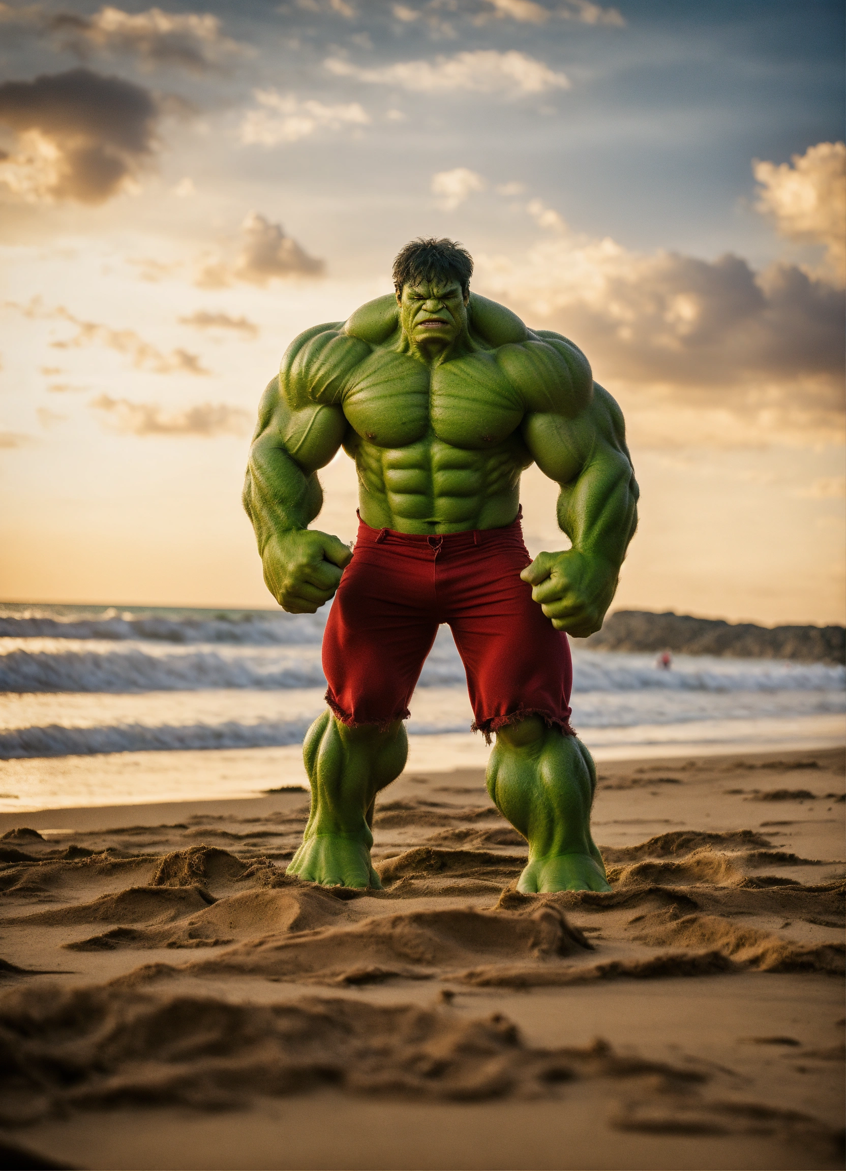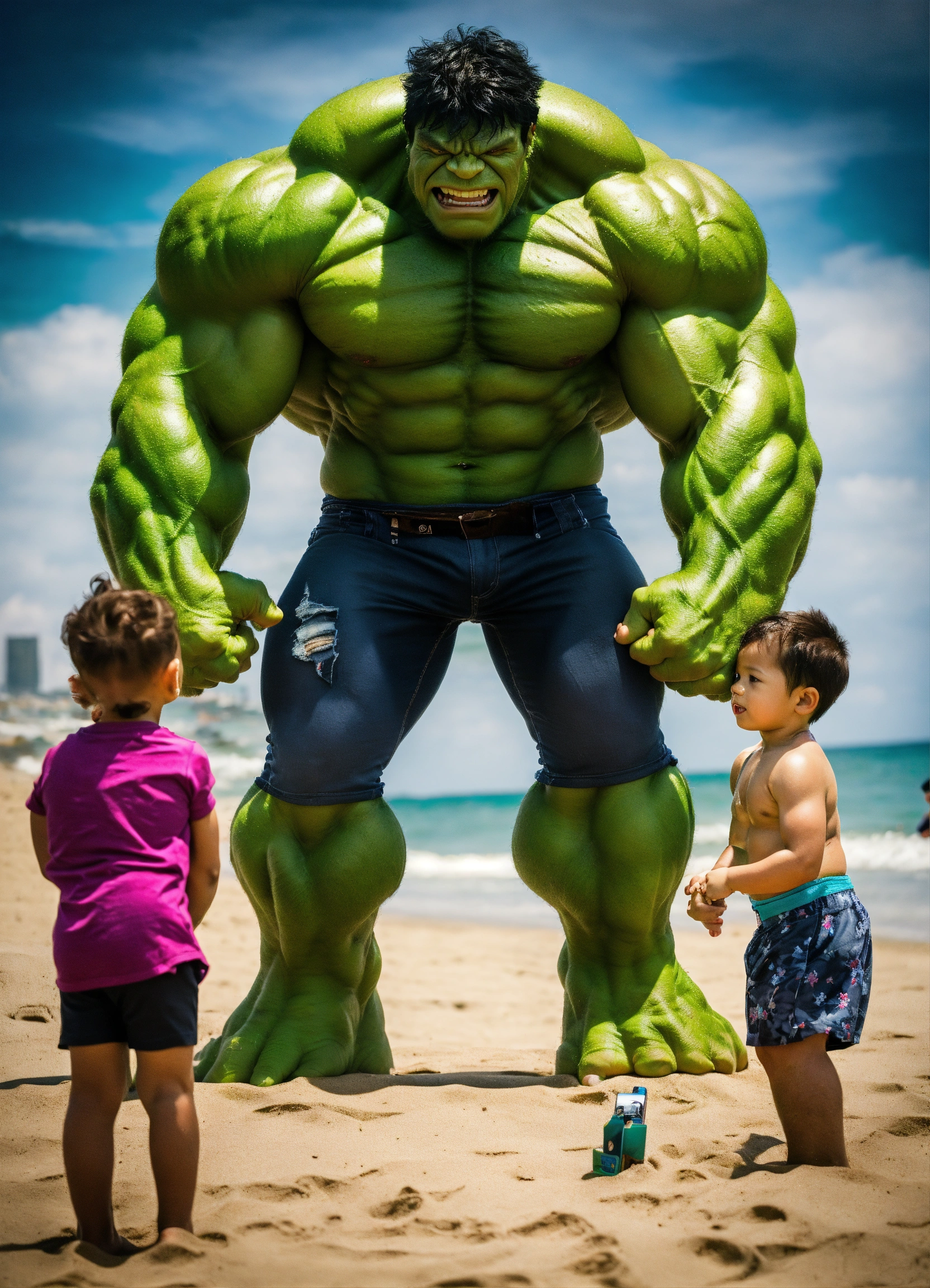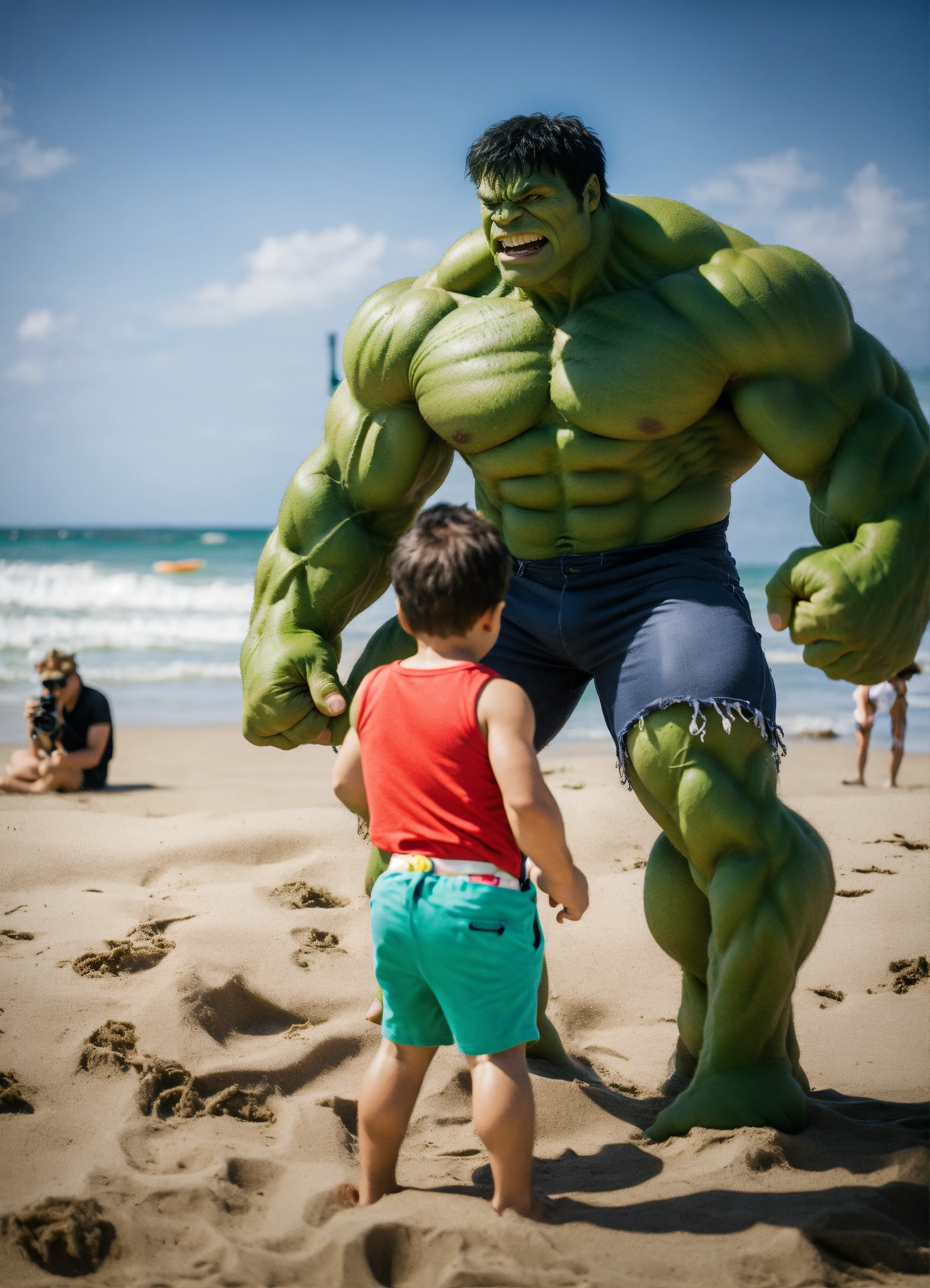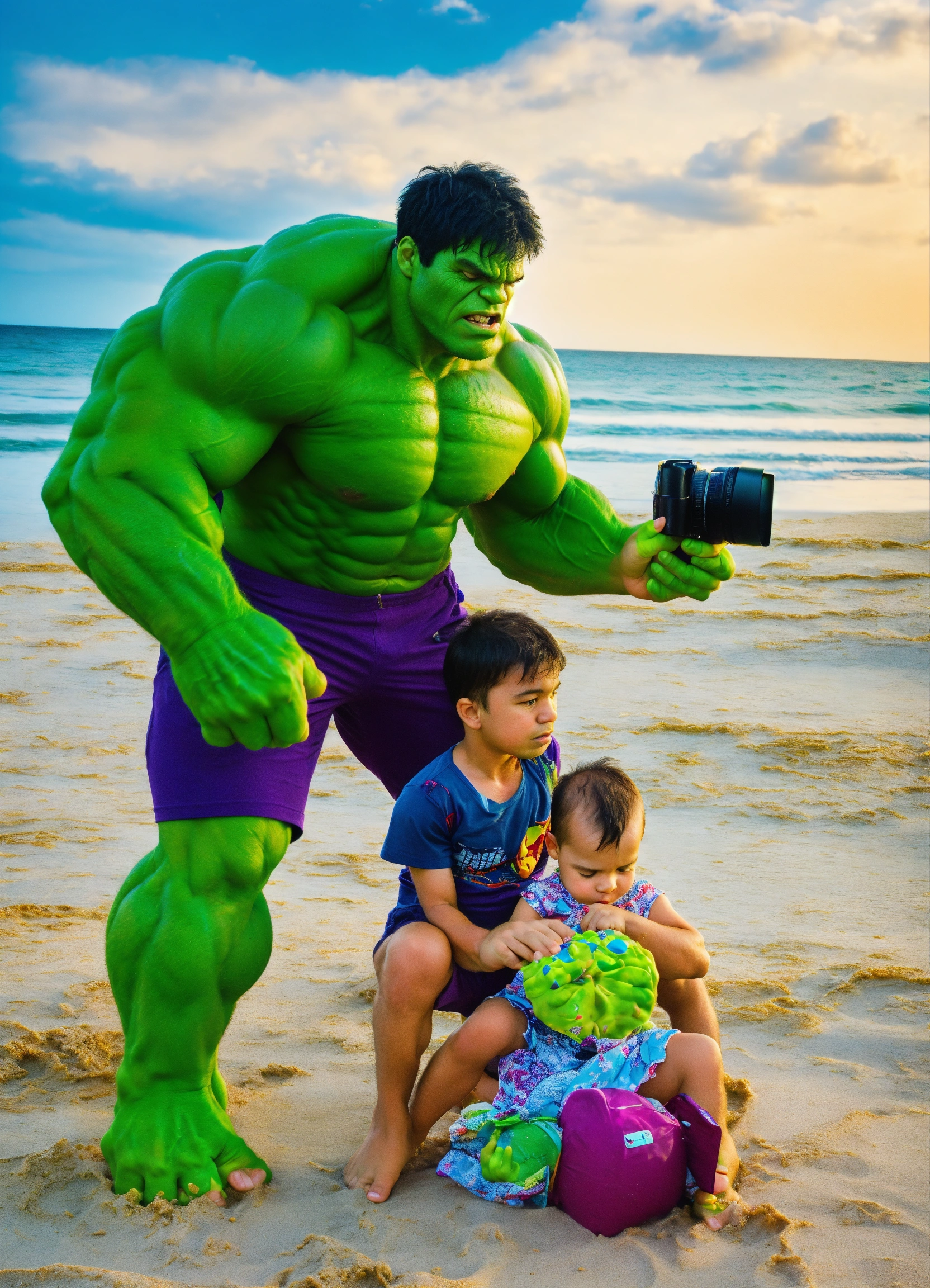 Hulk taking photos on the beach with family