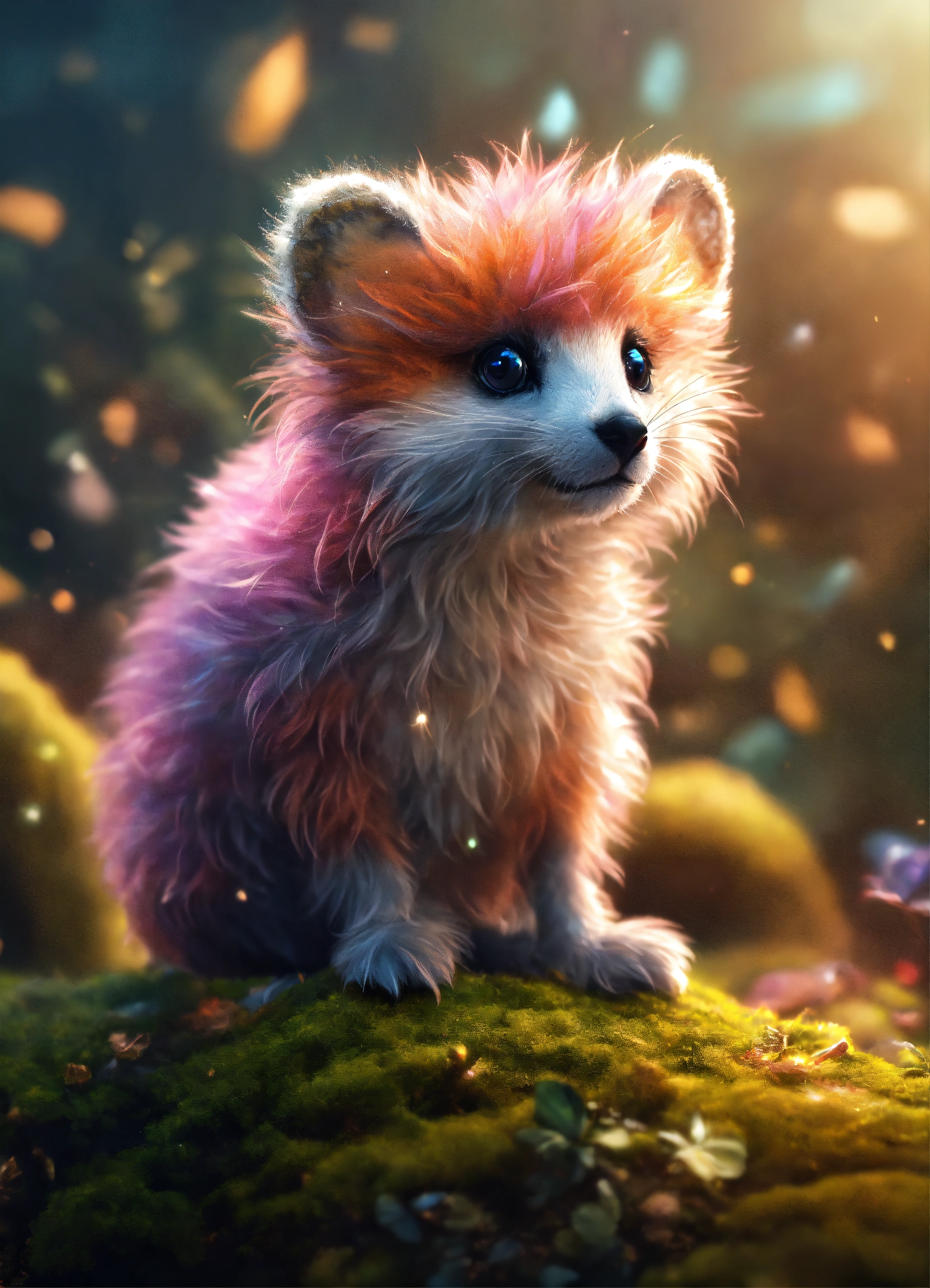 Ultra beautiful fuzzy little mystical creature in a beautiful mystical world perfect clarity photorealistic high definition perfect resolution