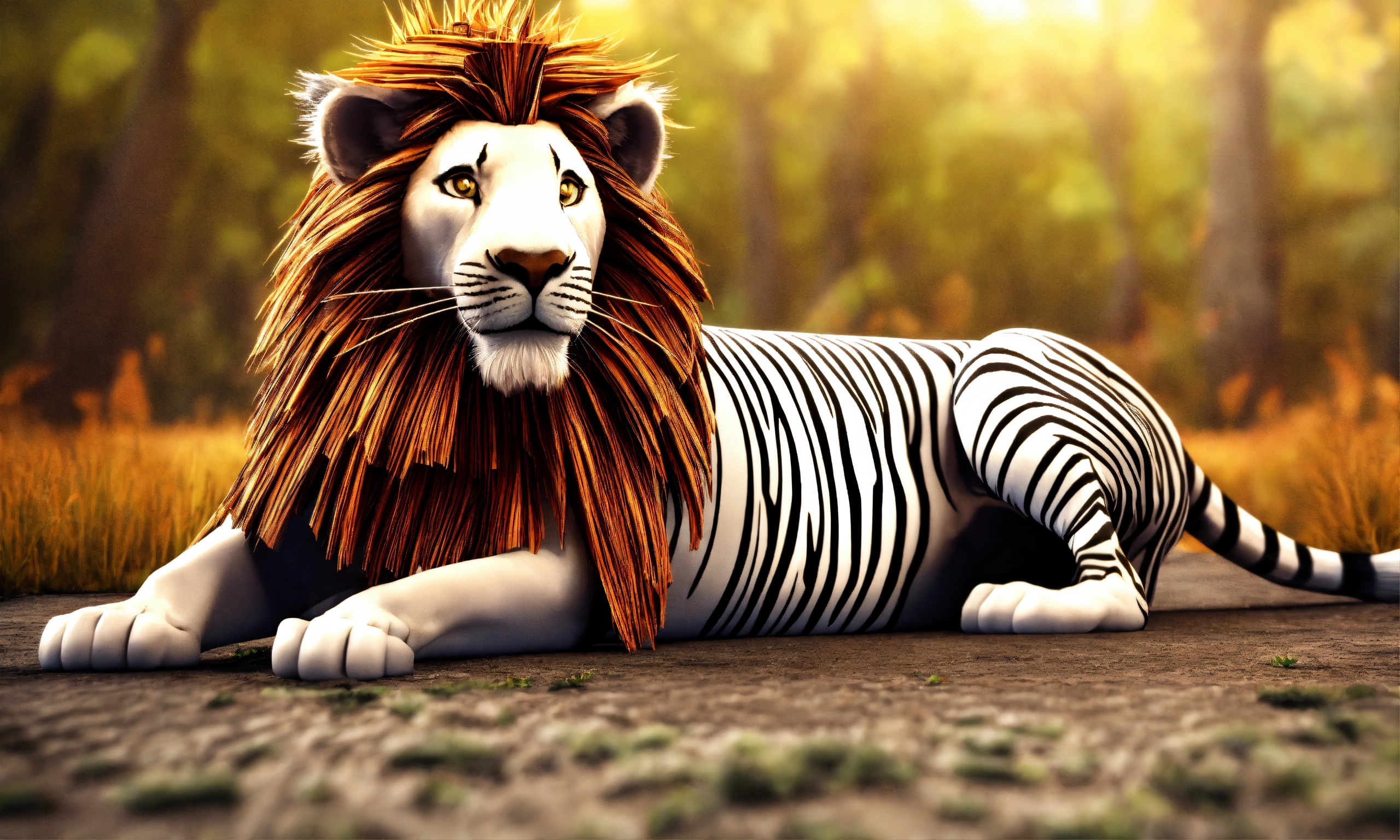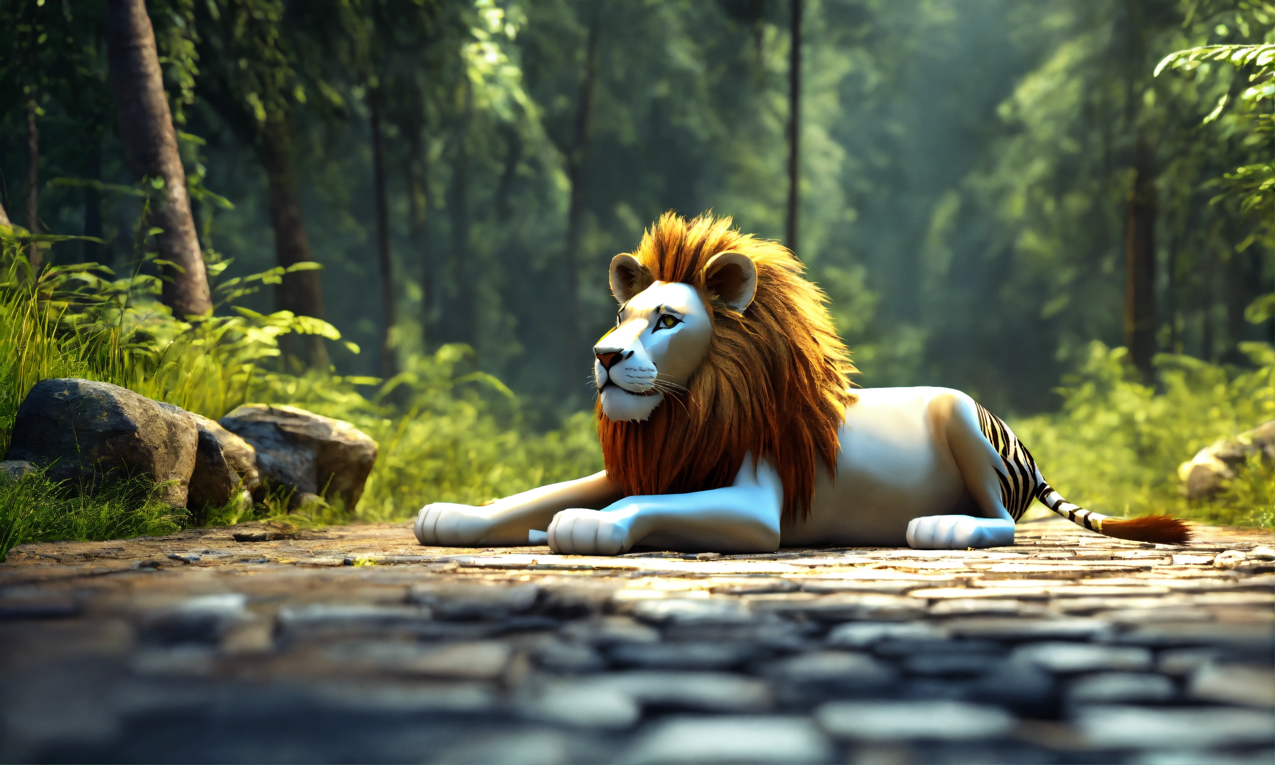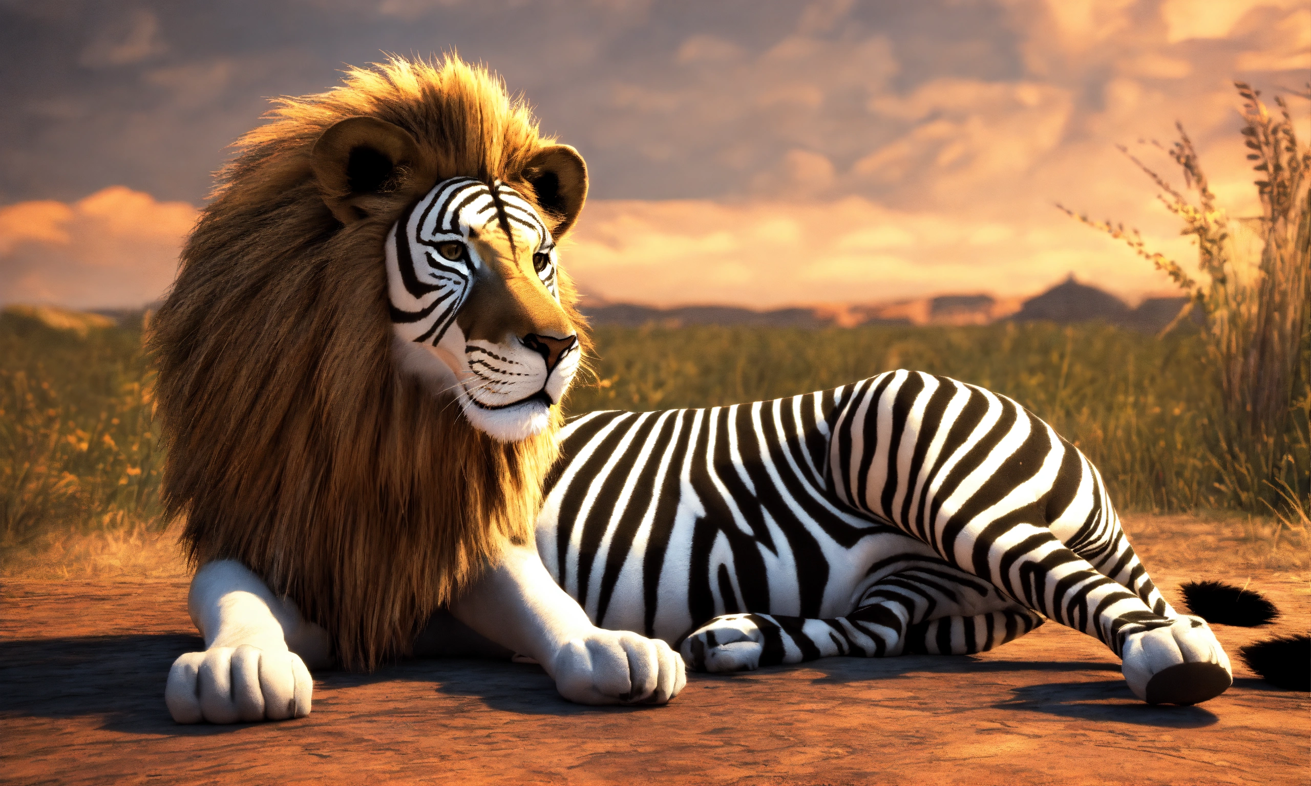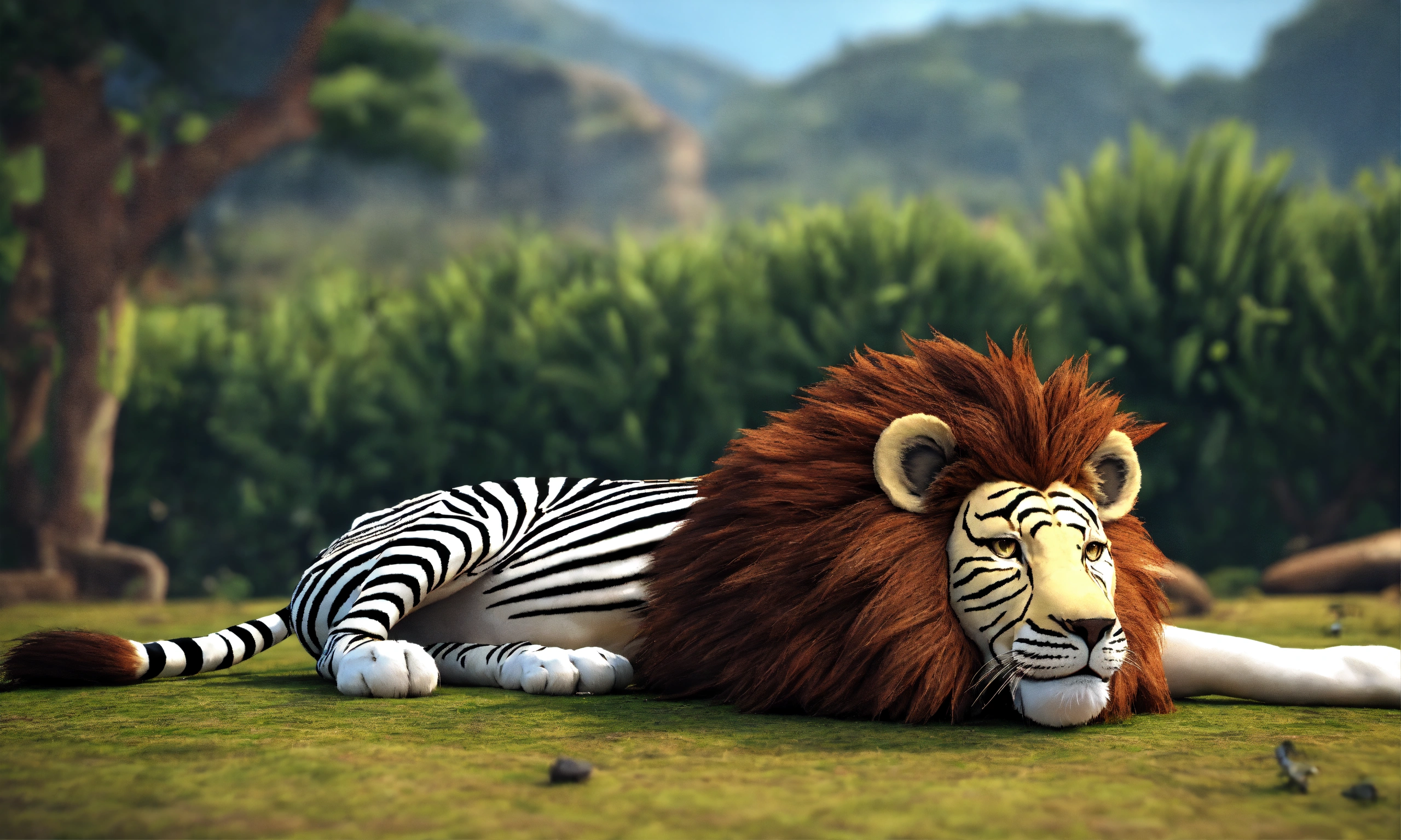 3d animation style lion caught lying down zebra