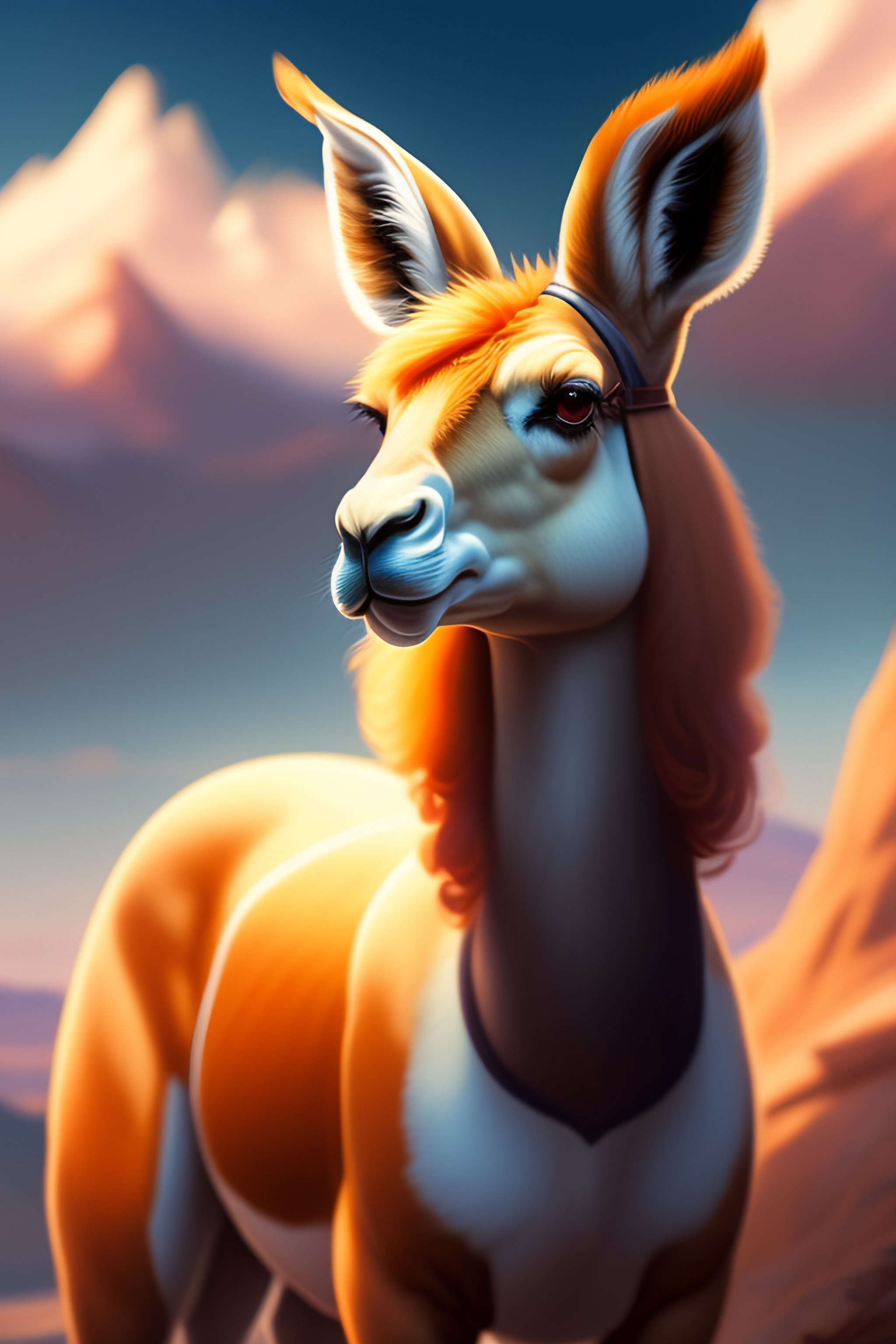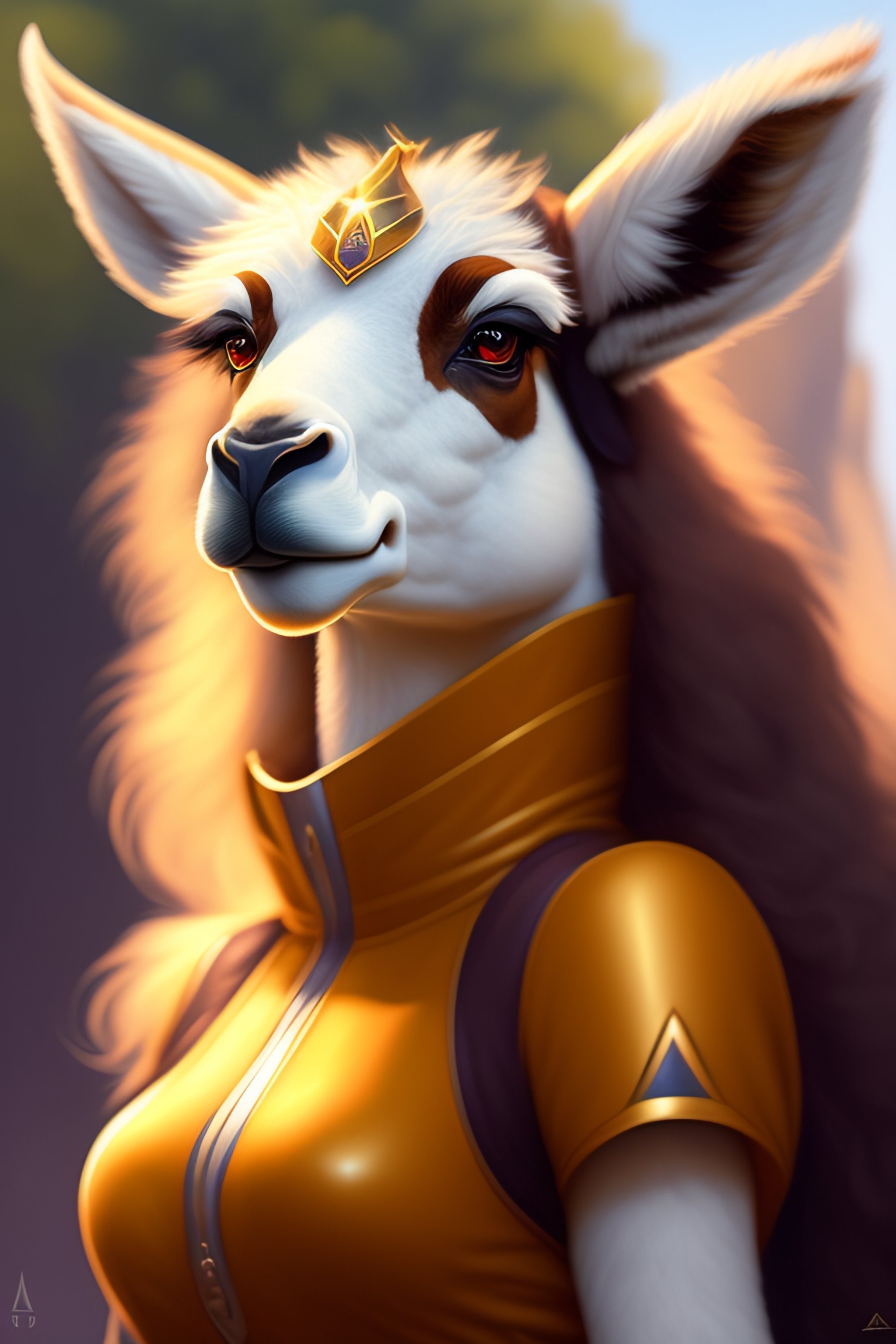 Female anthropomorphic llama in pokémon outfit, realistic portrait, highly detailed, digital painting, artstation, concept art, smooth, sharp focus, illustration, cinematic lighting, art by artgerm and greg rutkowski and alphonse mucha and boris vallejo and frank frazetta landscape