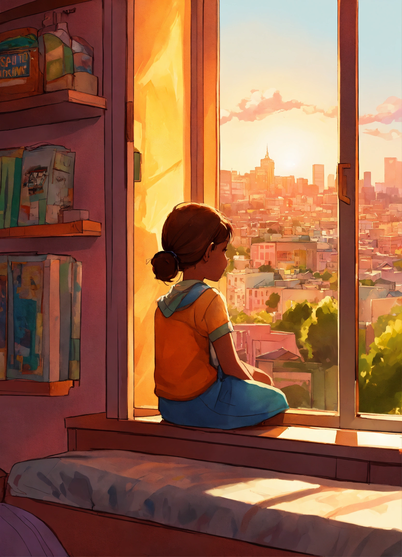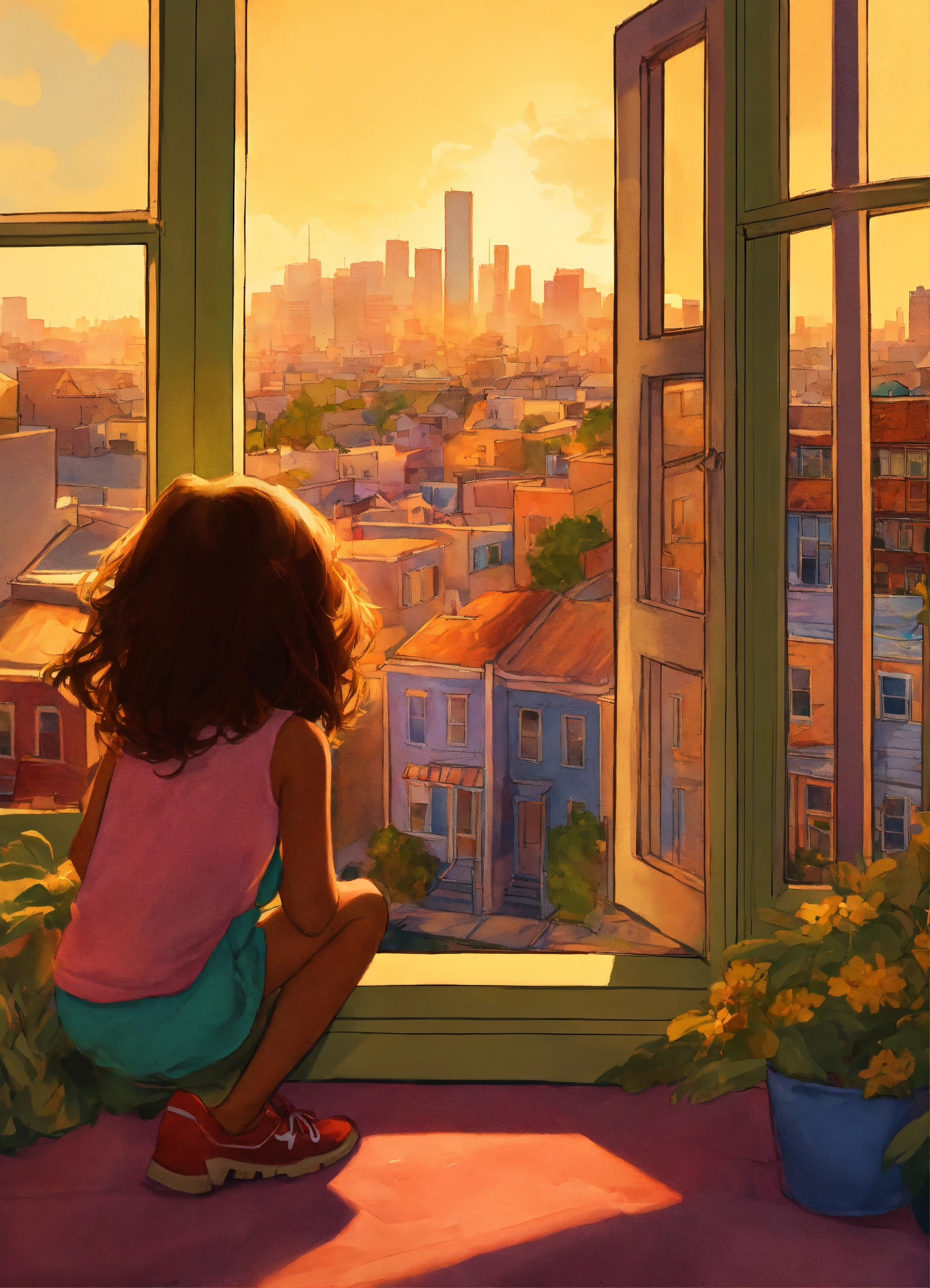 Pixar animation of 9 year old mia, pixar style cartoon. chapter 1 discovering the issue page 1 (image sunlight breaking through the city skyline.) in the heart of the colorful mission district, mia welcomed the morning with a sense of excitement. the sun painted the city's skyline with warm hues, casting a golden glow over the lively streets. it was a new day filled with possibilities. page 2 (image mia by her bedroom window, gazing at the bustling streets below.) from her bedroom window, mia's view stretched far and wide, a vibrant tapestry of life. memories of her grandmother's stories filled her mind, words like "resilient" and "stature" etching themselves into her thoughts. they felt like treasures waiting to be uncovered.