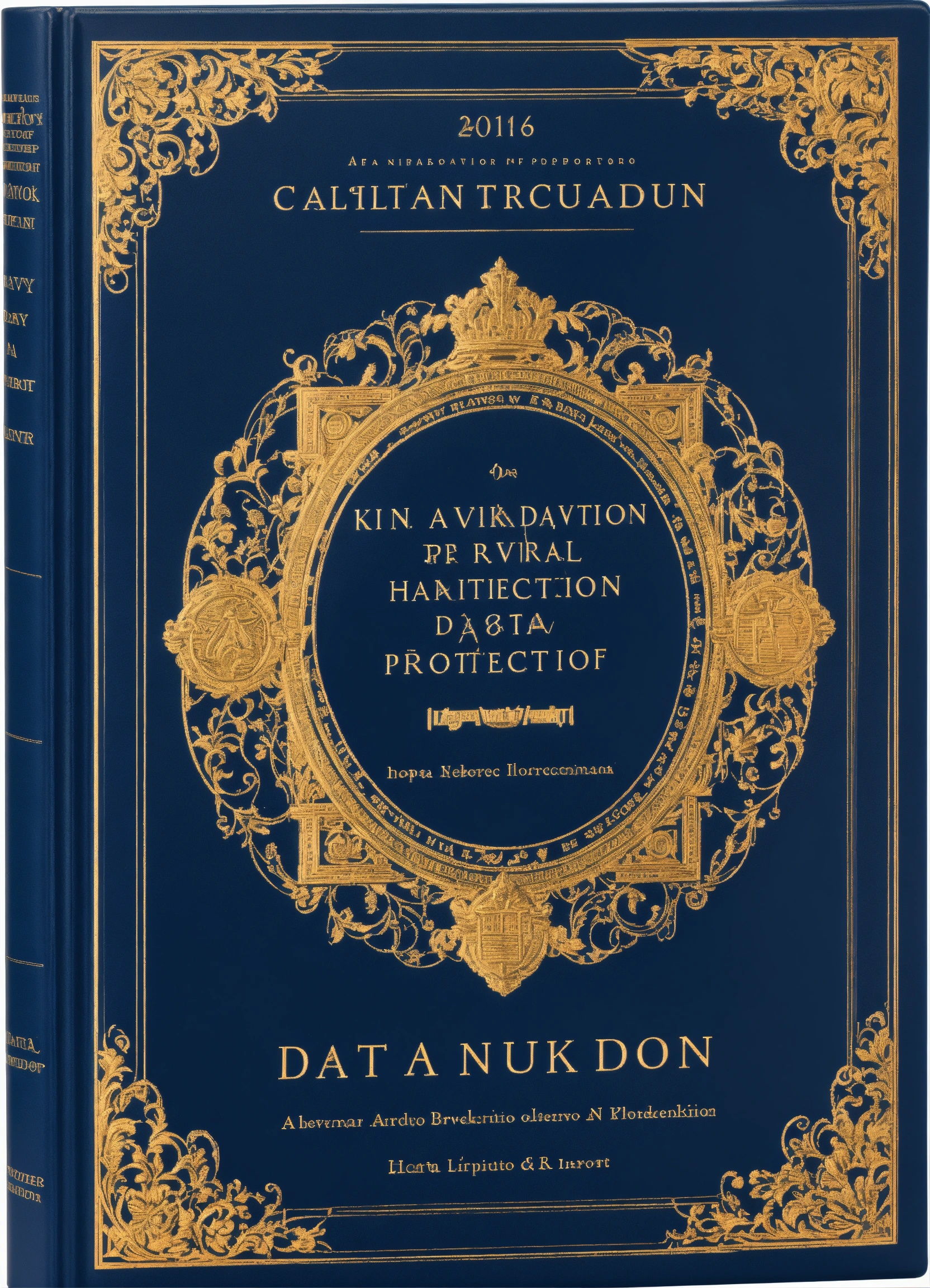 A modern navy blue hardcover for a legal handbook on data protection