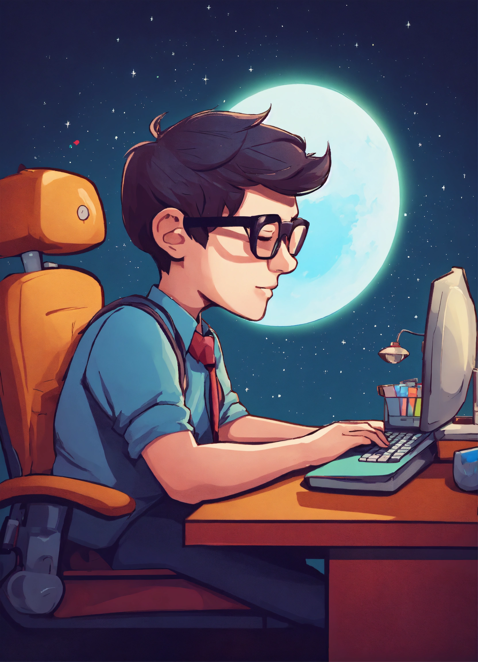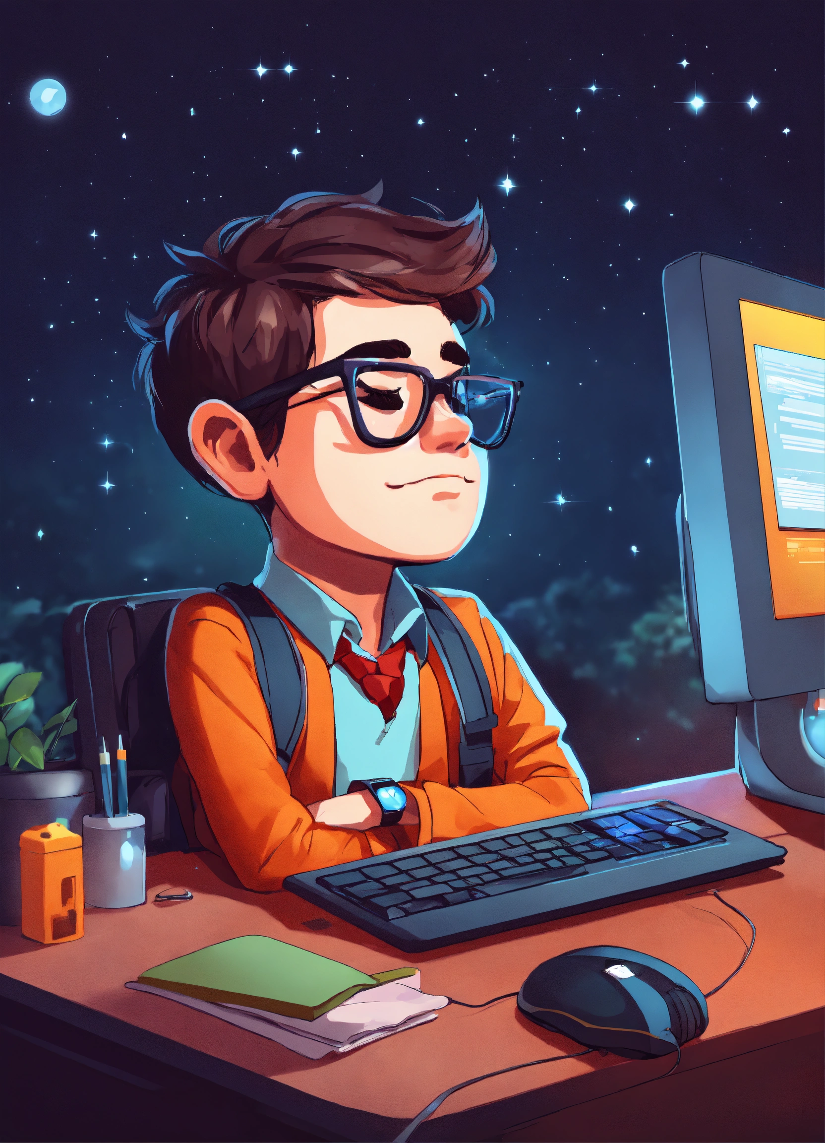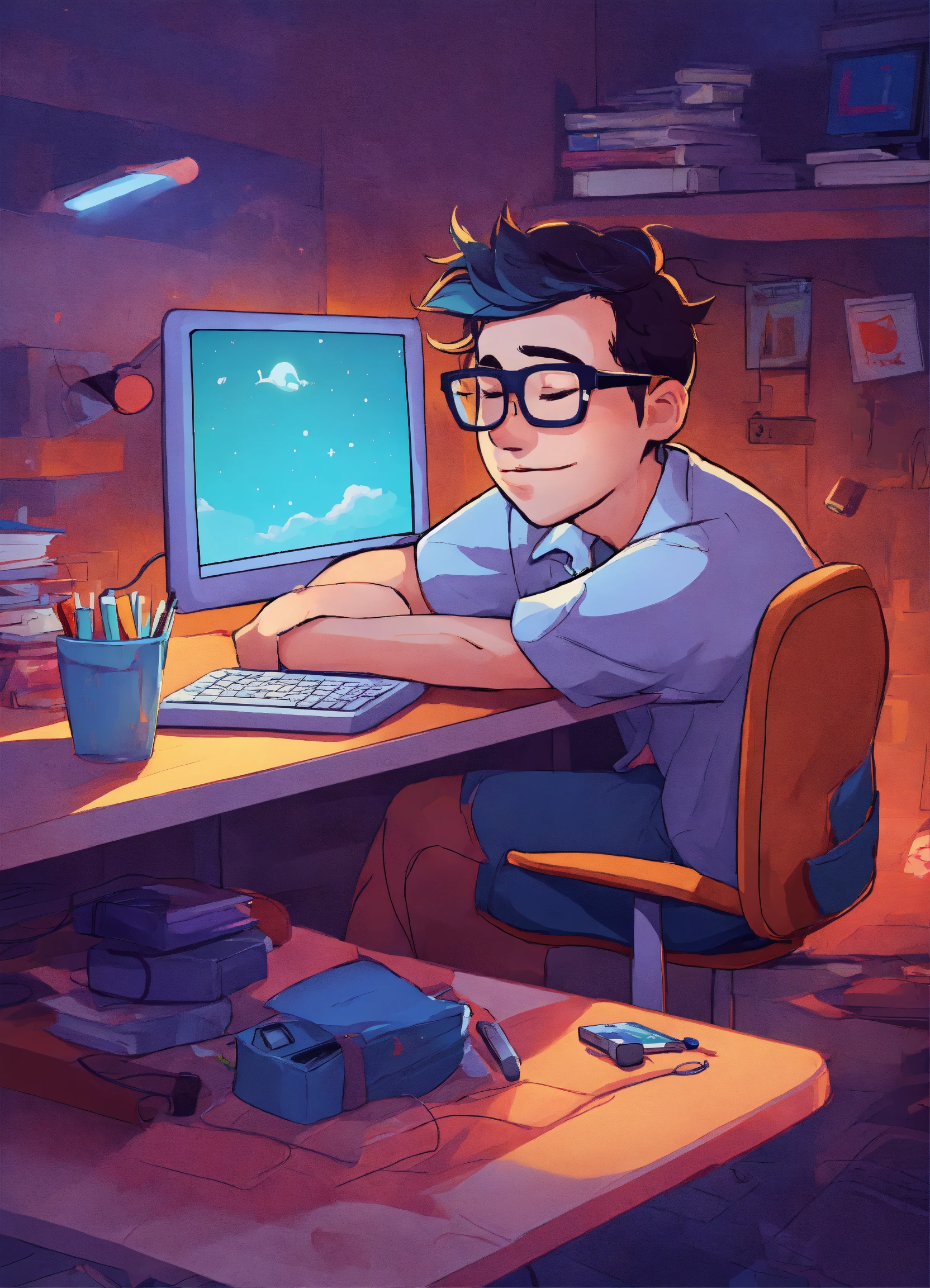 A cute nerd sleeping at a computer desk