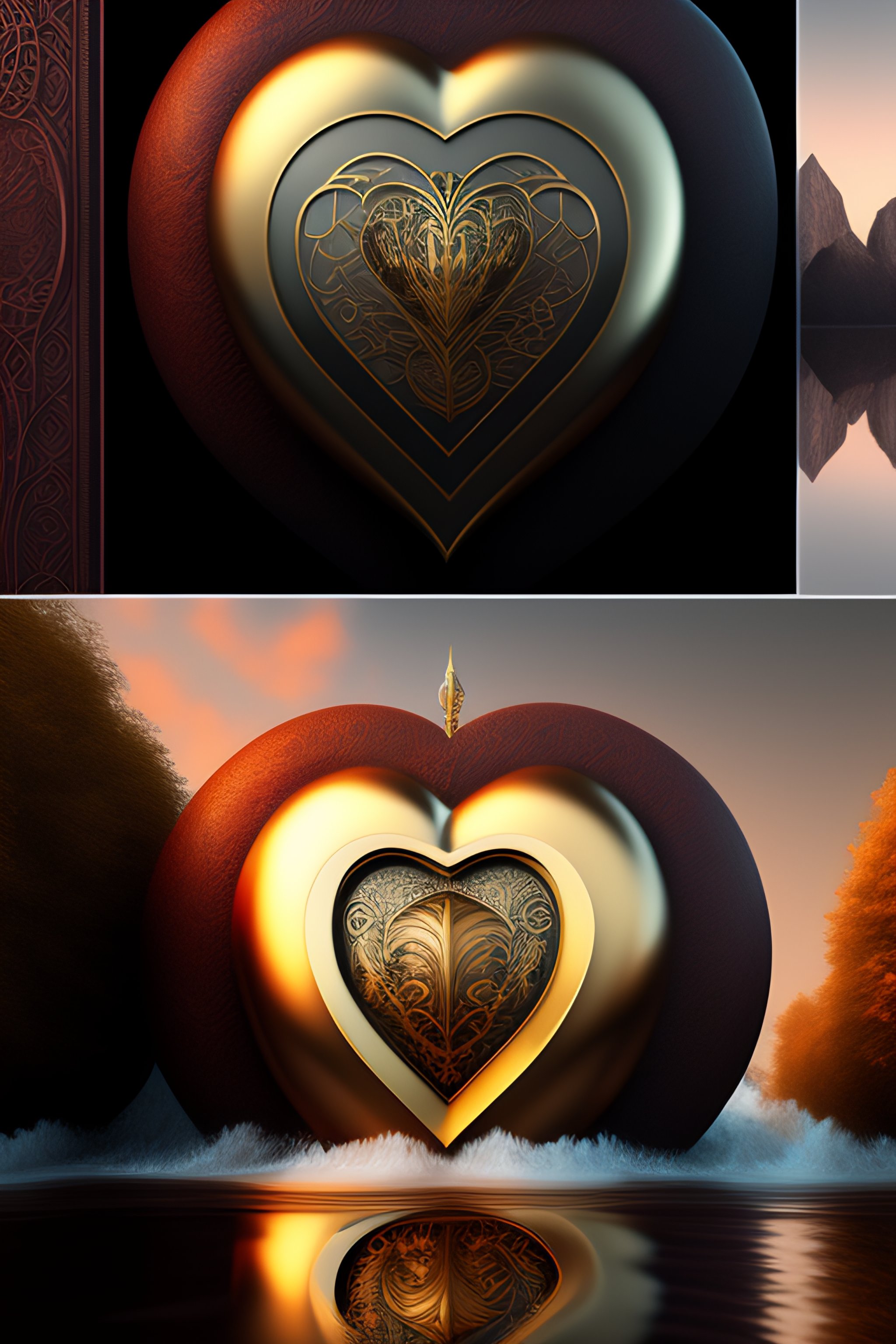 Digital image of a heart being destroyed by a flood using v-ray and the art nouveau style. heart characteristics: a realistic and detailed appearance, with elements such as cracked and broken pieces. setting characteristics: a chaotic and destructive atmosphere, with elements such as rushing water, debris, and destruction. creation details: high-quality camera, artificial lighting to enhance the realistic and immersive atmosphere, materials and textures based on real references of heart destruction and the art nouveau style. references: artists and designers specializing in creating digital art of heart destruction with an art nouveau style, such as grzegorz wronkowski, social media platforms like instagram and pinterest for inspiration and reference images. --style 4b --chaos 0 --q 2 --stylize 1000 --v 4 --style 4b --chaos 0 --q 2 --stylize 1000