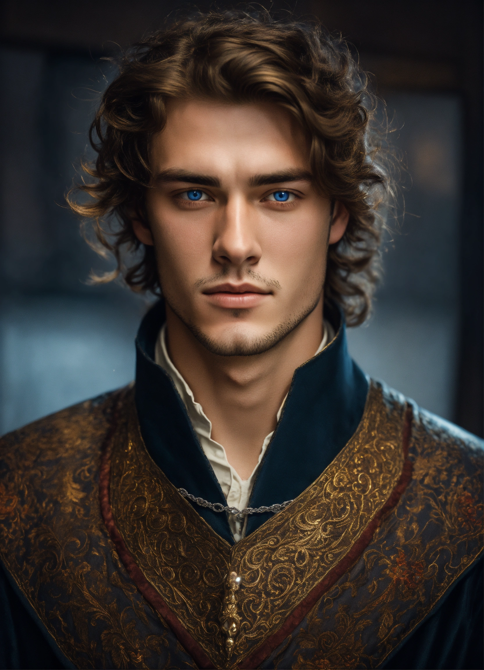 Very handsome young man with glowing silver-colored eyes
