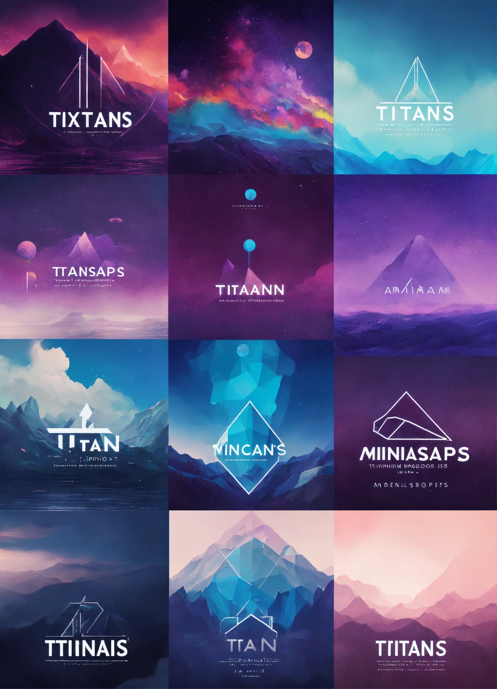 Logo name titansmindscapes style modern, abstract, imaginative color scheme vibrant blend of blues, purples, and silvers or grays. aim for calming and creative vibes. imagery titan element abstract or stylized representation of a titan. visualize a mythical, powerful figure but rendered in a simplified, modern manner. mindscapes element incorporate abstract shapes or surreal landscape elements to represent ‘mindscapes’. think dreamy, imaginative visuals that suggest different realities and perspectives. typography utilize a clean, modern, and readable sans-serif font. avoid overly decorative or complex fonts. requirements the logo should be scalable (maintain clarity and impact at various sizes), and also look effective in both color and black and white versions.