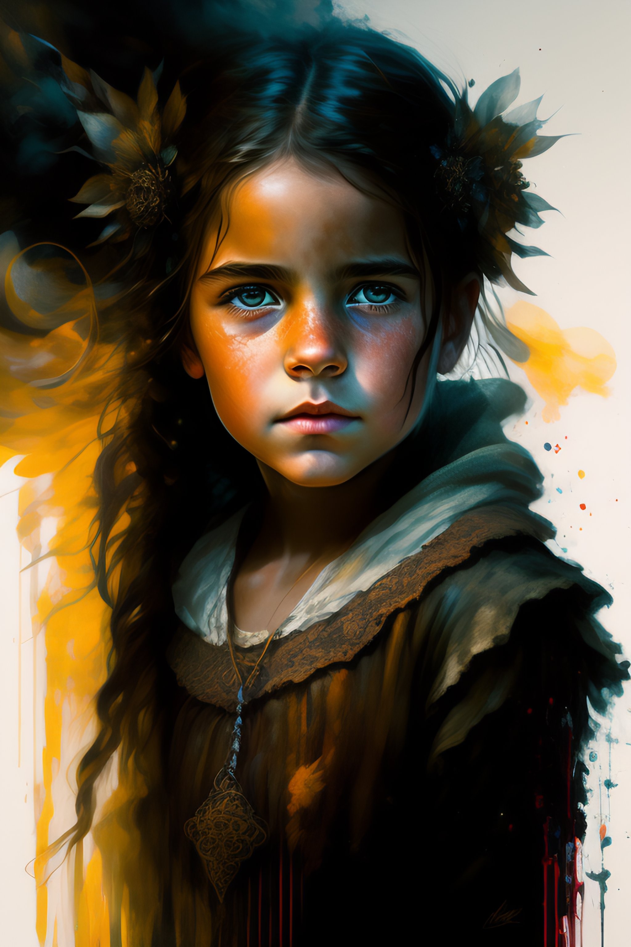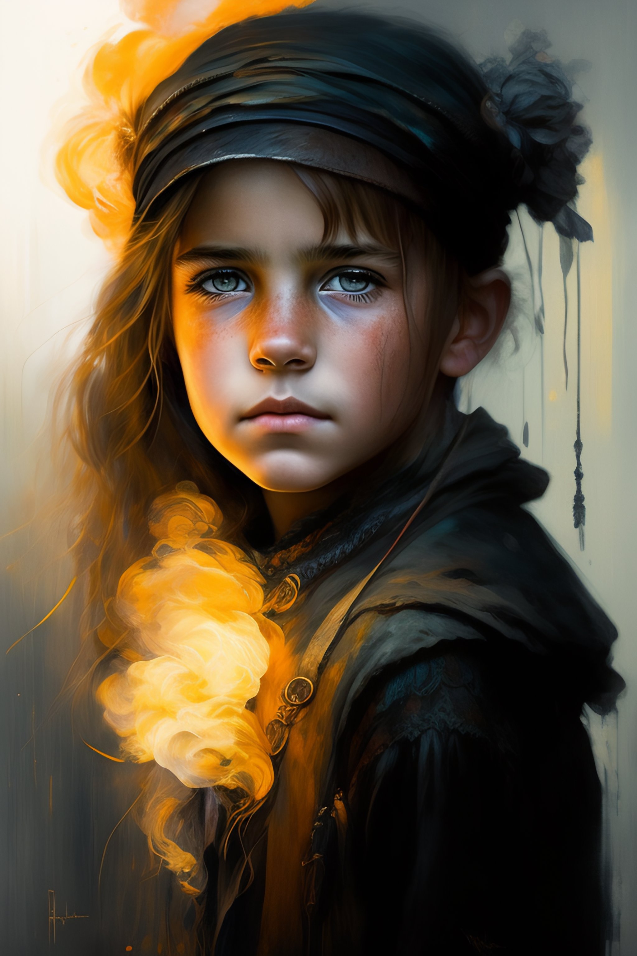 A portrait of poor 10y old medieval peasant child with glowing eyes and smoke around them, style albert lynch, carne griffiths, jeremy mann, alberto seveso, alice pasquini (cel shaded:2), 2d, (oil painting:2), dark colors, noire