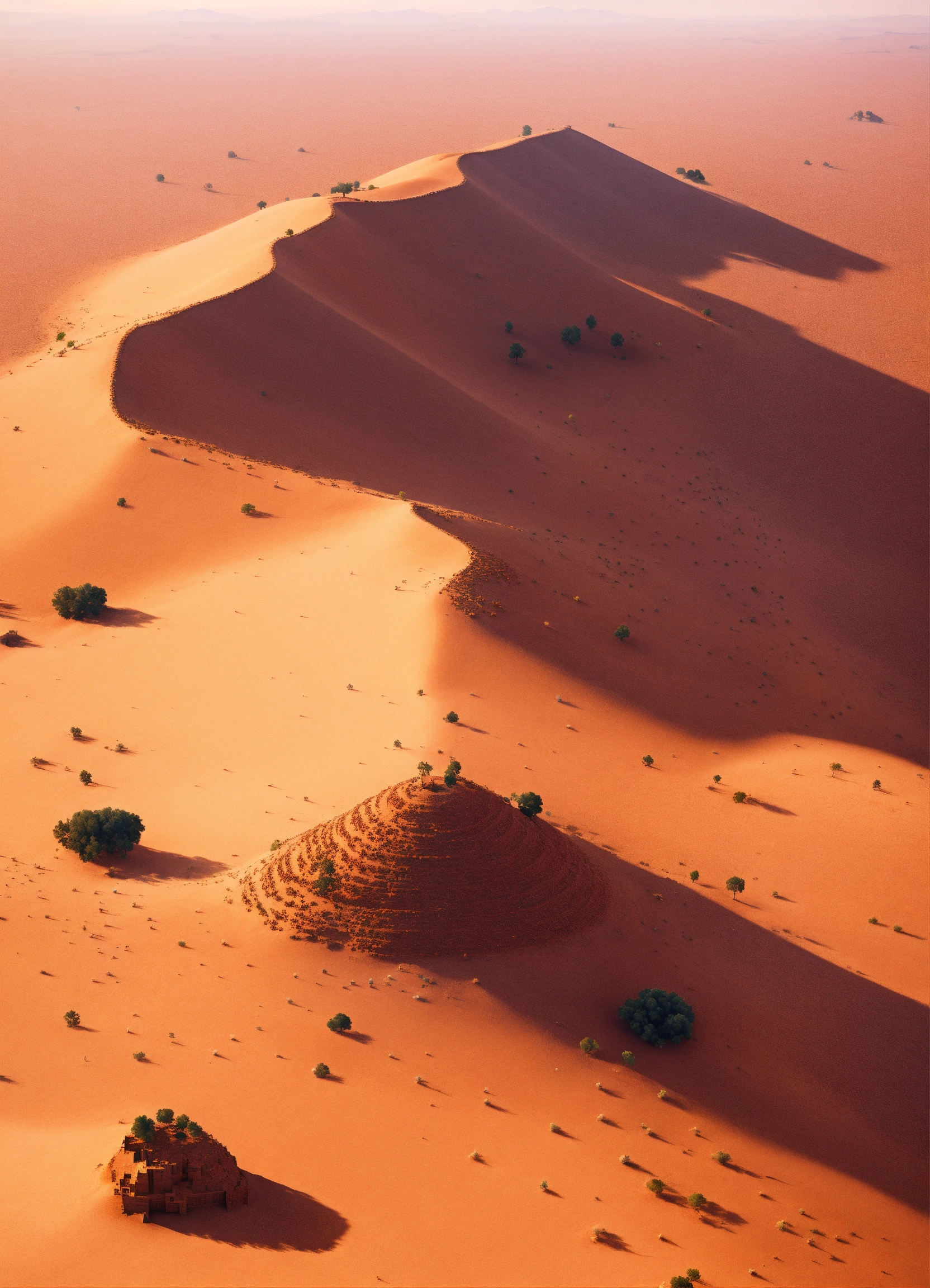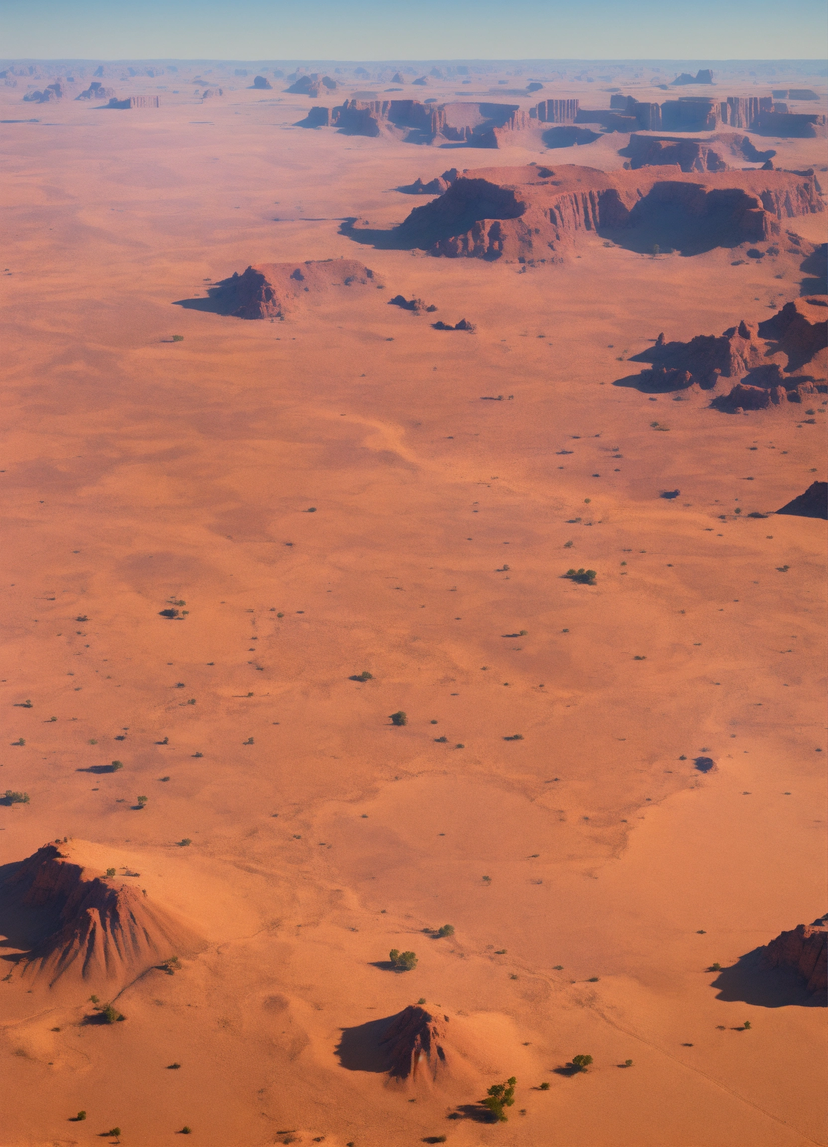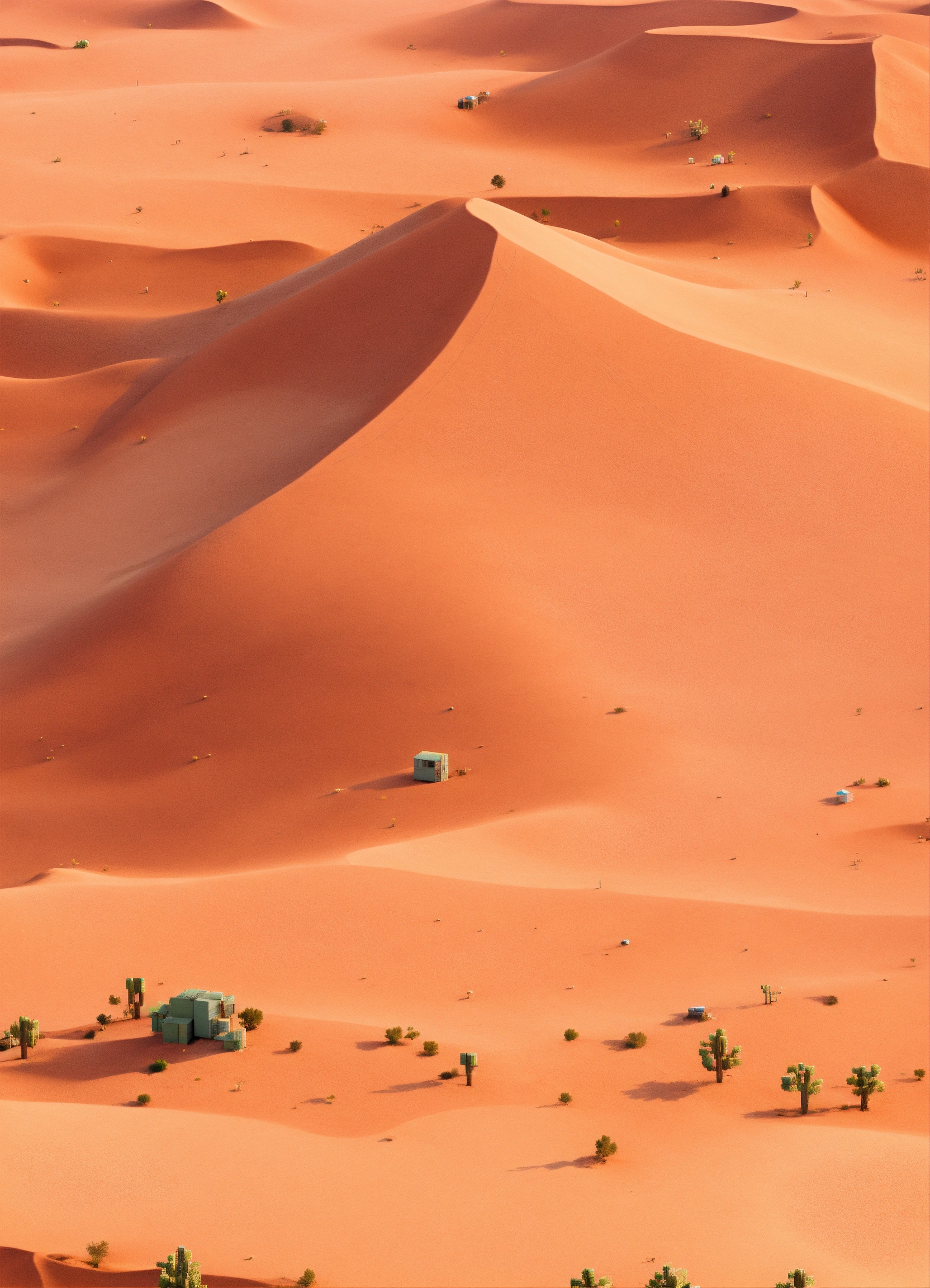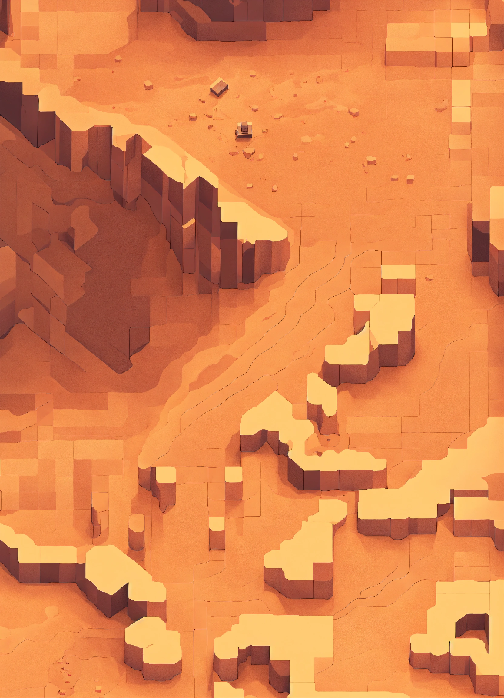 Simple blocky pixel image from overhead of a completely flat desert devoid of elevation