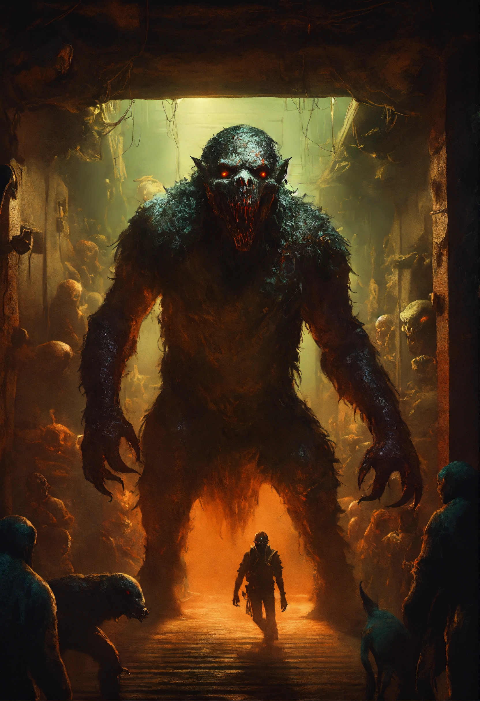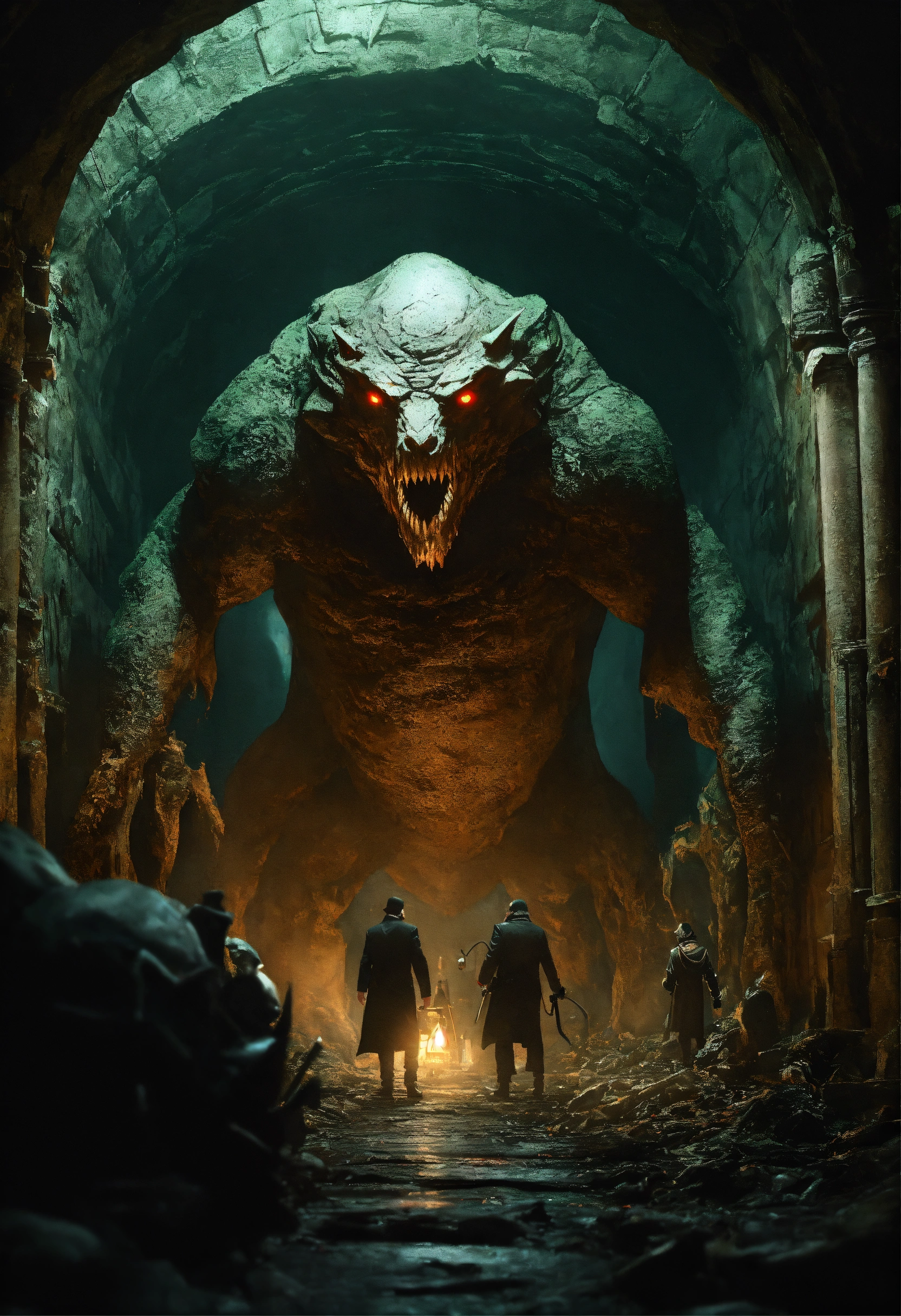 Create a vivid and captivating scene where a powerful ghoul, with a commanding presence, leads an army of man-sized mole-like creatures through the labyrinthine tunnels of an underground world. the ghoul should exude an aura of dark authority, with its otherworldly features and a sense of malevolent intelligence. the mole-like creatures should be both formidable and eerie, with their burrow-adapted bodies and a sense of loyalty to their ghoul leader. the setting should be realistic, as in a new york subway tunnel, with dim overhead lighting