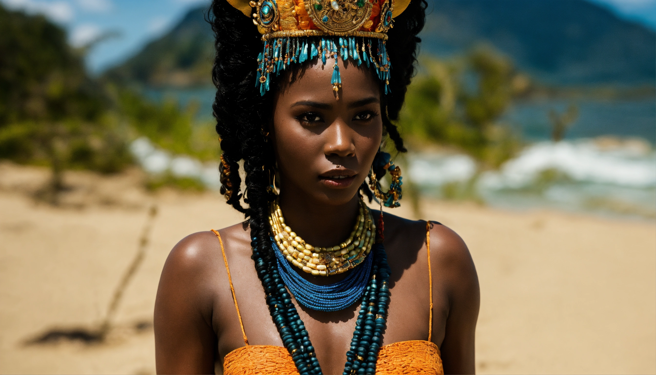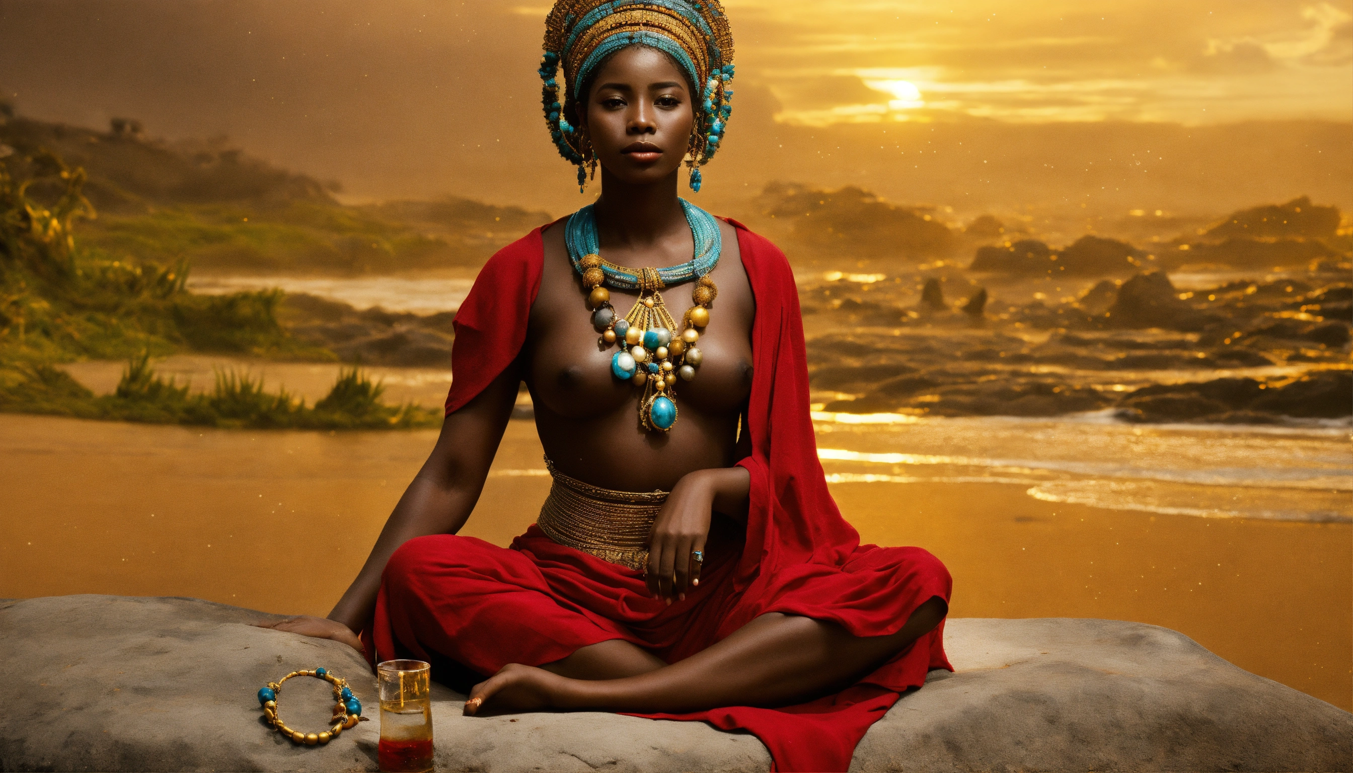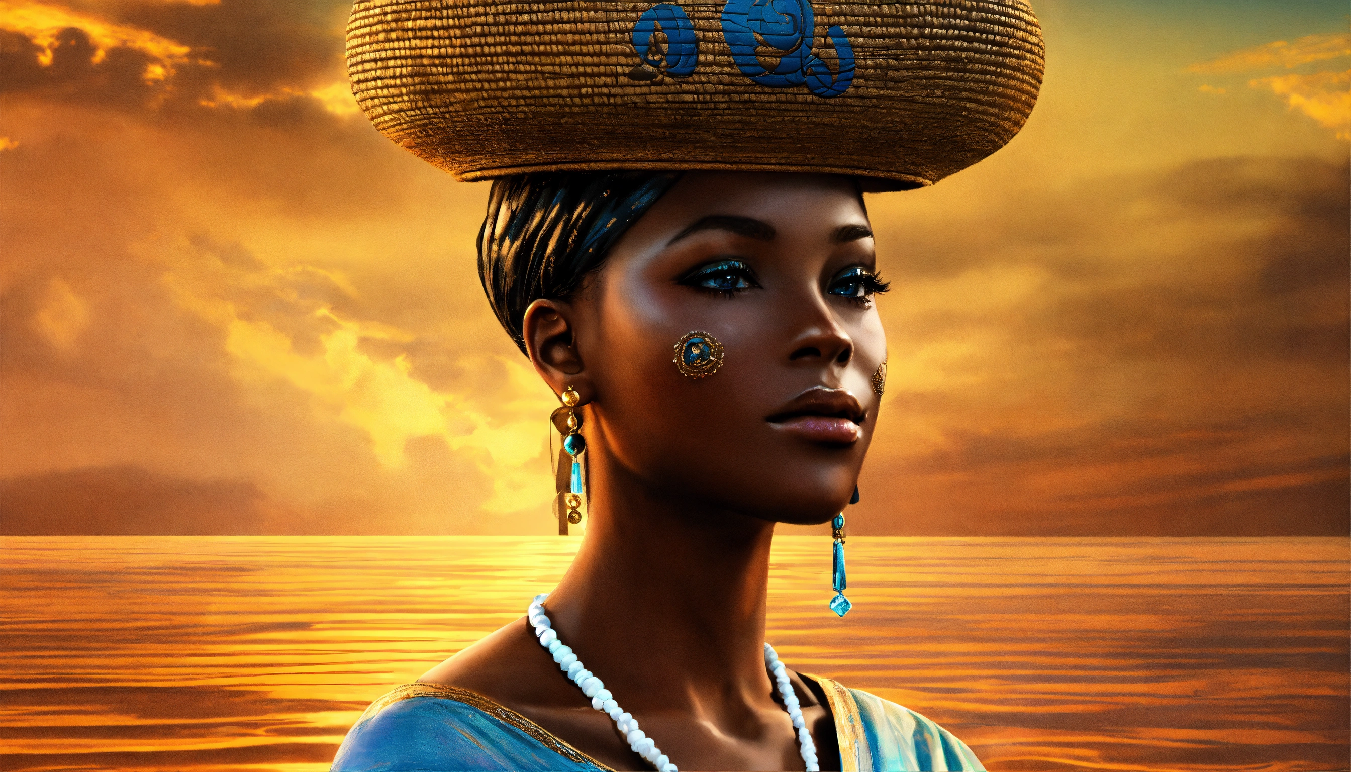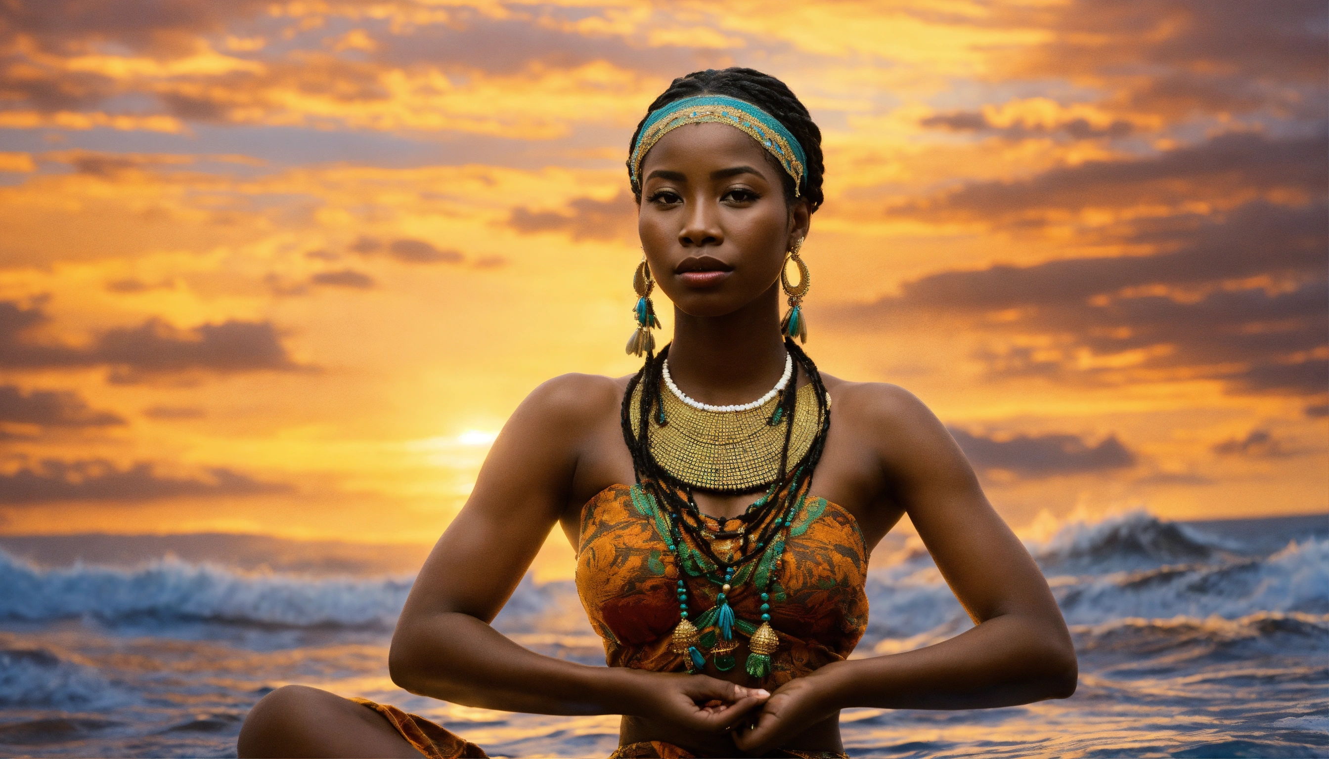 A deusa da água yoruba orixá, yemaya, em forma de mulher negra. ênfase na divindade, e no oceano., no estilo entergalático