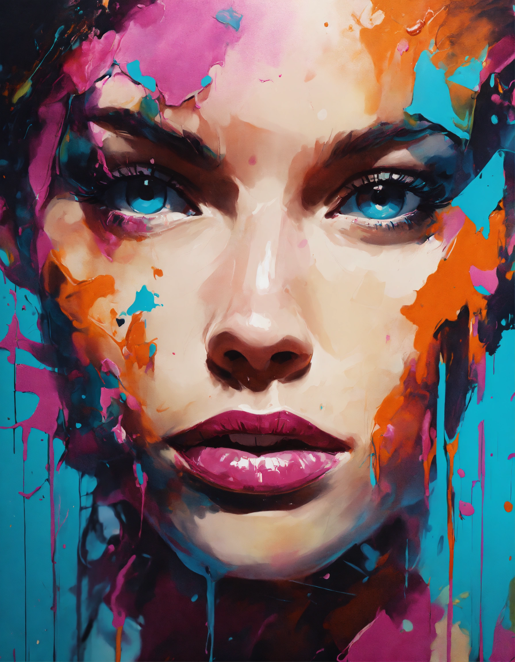 Abstract graffiti tag brush comic art. comic book cover art. photorealistic ink art. techno sci fi. maximalist surrealismbeautiful 3d patterns designs art. alberto seveso art, dancing sillhouette, water ink, ink water, ink cloud, alberto seveso art, loose painting style, intricate detail, cinematic lighting, octane render, 8k render, volumetric lighting, acrylic painting face portrait of a female model, by françoise nielly