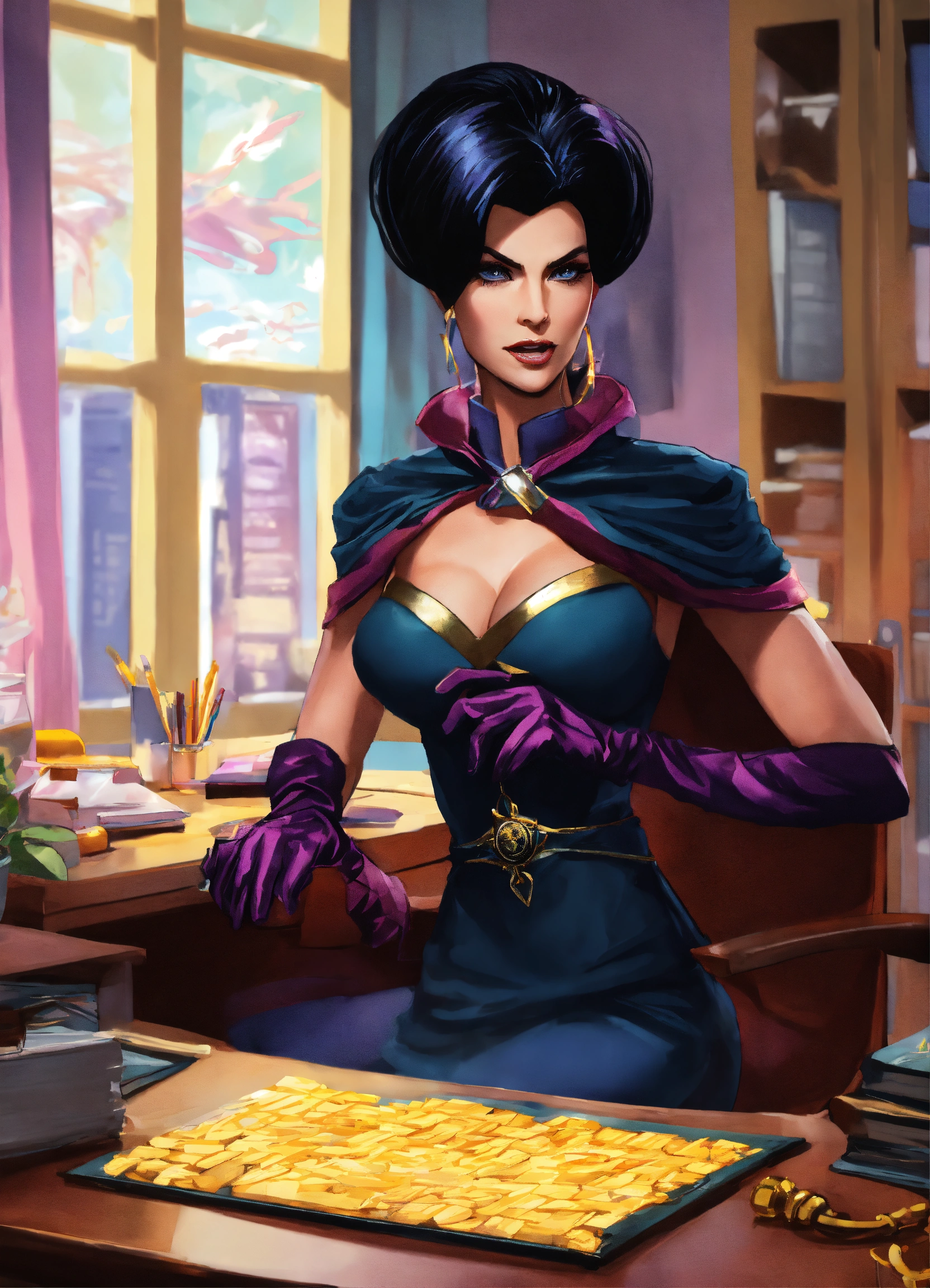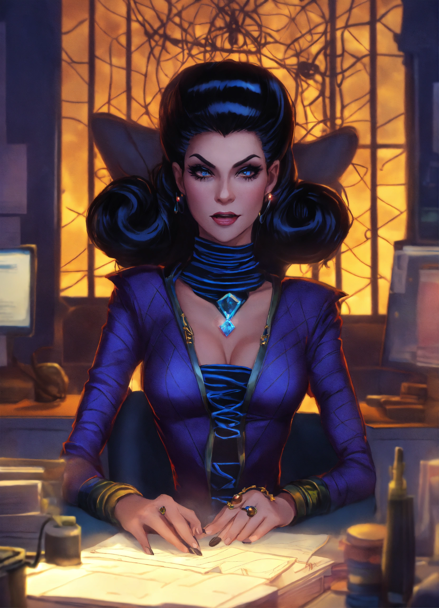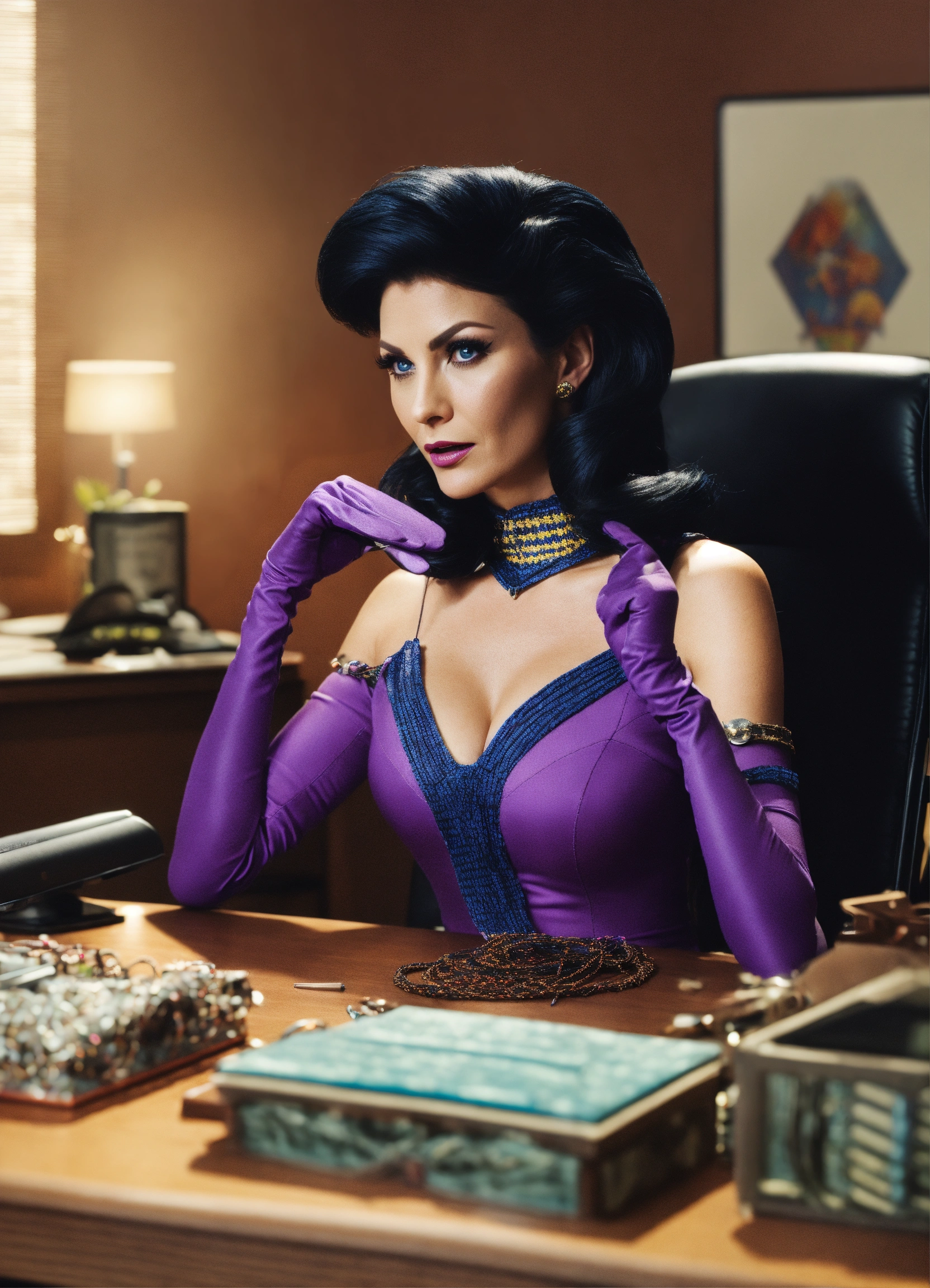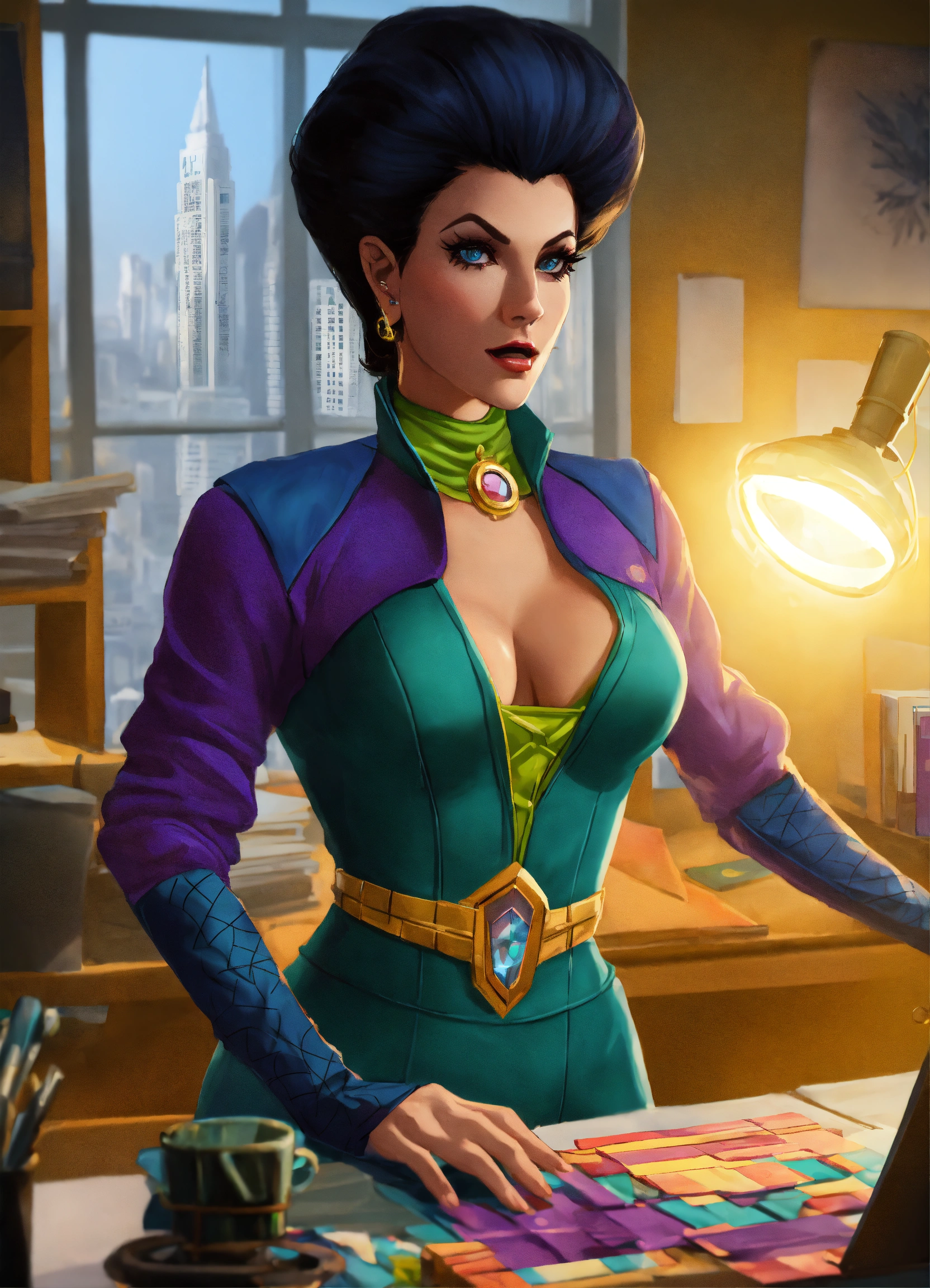 Evil-lyn in the ccrporate office hypnotizing me at my desk, weaving a mind control spell with her gloved hands