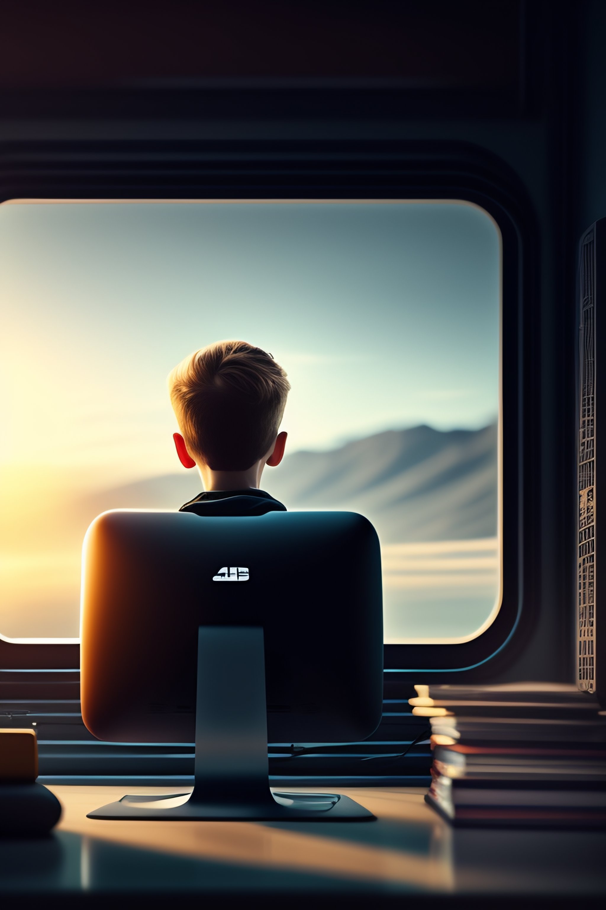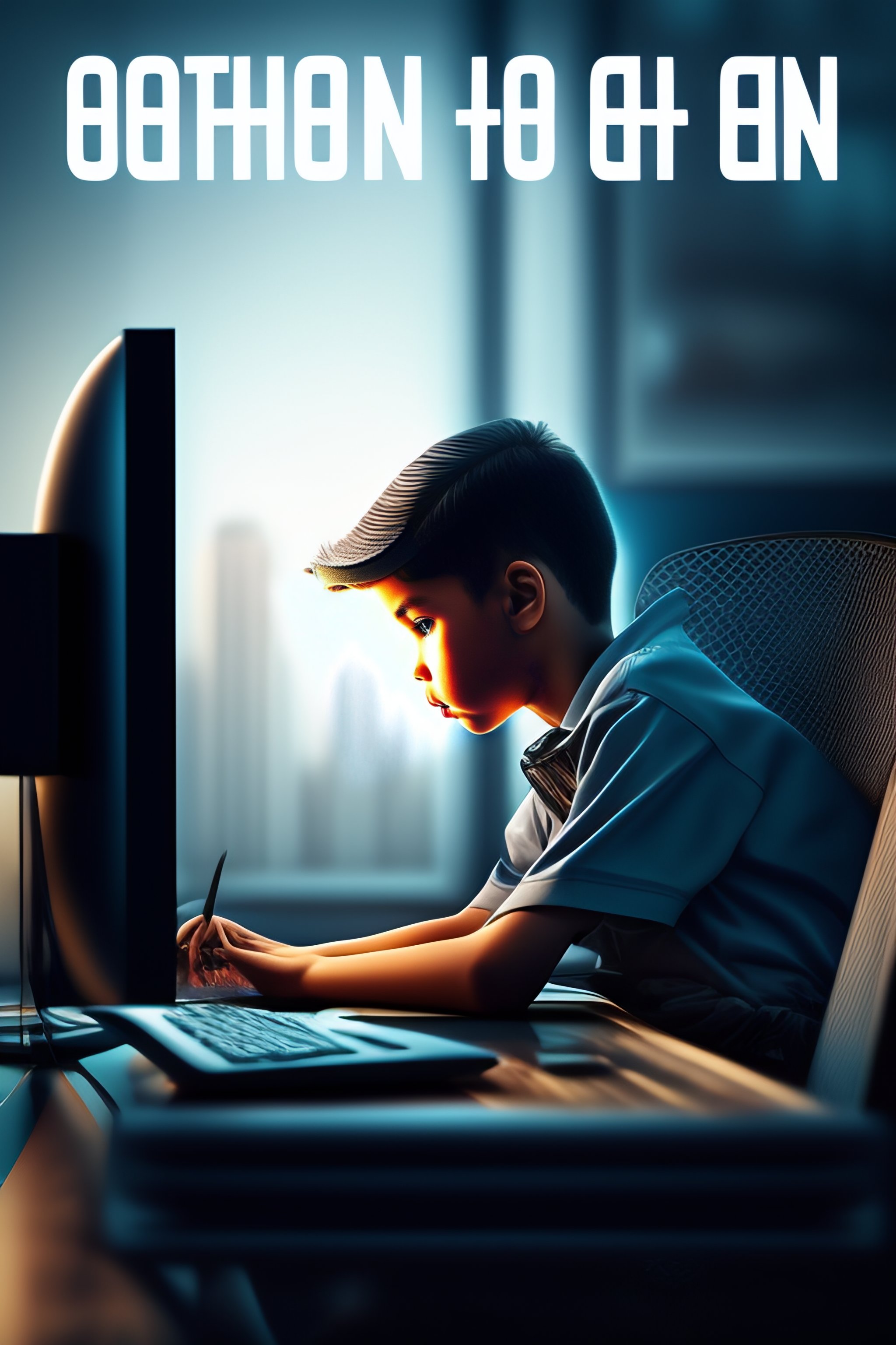 Alone boy in fornt of computer