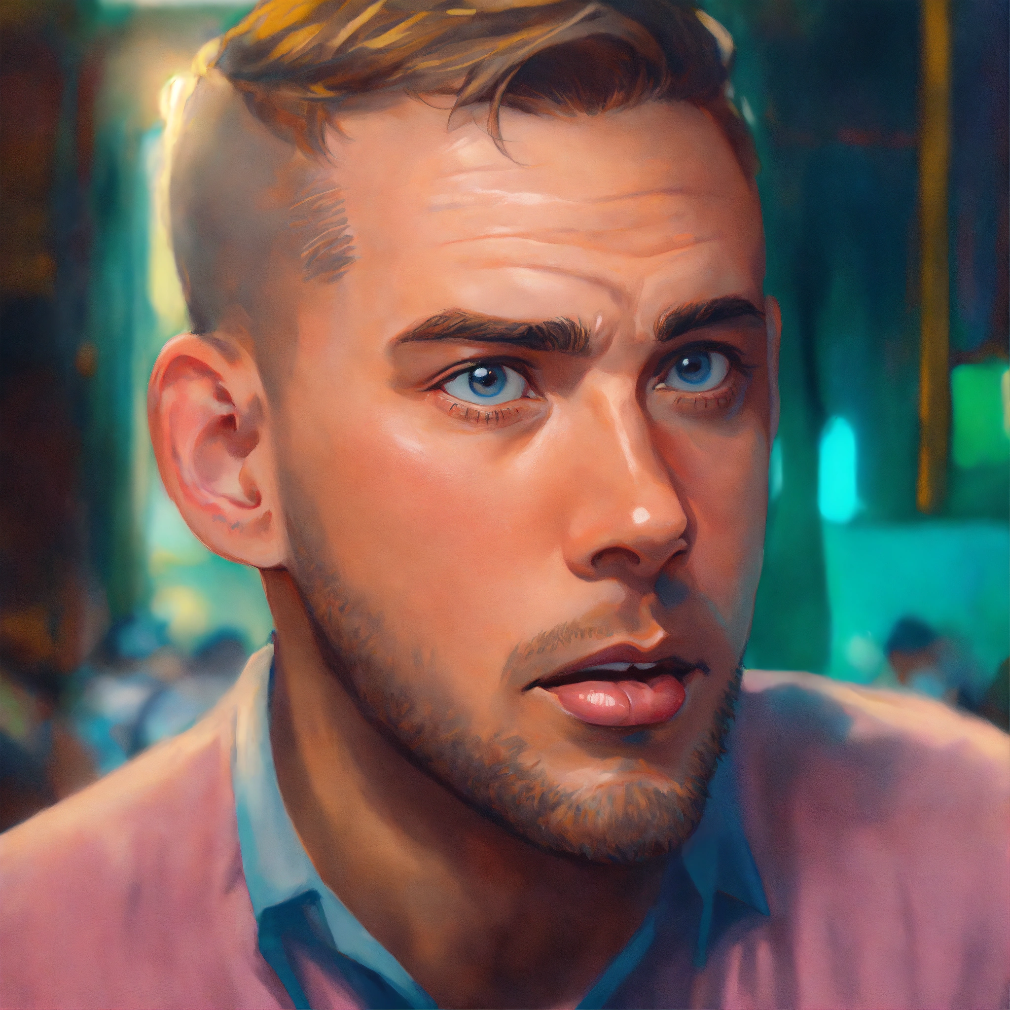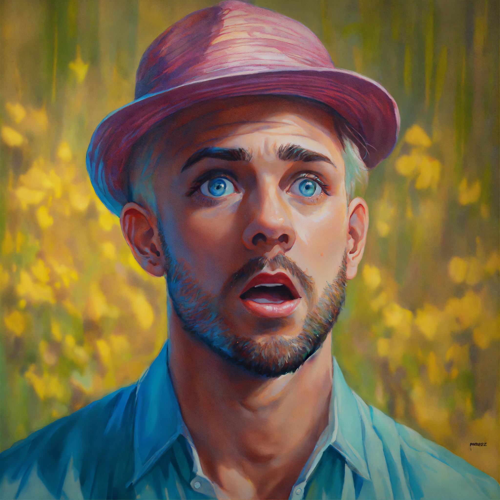 A man with a surprised look on his face, a pastel by menez, behance, art informel, behance hd, marvel comics, adafruit