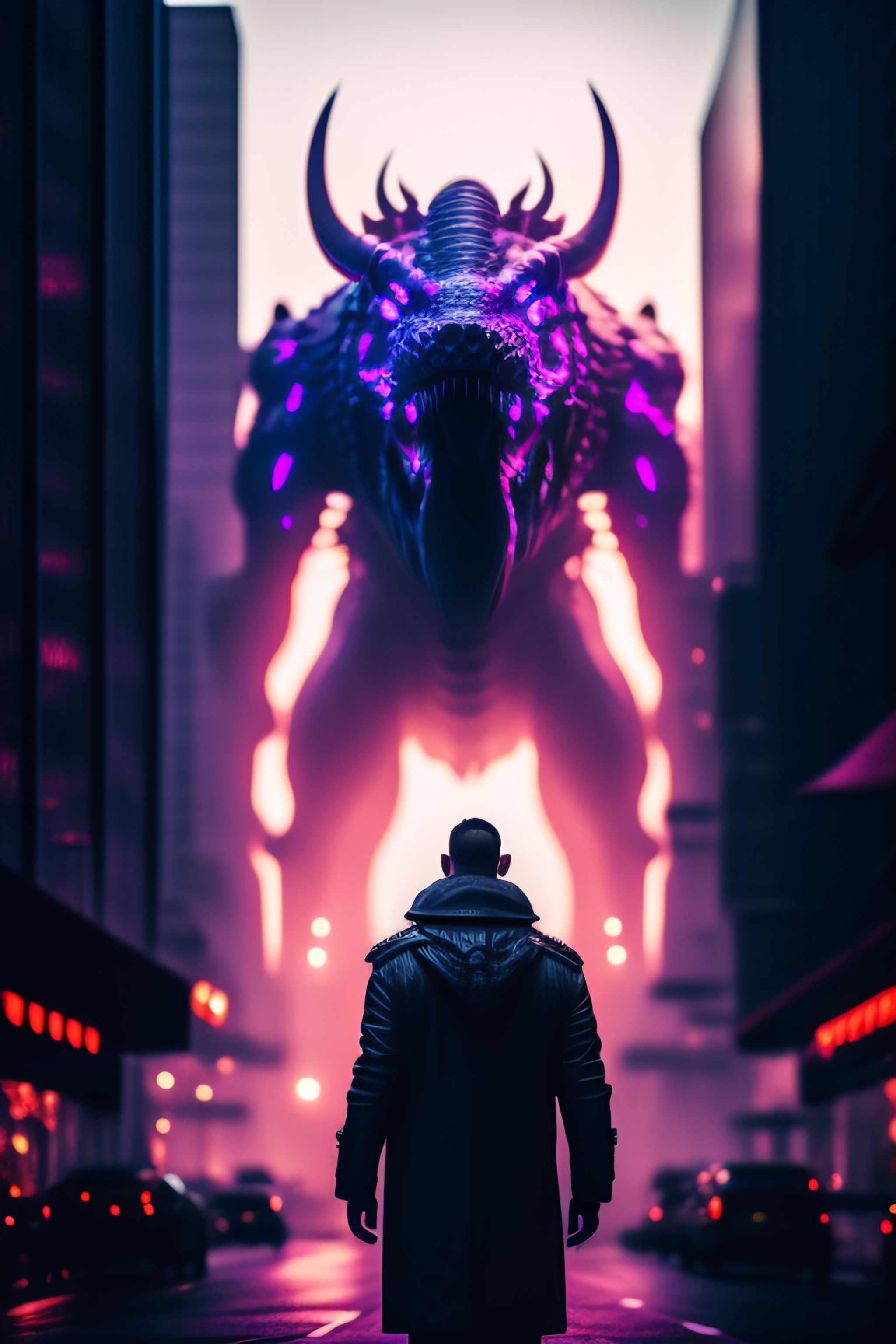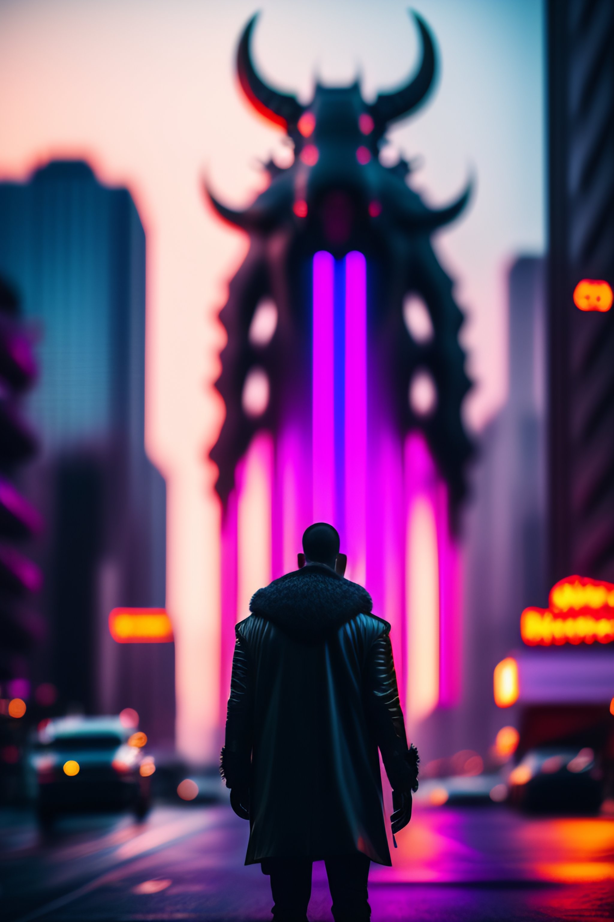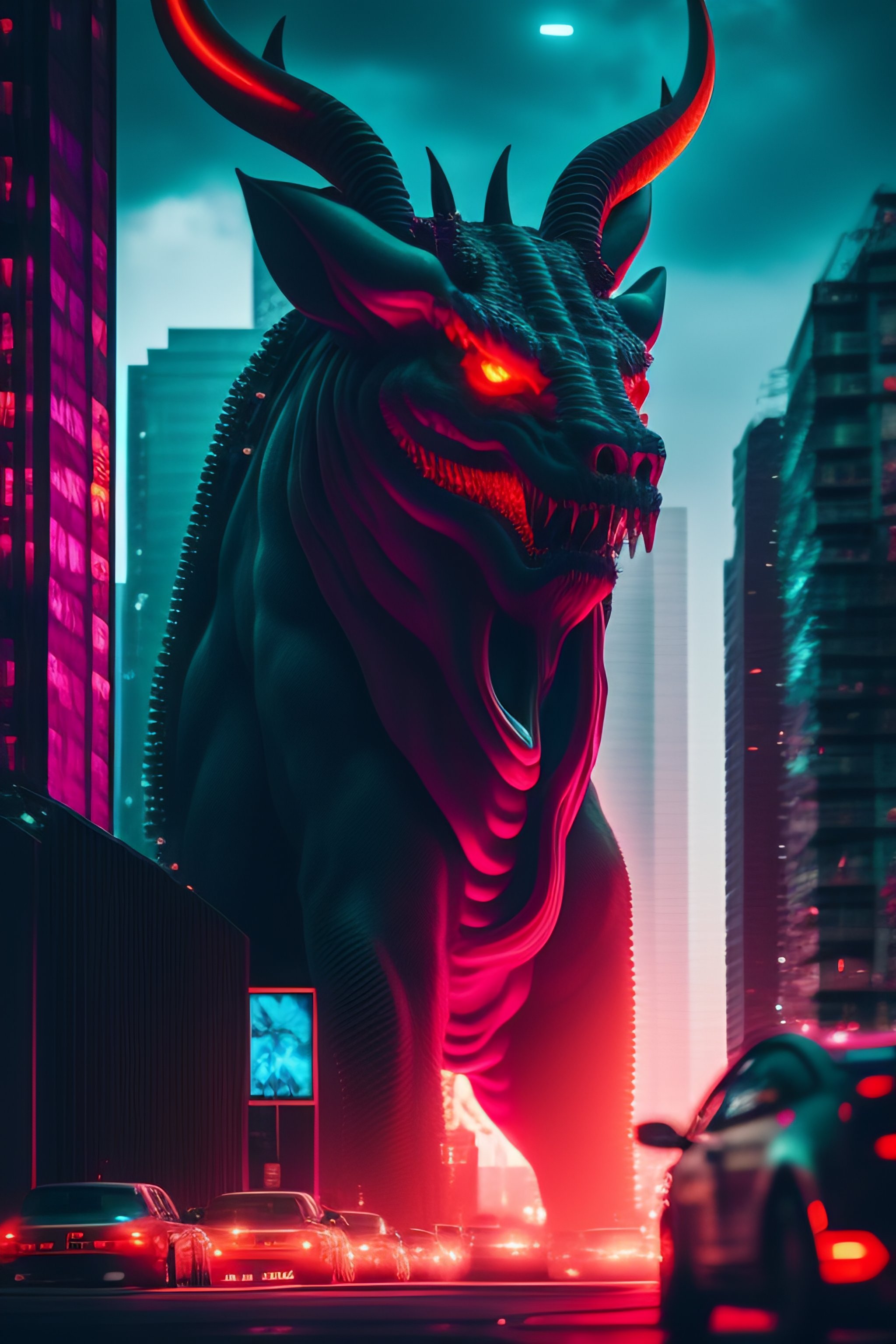 Giant lovecraftian demon on cyberpunk city, color grading, 5d, super-resolution, oled, cinematic lighting, realistic detailed, nikon 70-200mm f/2.8g