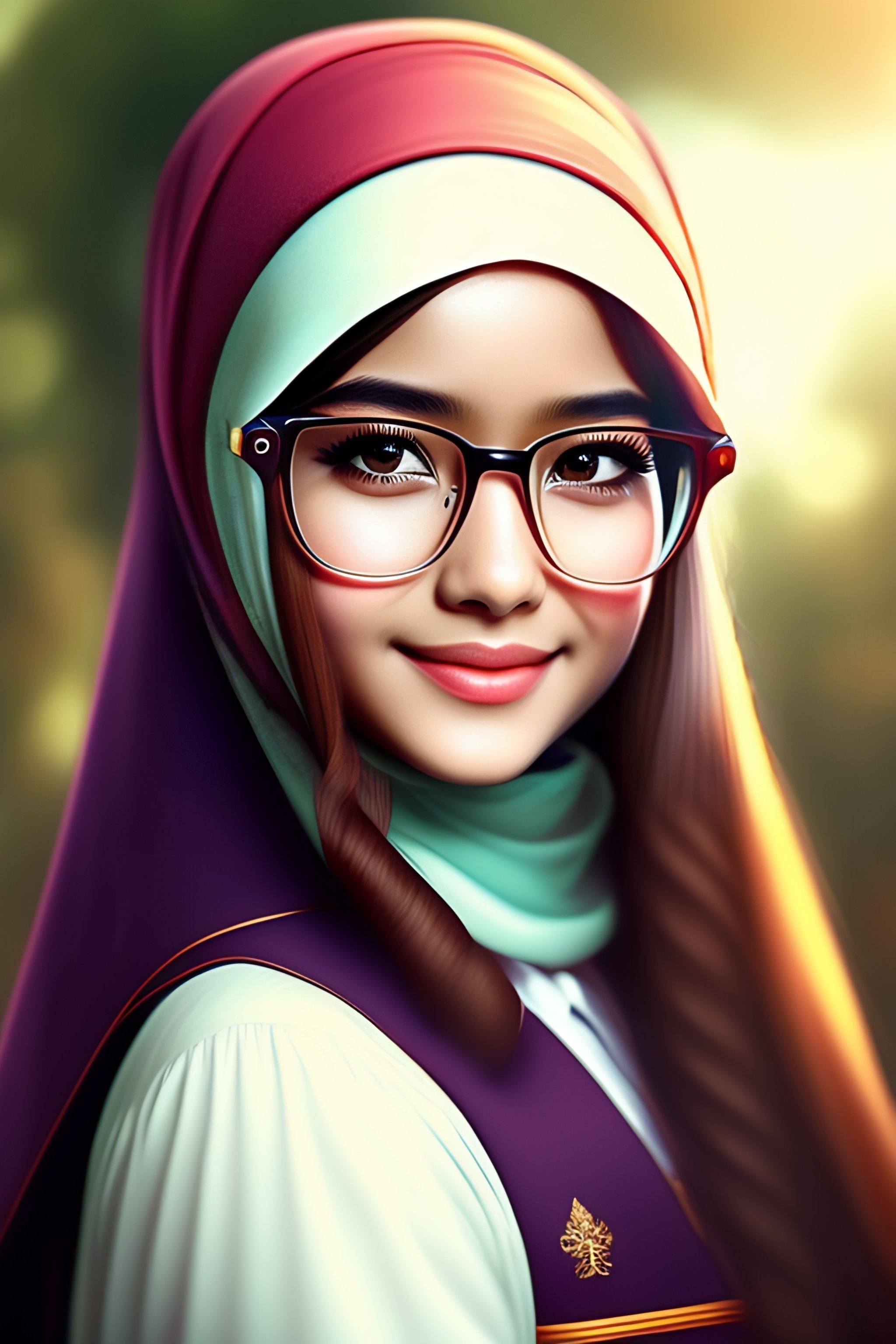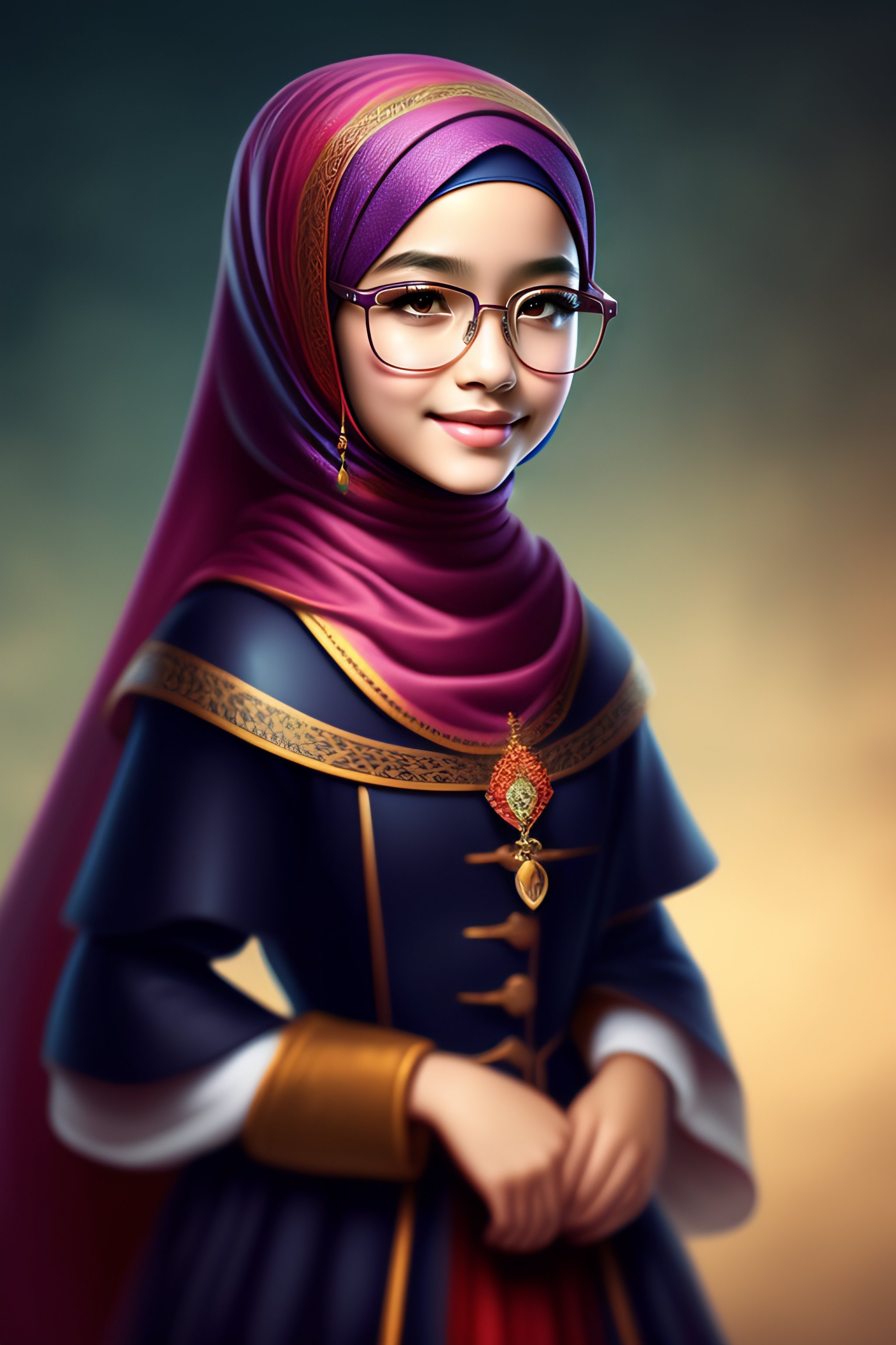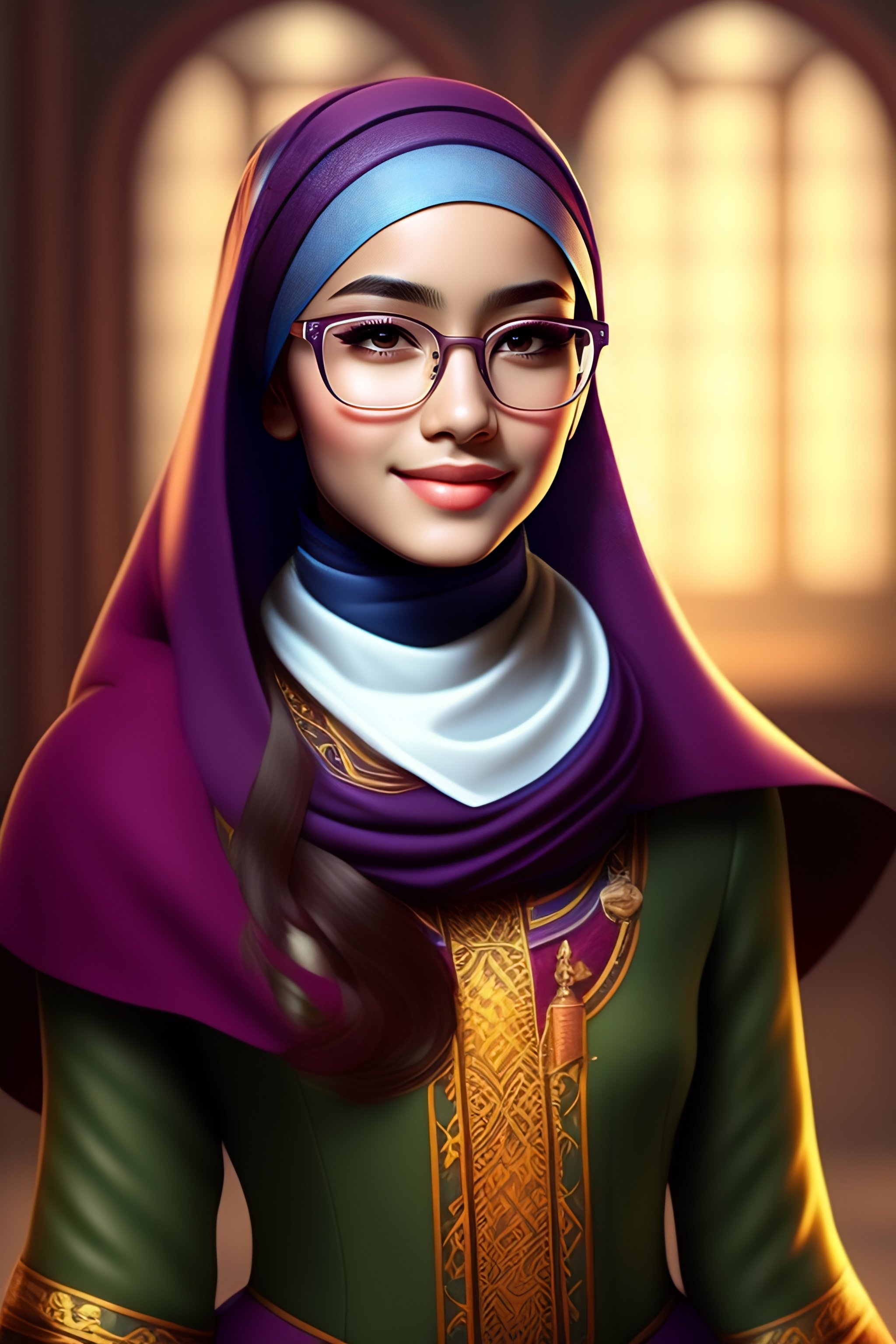 Cute hijab girl wearing eyeglasses in fantasy medieval school uniform