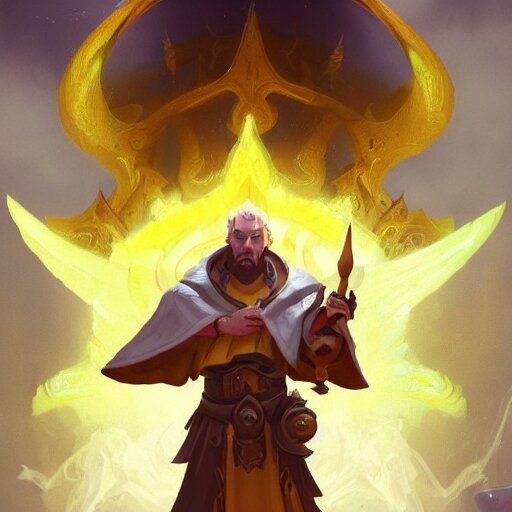 A holy priest, yellow theme, bright art masterpiece artstation. 8 k, sharp high quality artwork in style of jose daniel cabrera pena and greg rutkowski, concept art by tooth wu, blizzard warcraft artwork, hearthstone card game artwork, holy priest mage