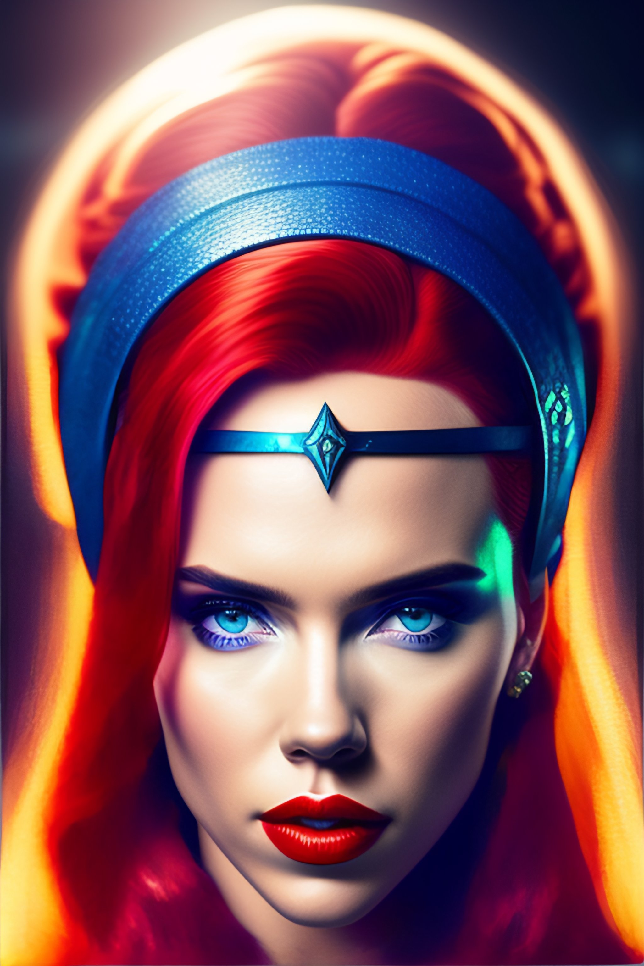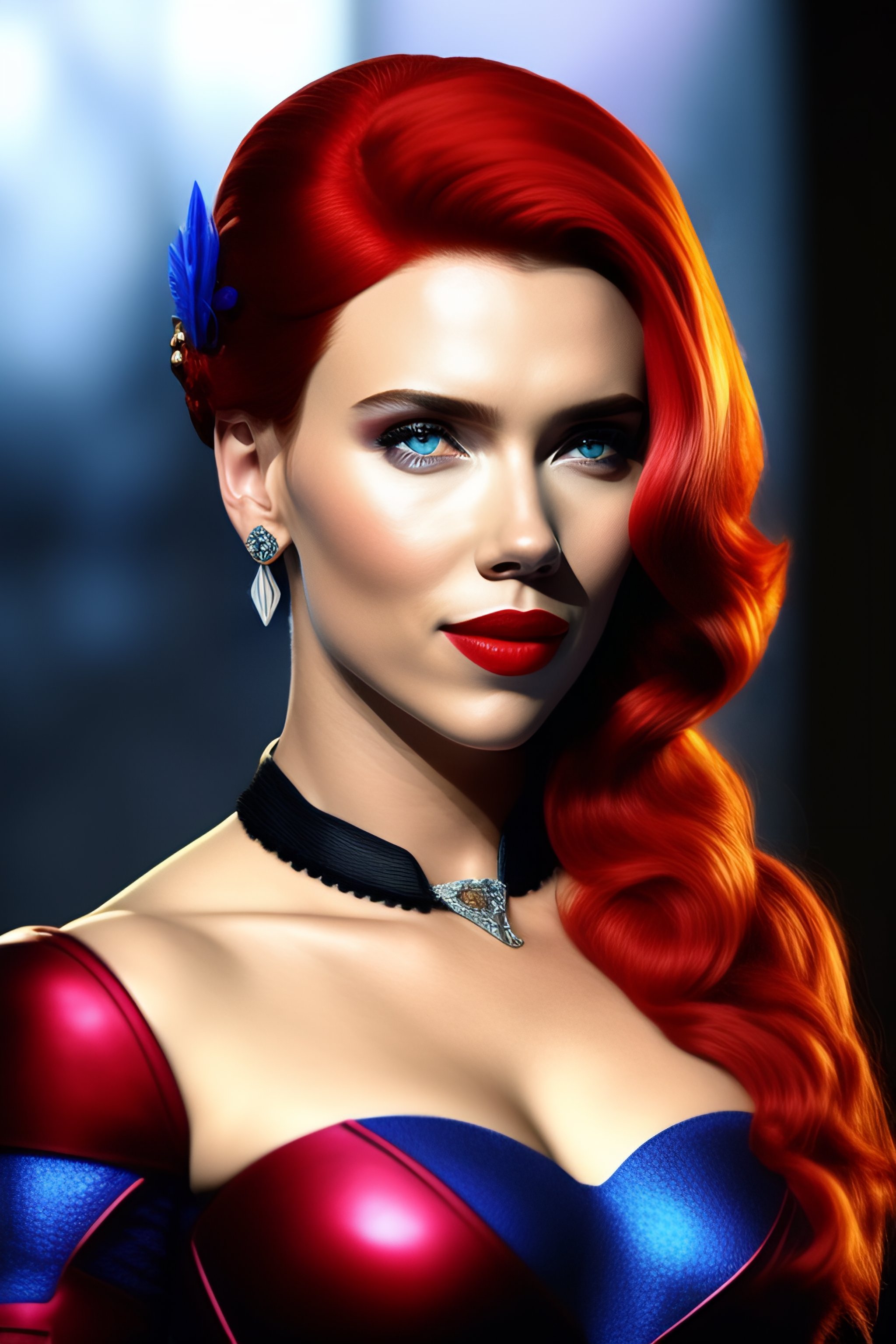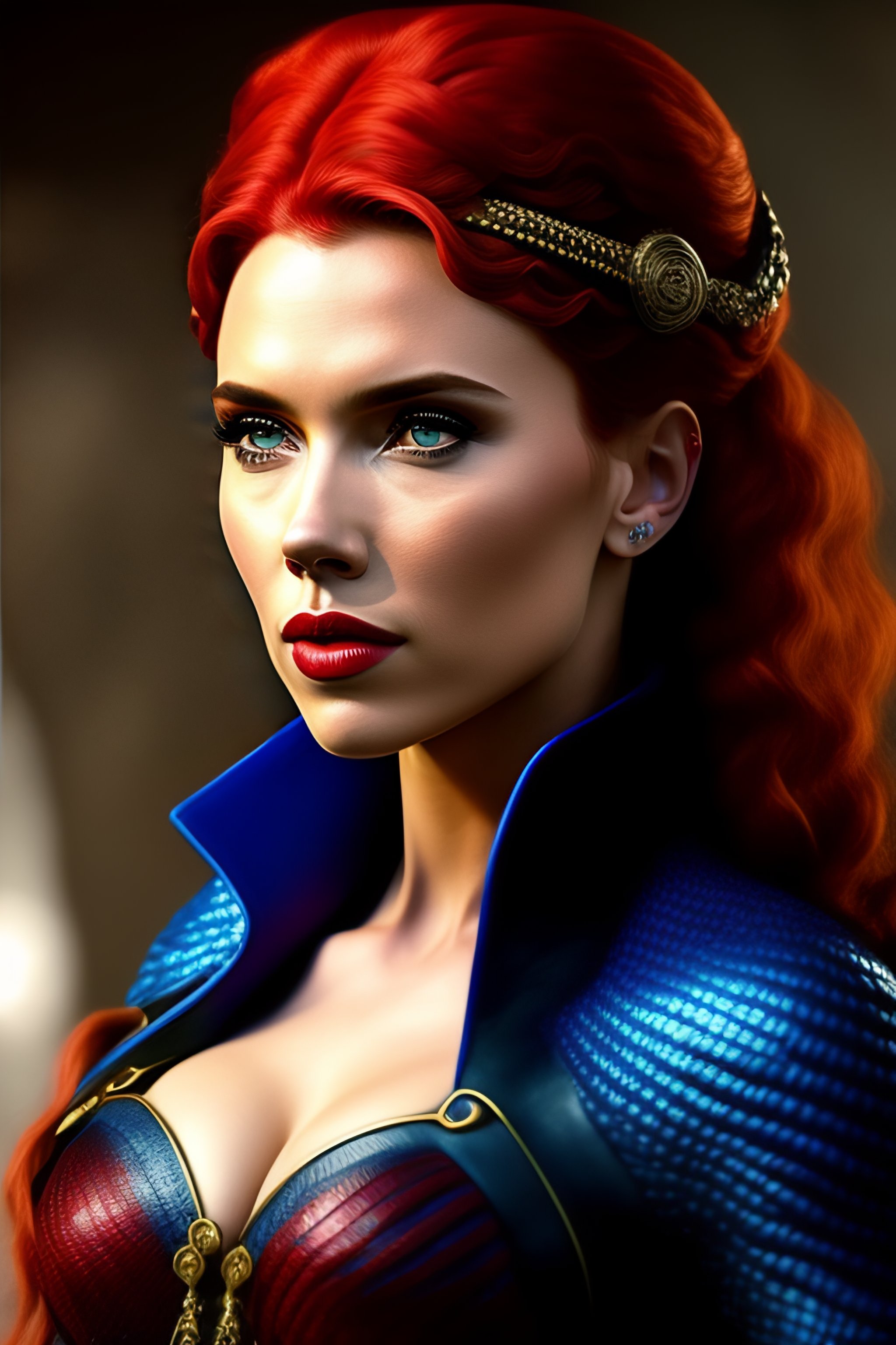 Scarlett johansson as mystique blue scaly skin red hair skull circlet