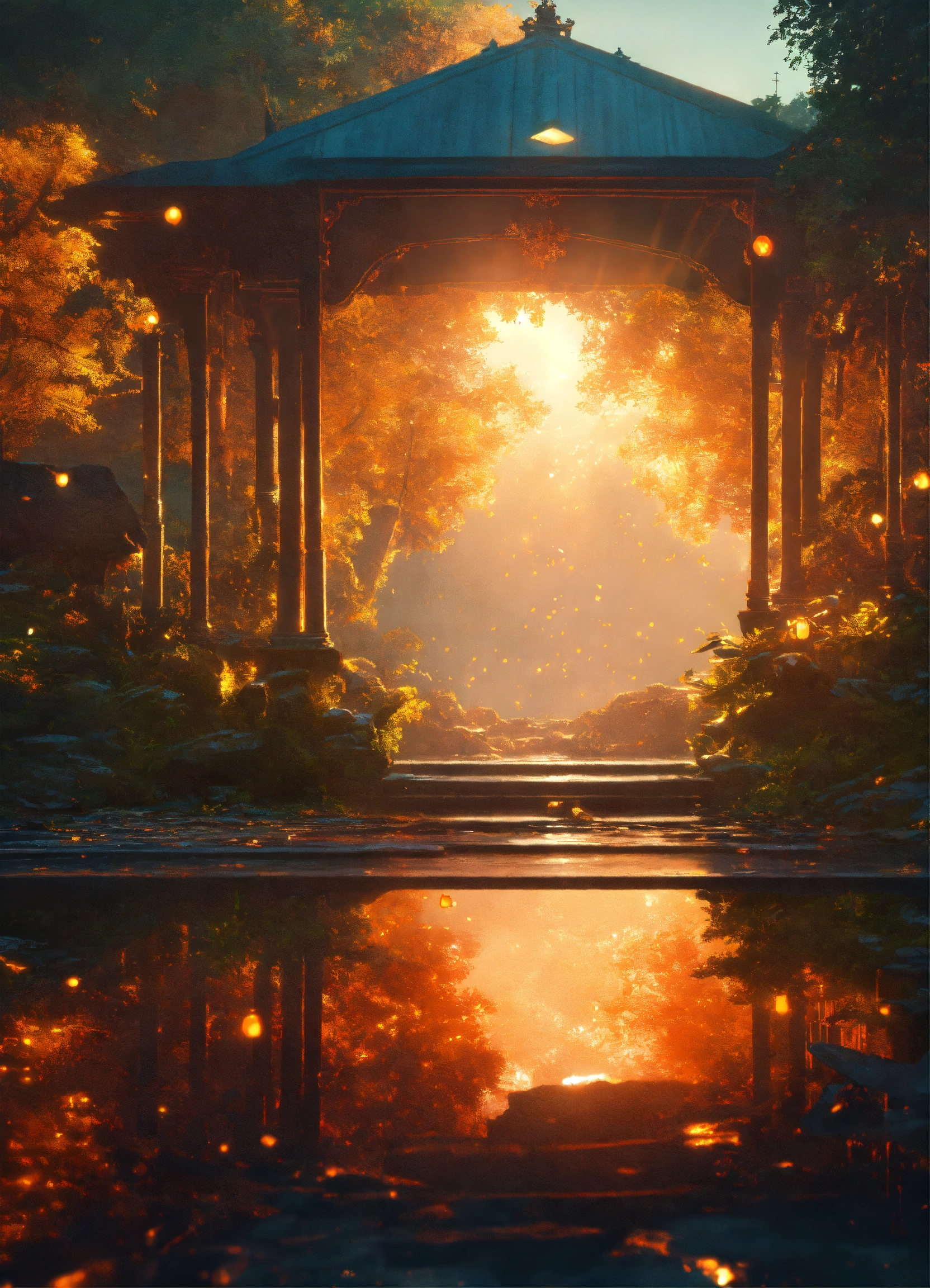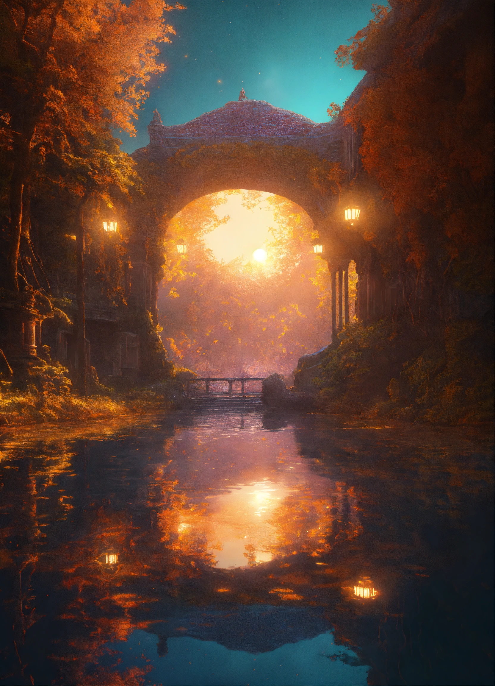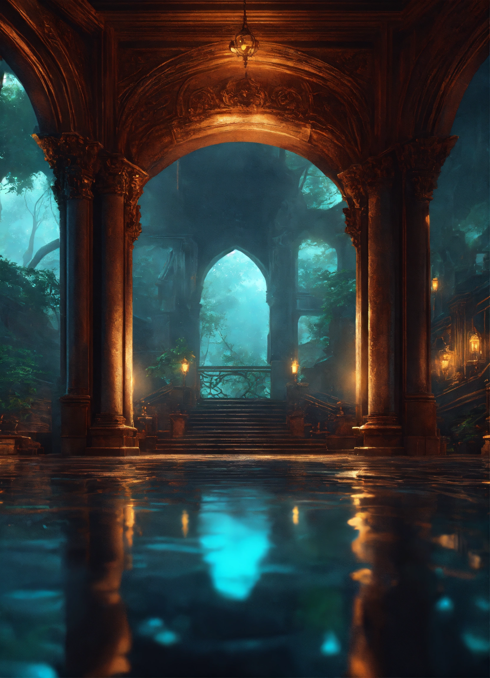 Beautiful, mysterious, magical, edgy environment, the background shows a reflection in balance of itself. highly detailed, high quality, hyper realistic, 8k.
