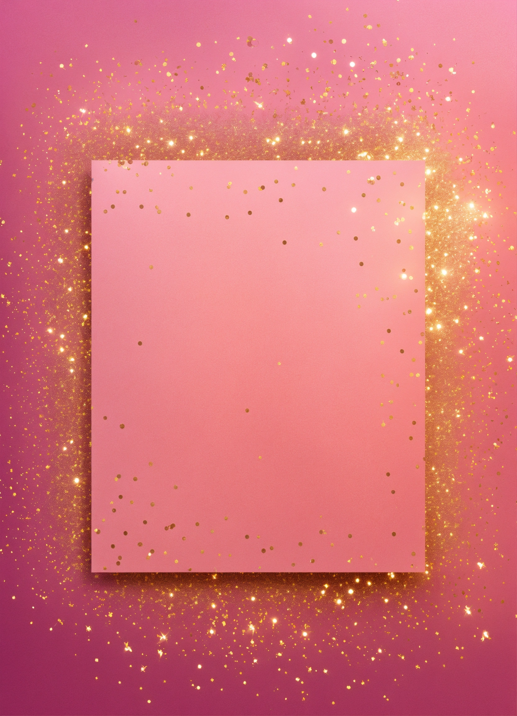 Create a cute fun birthday blank banner to add information to a birthday card template pastel pink gradiant background wallpaper with glitter and glitter shining gold decoration. vibrantly shining colors, amazing lights