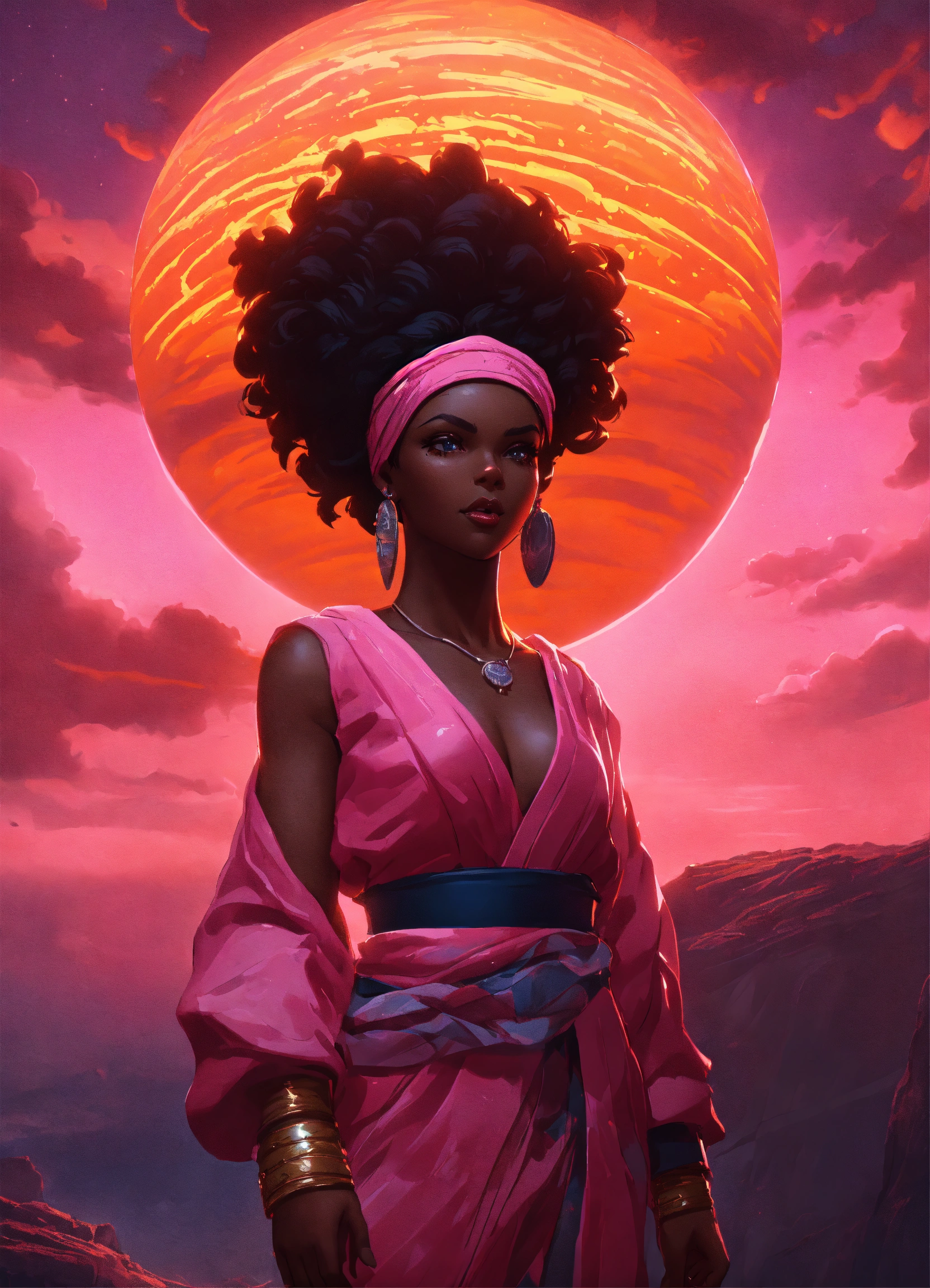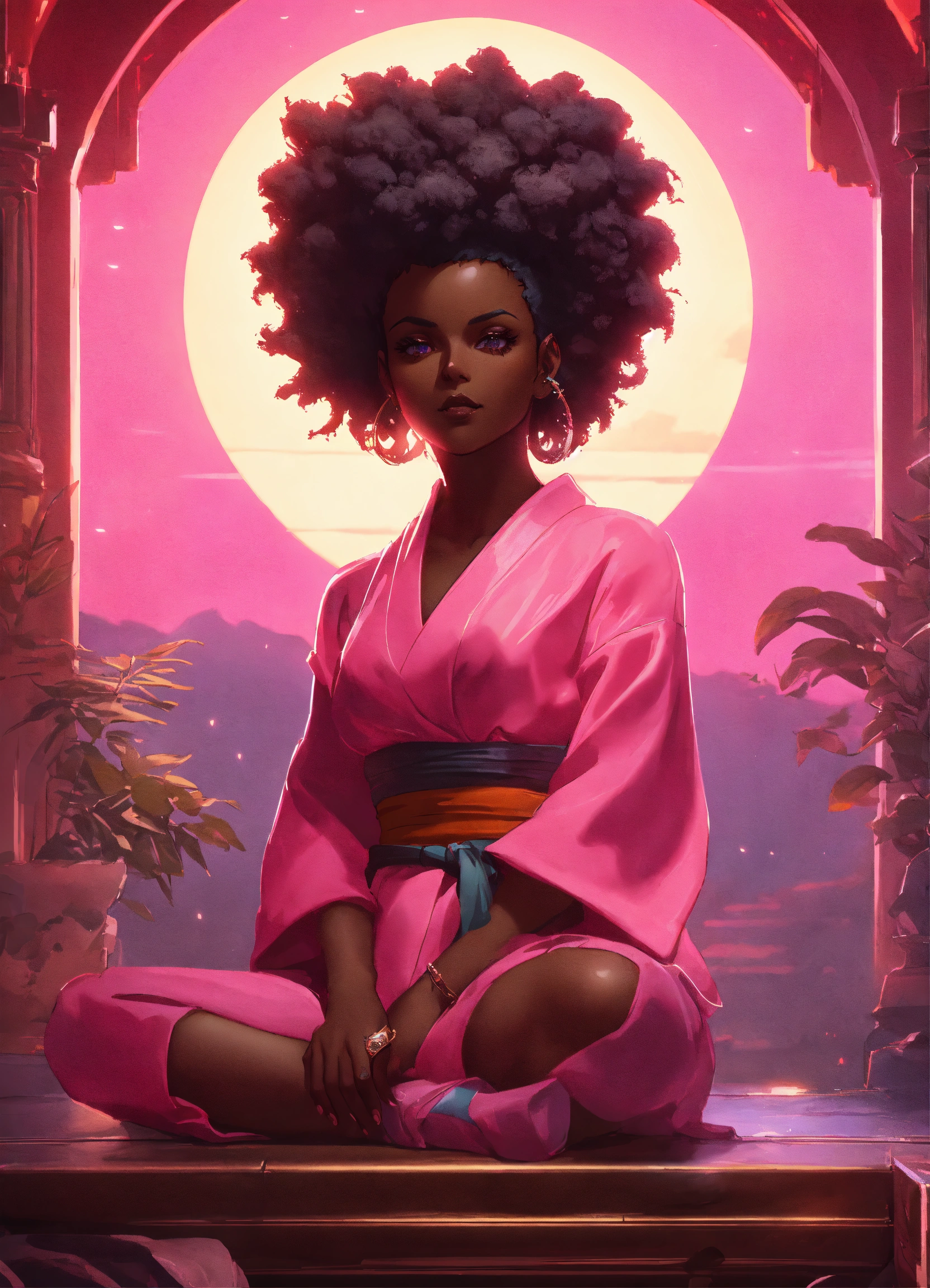 Highly detailed funko pop of dark skinned black mother of goku in pink, unreal engine, fantasy art by greg rutkowski, loish, rhads, makoto shinkai and lois van baarle, ilya kuvshinov, rossdraws global illumination, radiant light, detailed and intricate environment