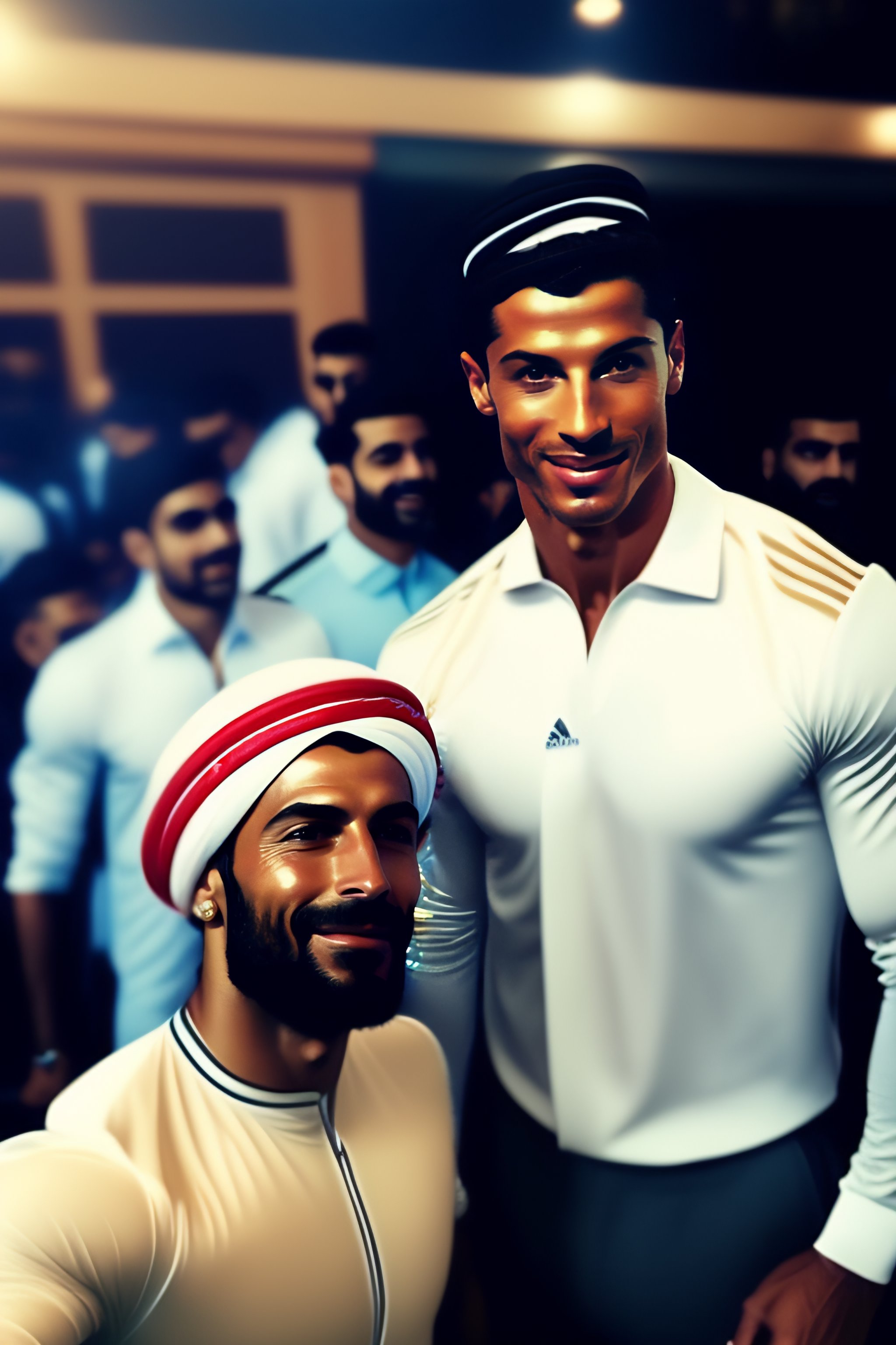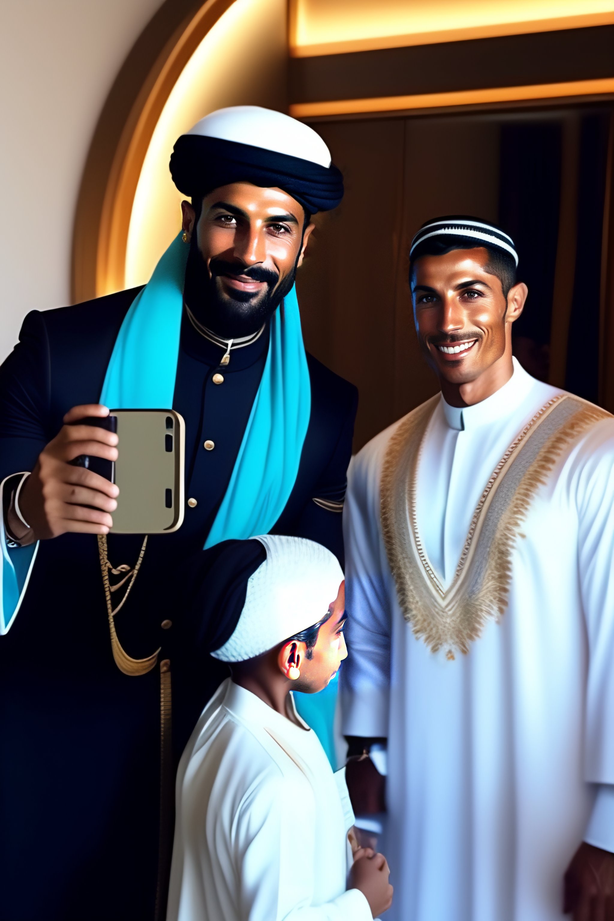 Sheikh zayed taking a selfie with cristiano ronaldo